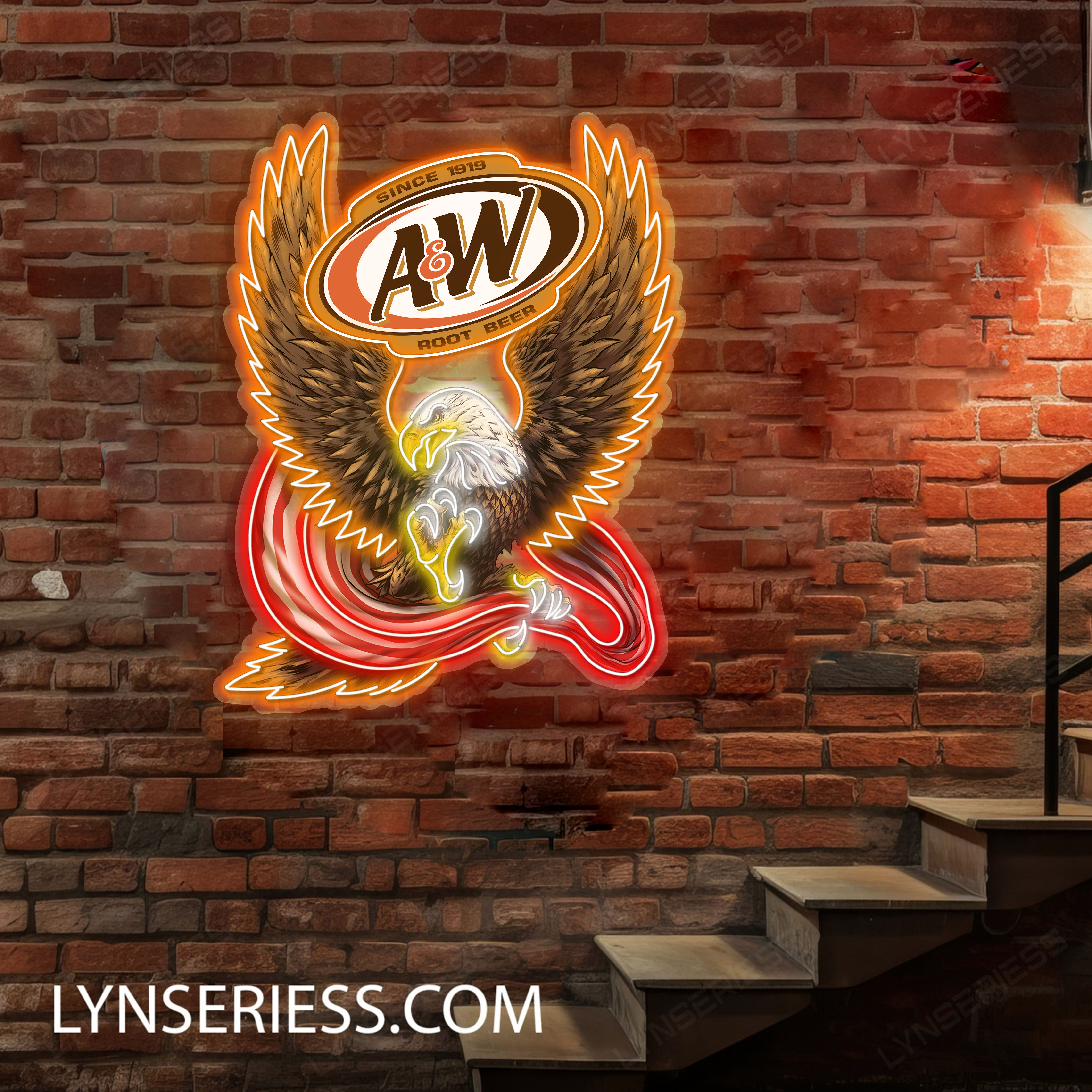 A & W Root Logo Custom American Eagle LED Sign Acrylic Artwork Home Bar Pub Wall Hanging Decor
