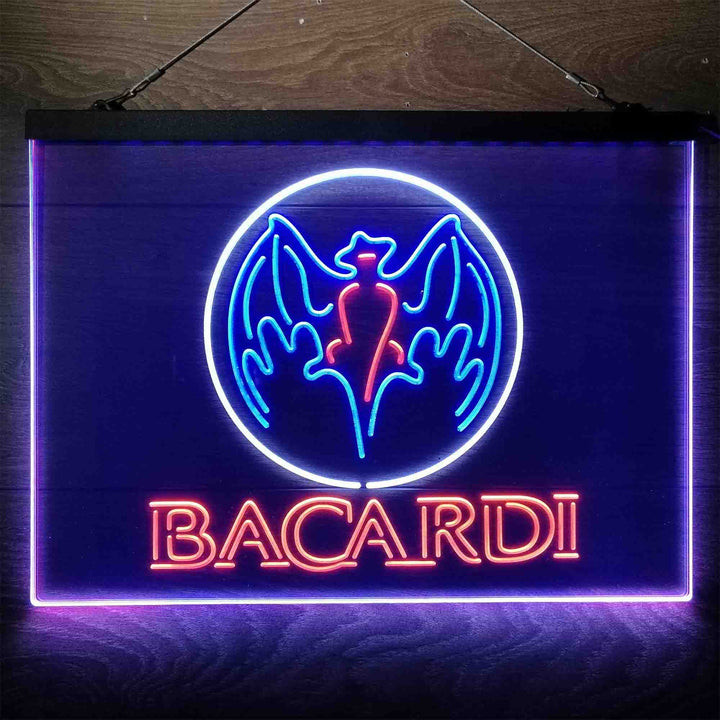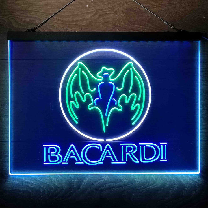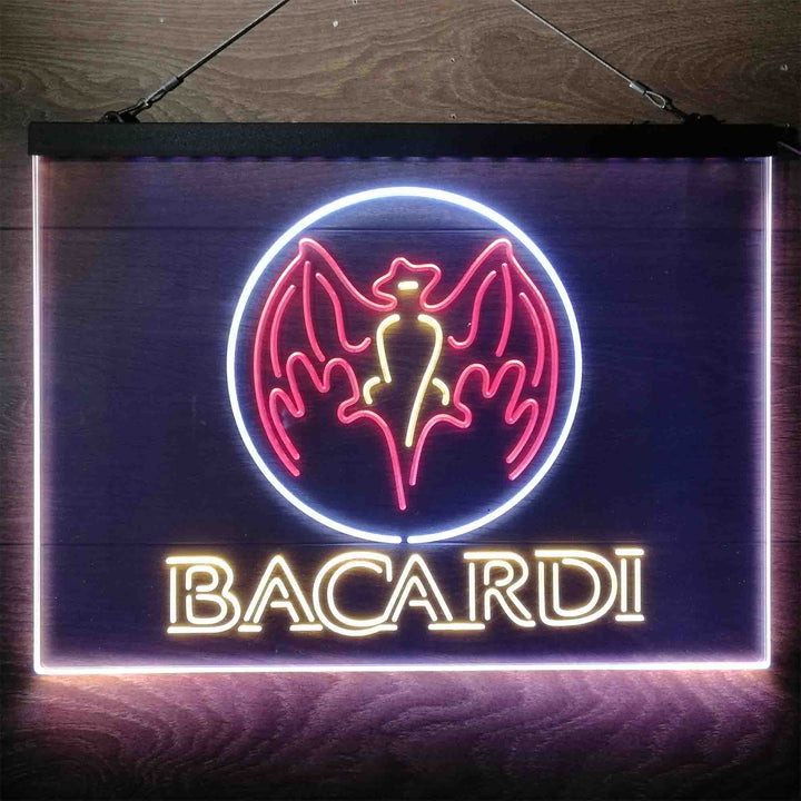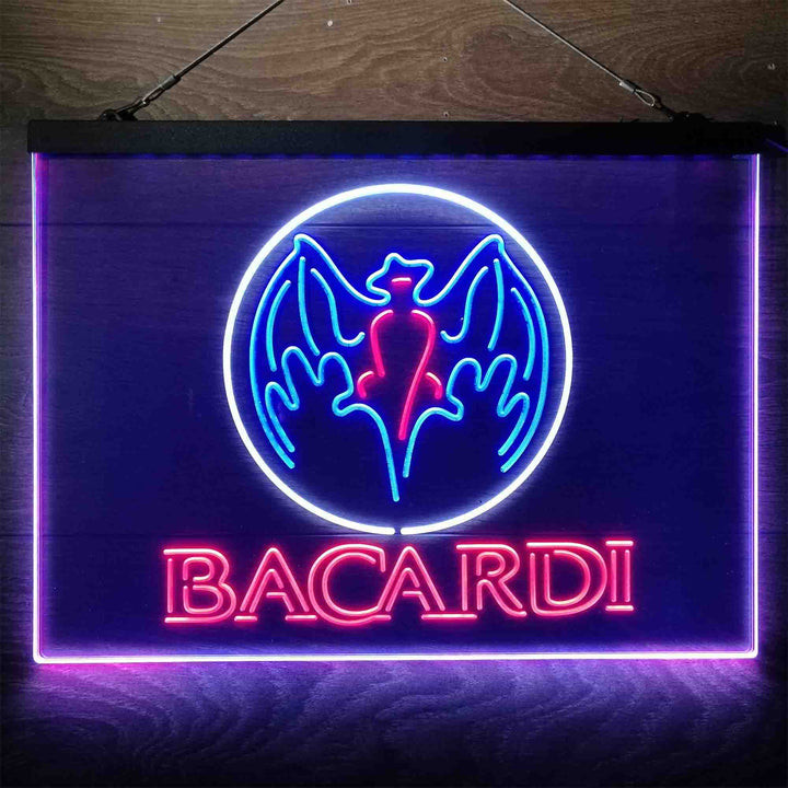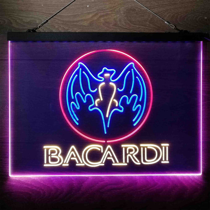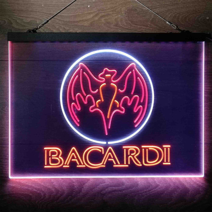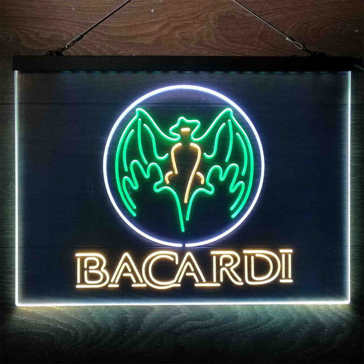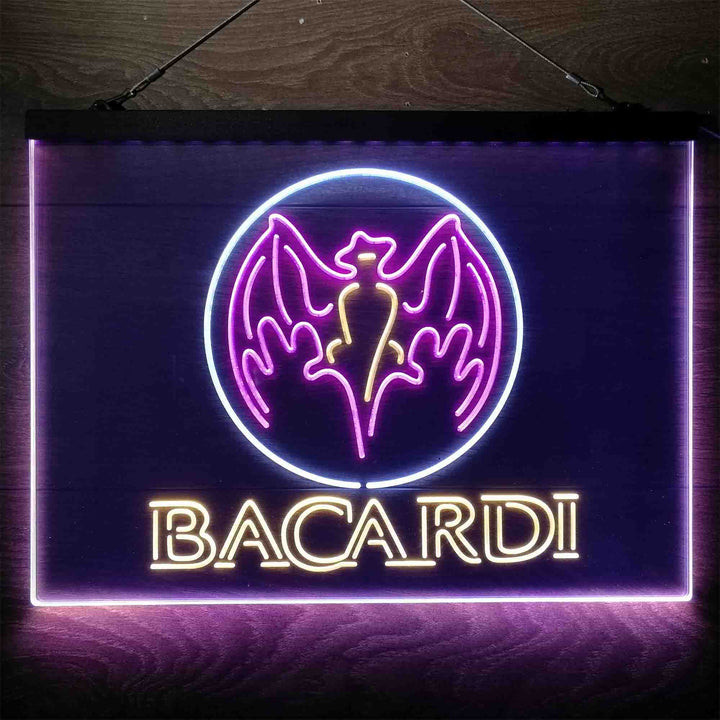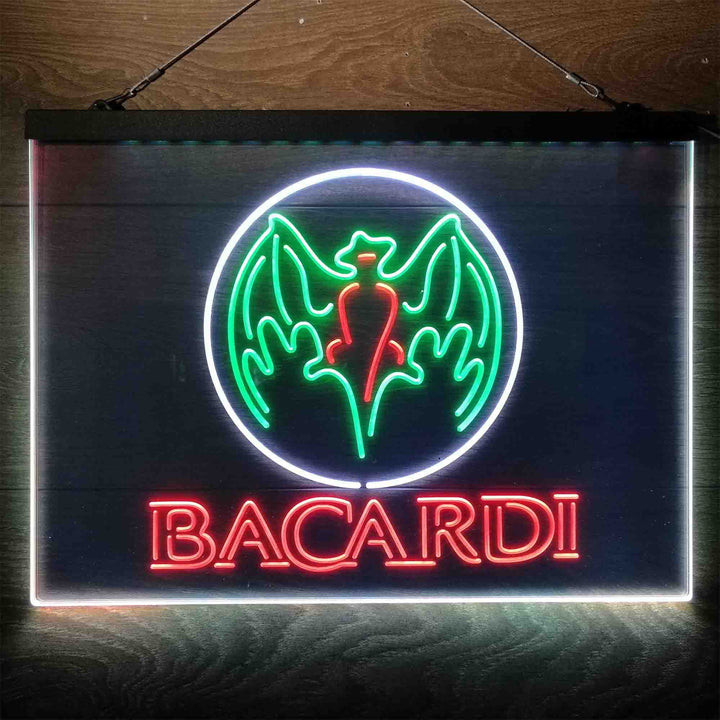 Bacardi Bat Man Cave 3-Color LED Sign Man Cave Home Bar Pub Decor