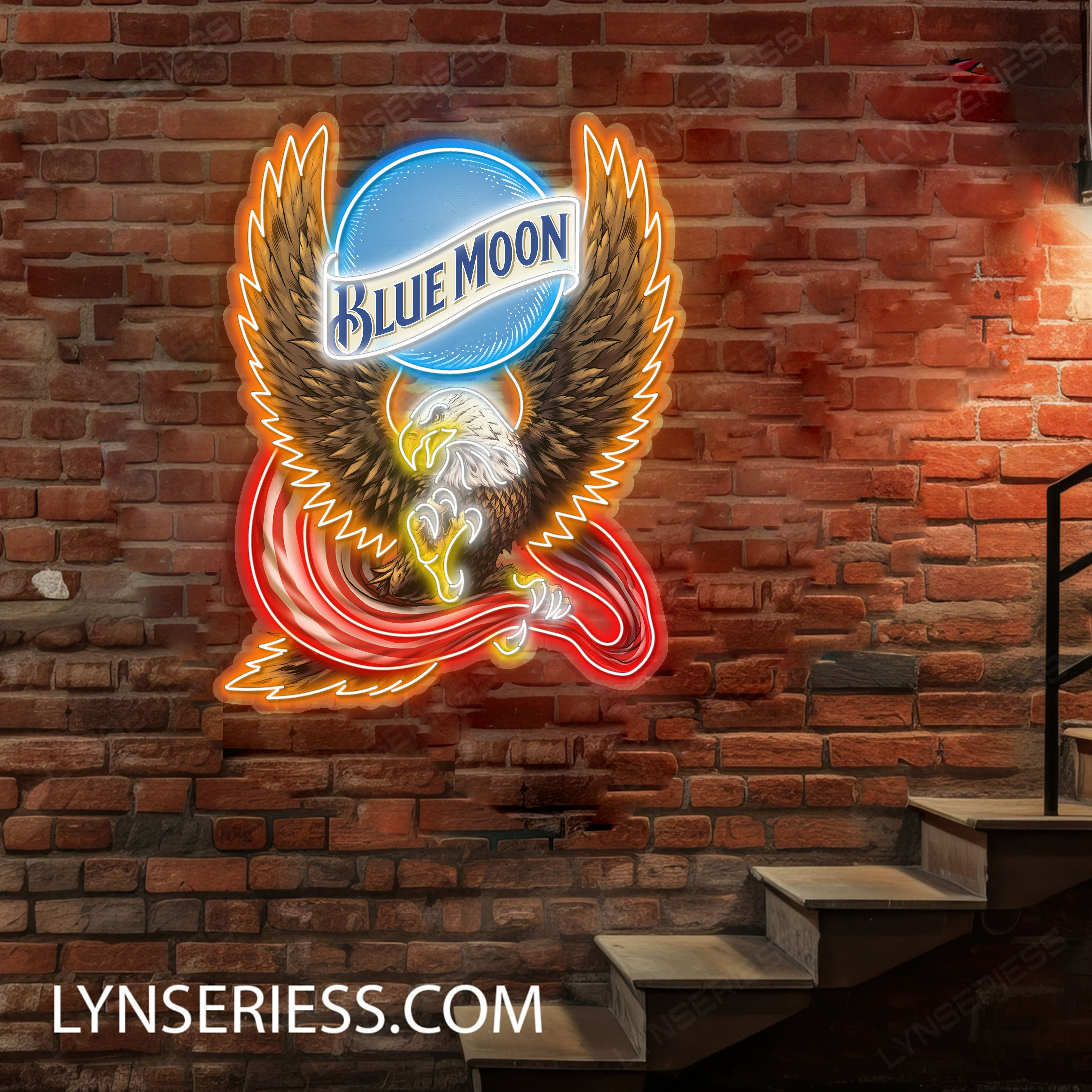 Blue Moon Logo Custom American Eagle LED Sign Acrylic Artwork Home Bar Pub Wall Hanging Decor