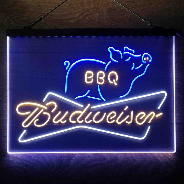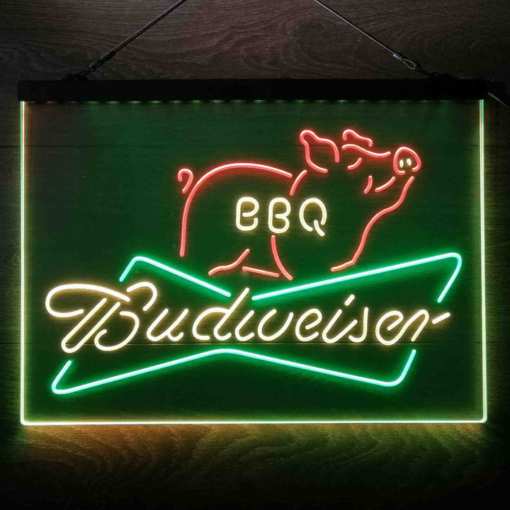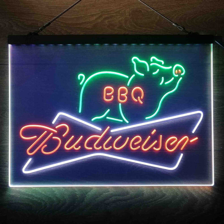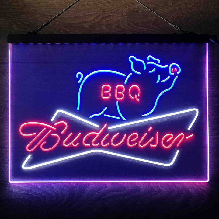 Budweiser BBQ 3-Color LED Sign Man Cave Home Bar Pub Decor