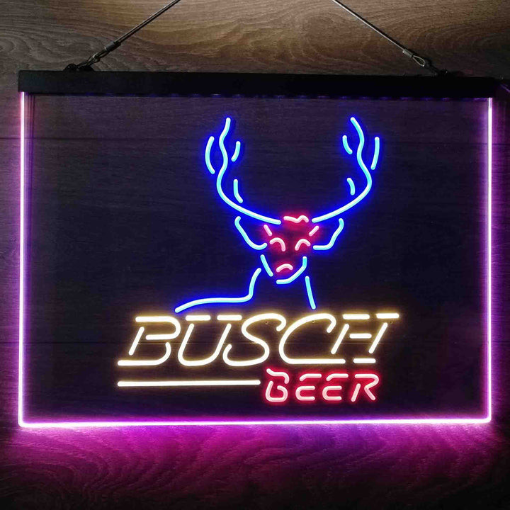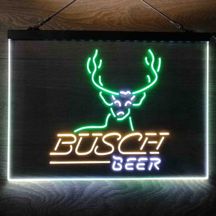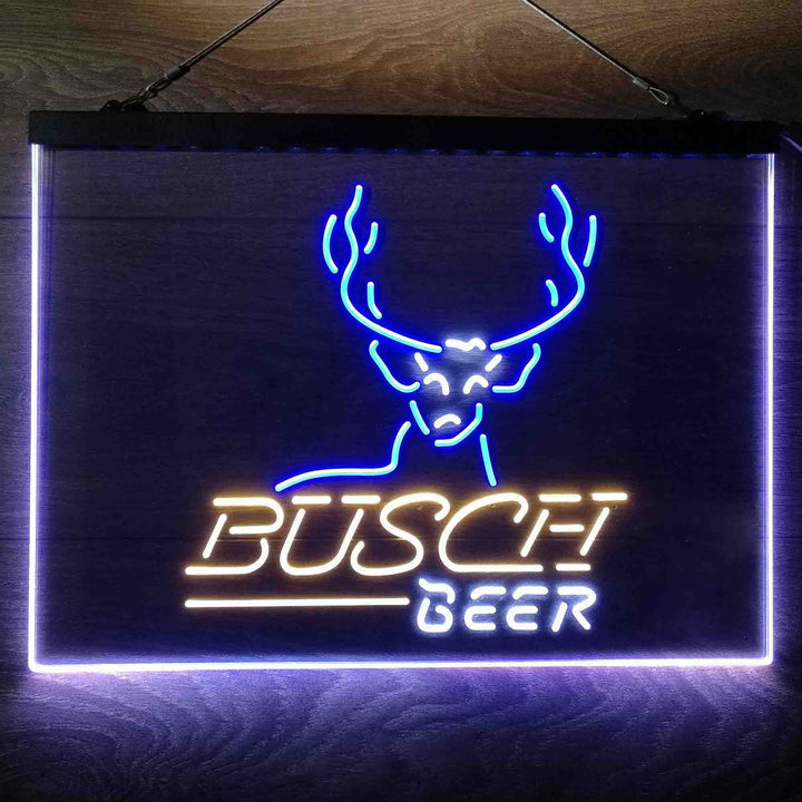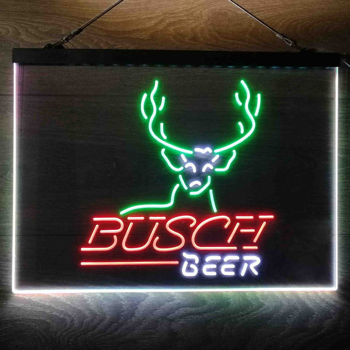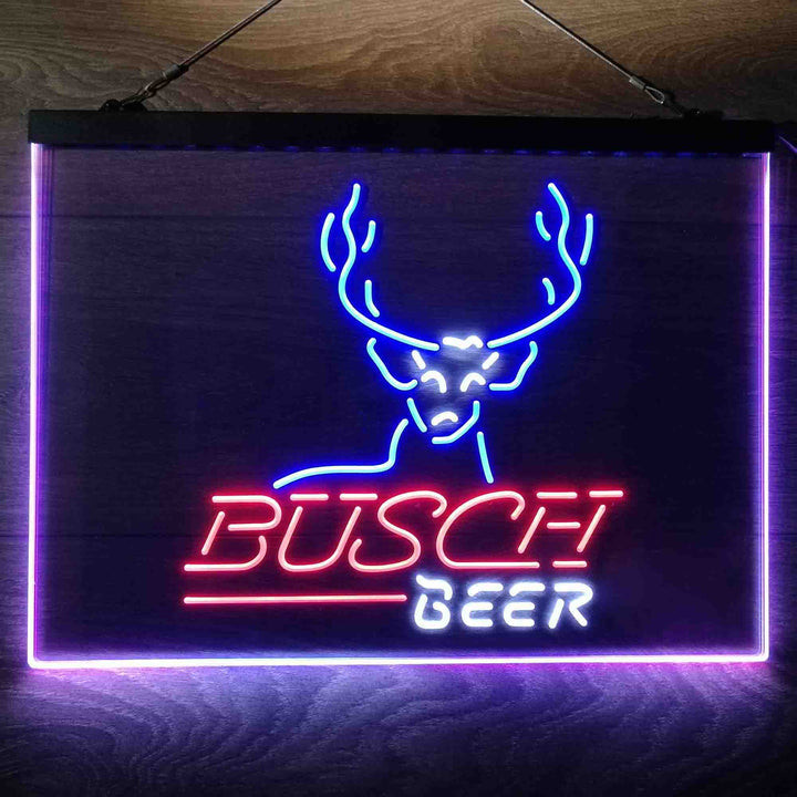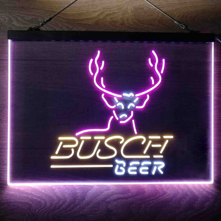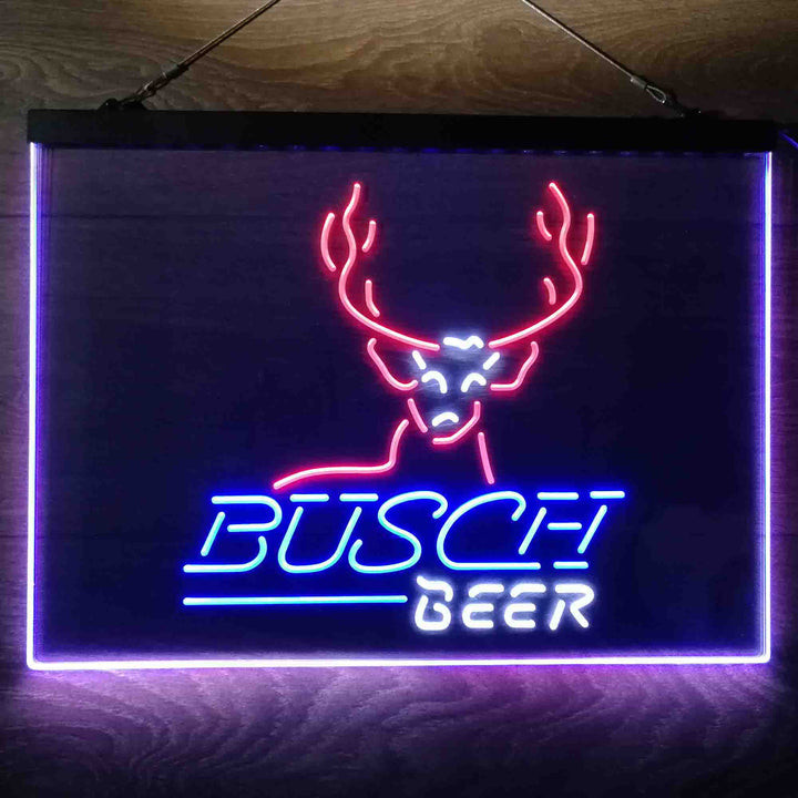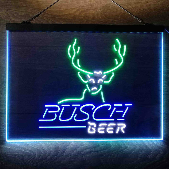 Buschs Cabin Deer Hunt 3-Color LED Sign Man Cave Home Bar Pub Decor