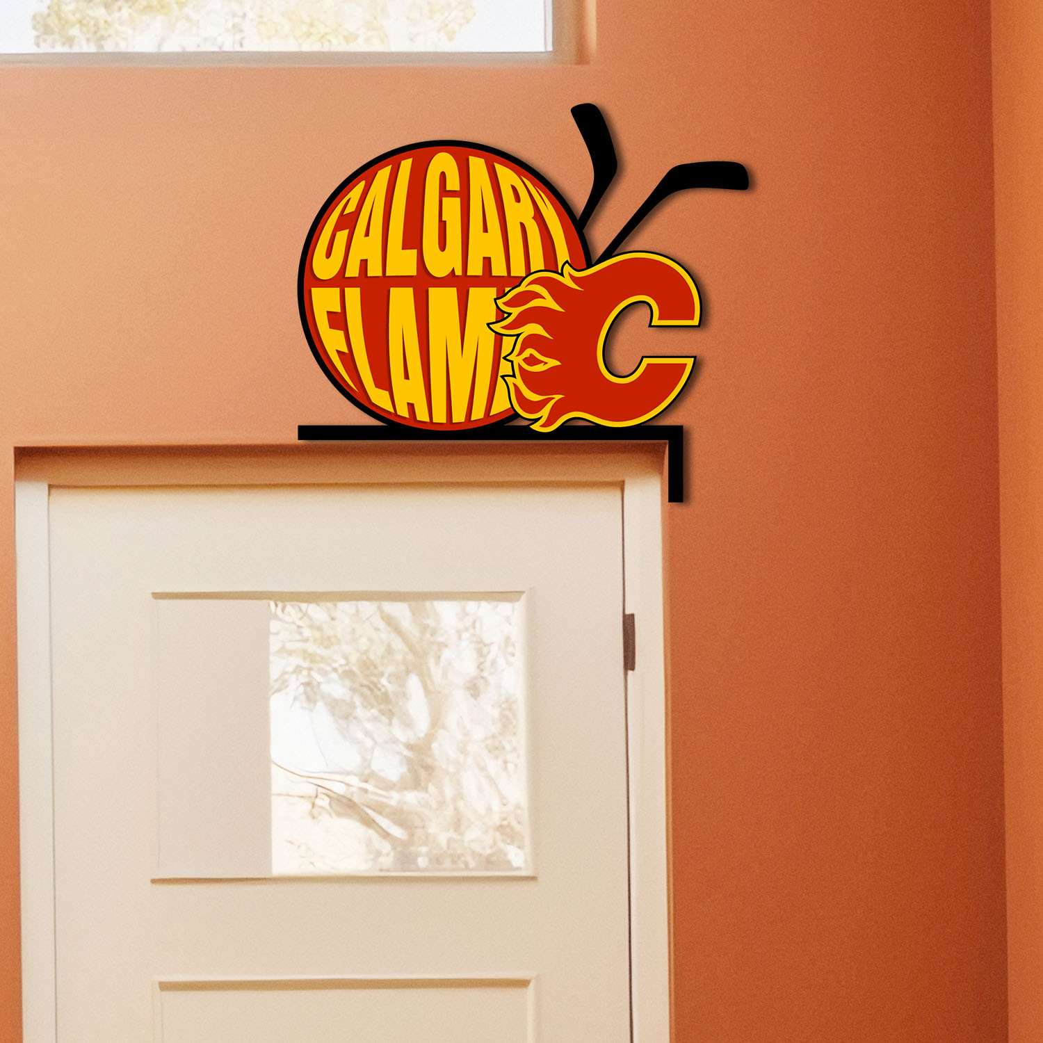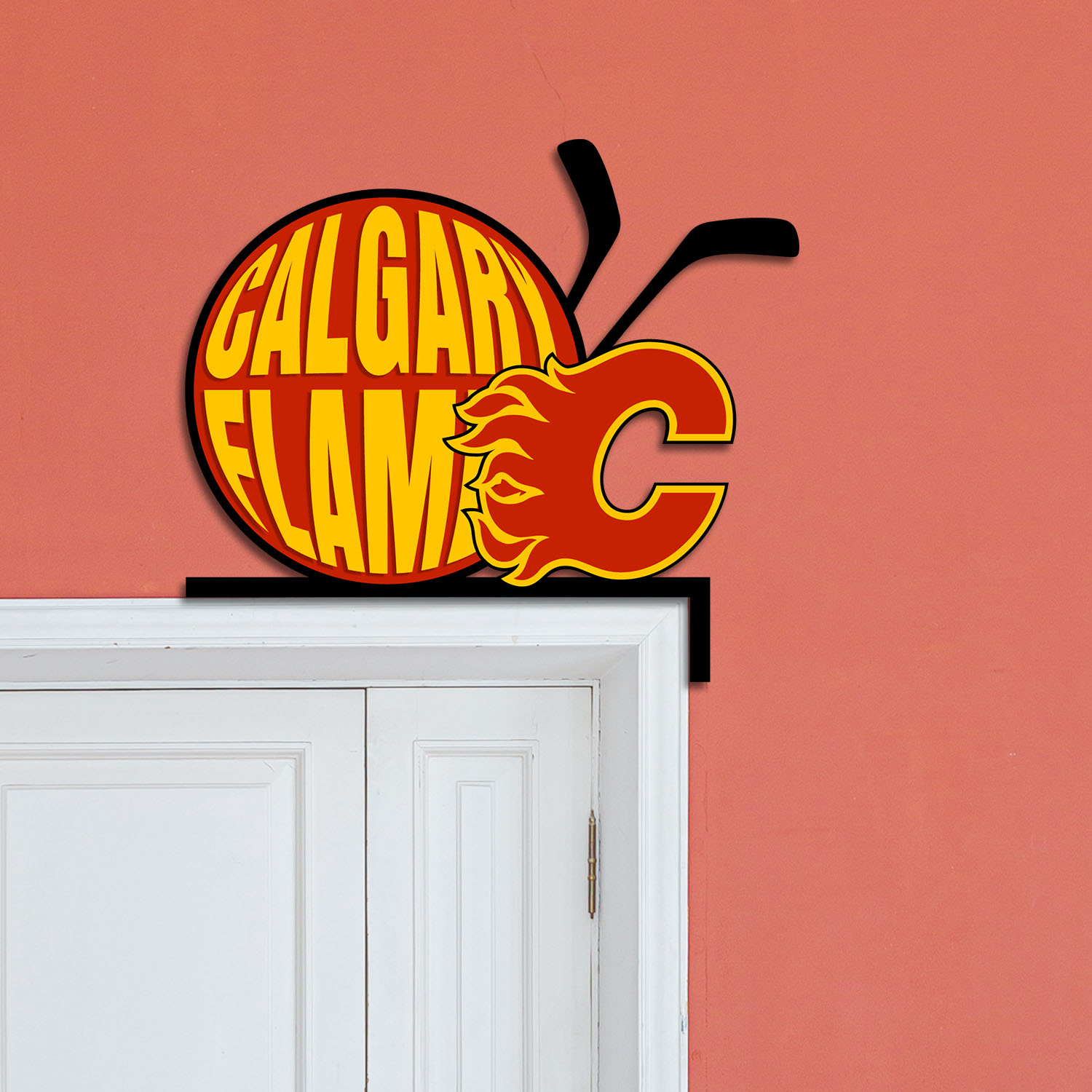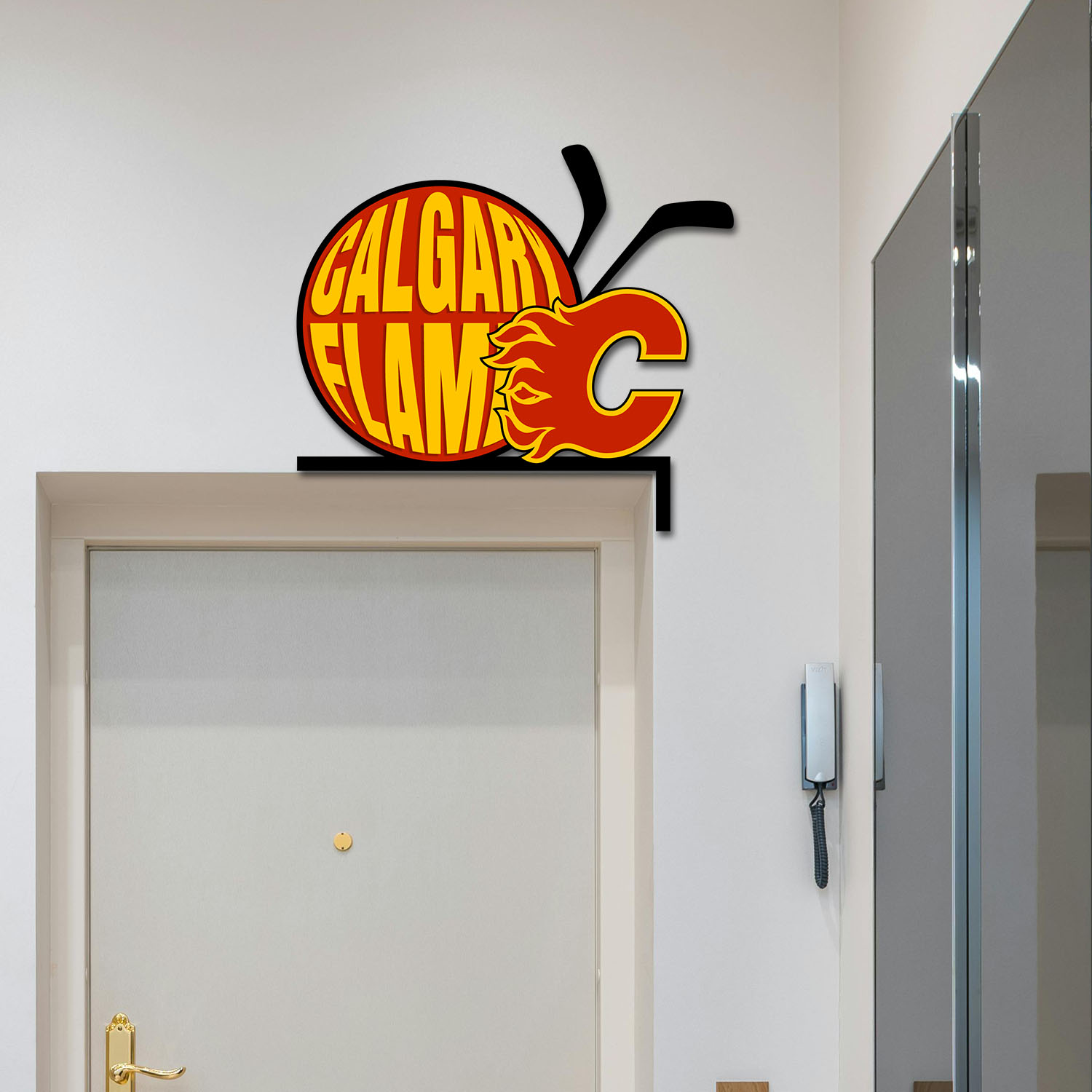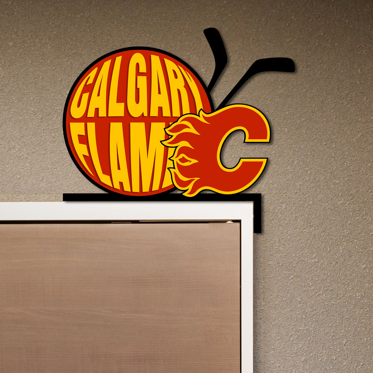 Calgary Flames Metal Door Corner NHL Sign Decor