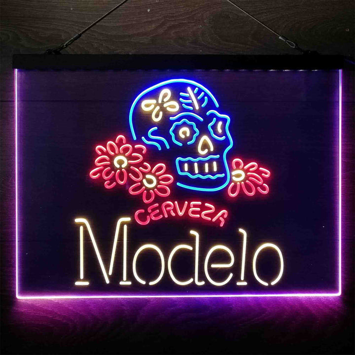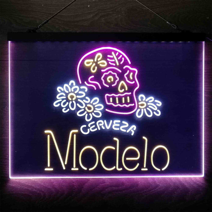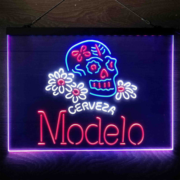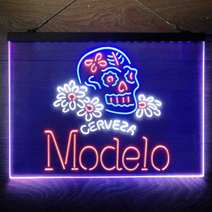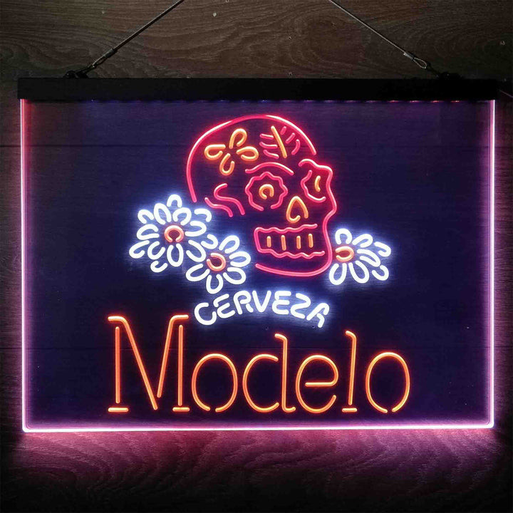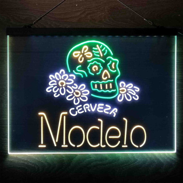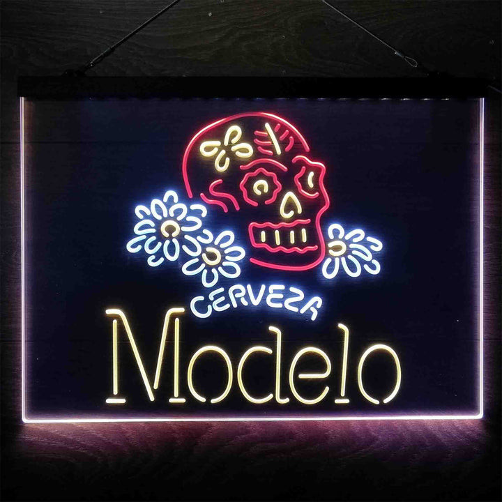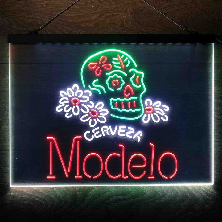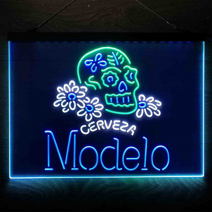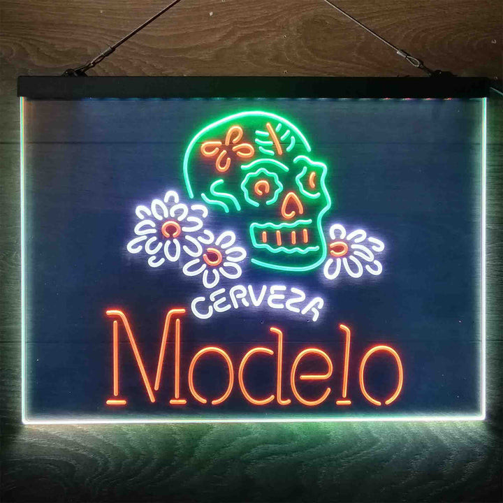 Cerveza Modelo Skull 3-Color LED Sign Man Cave Home Bar Pub Decor