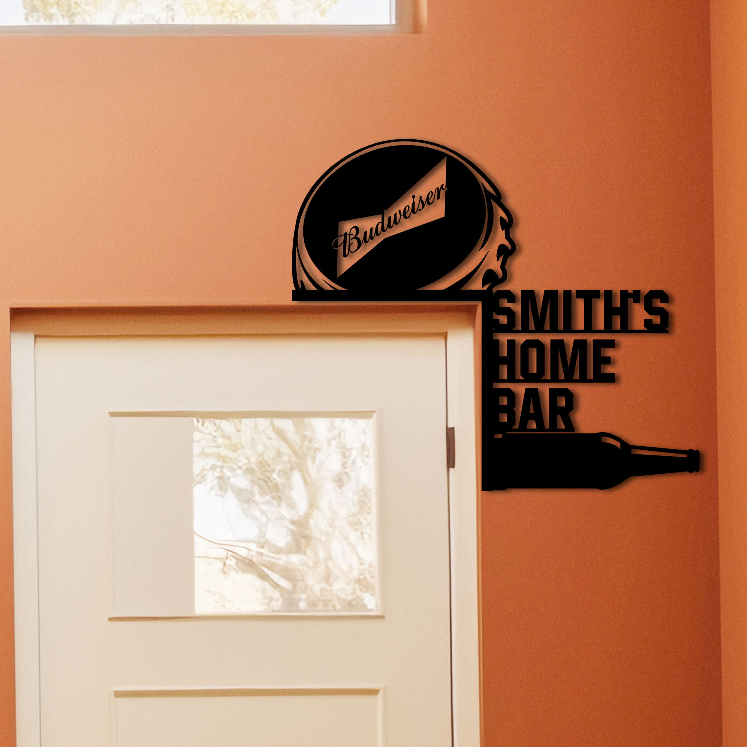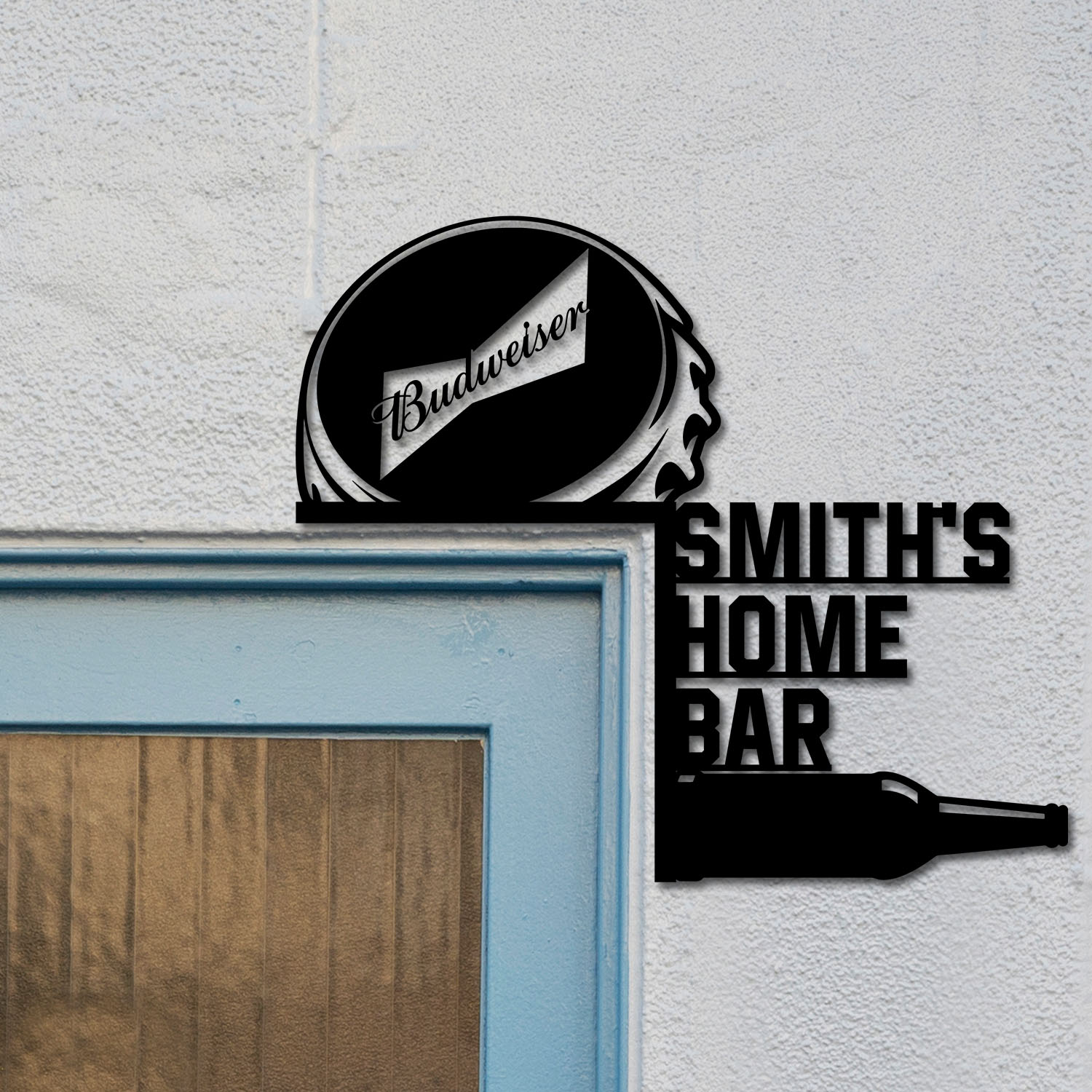 Custom Budweiser Bottle Cap Metal Door Corner Home Bar Pub Frame Topper Sign Decor