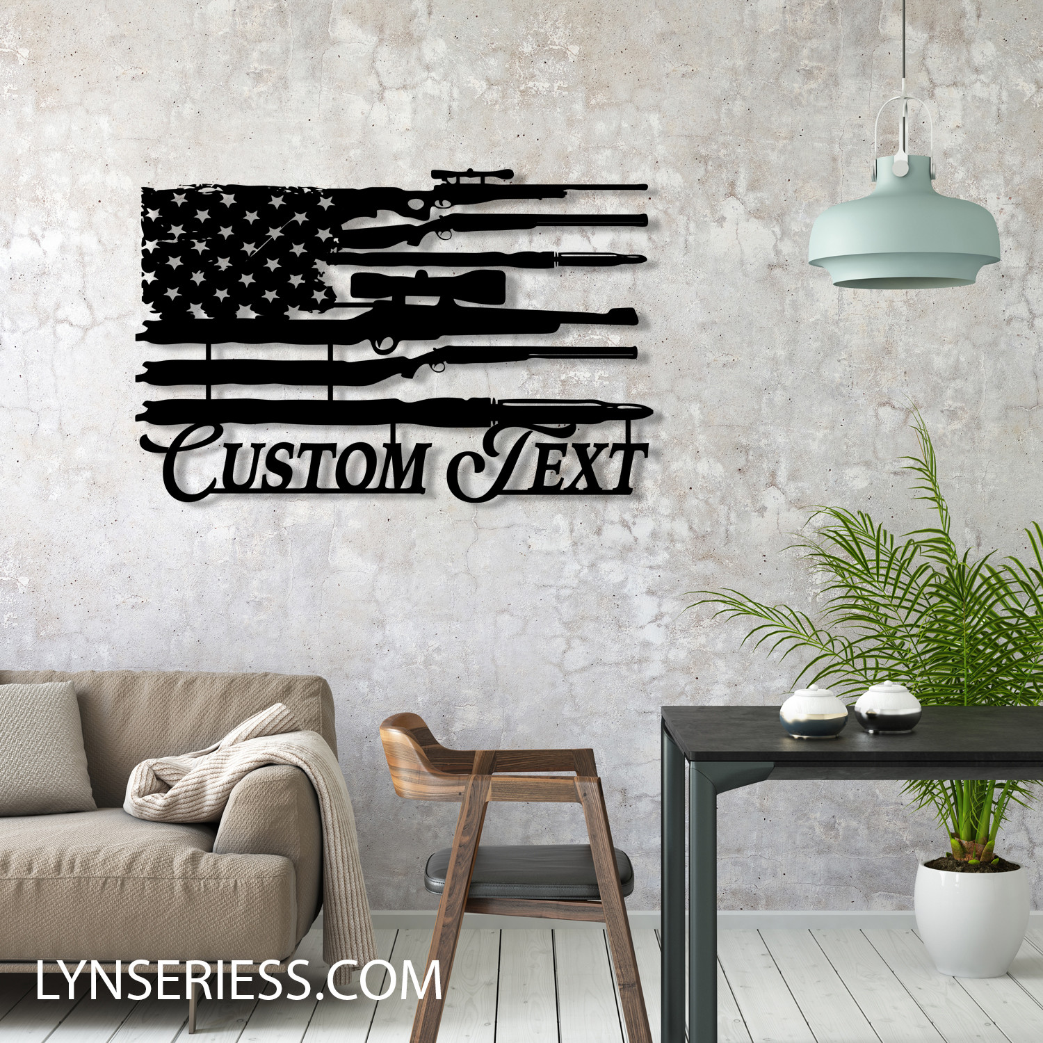 Custom Gun American Flag Metal Sign Wall Art Home Decor