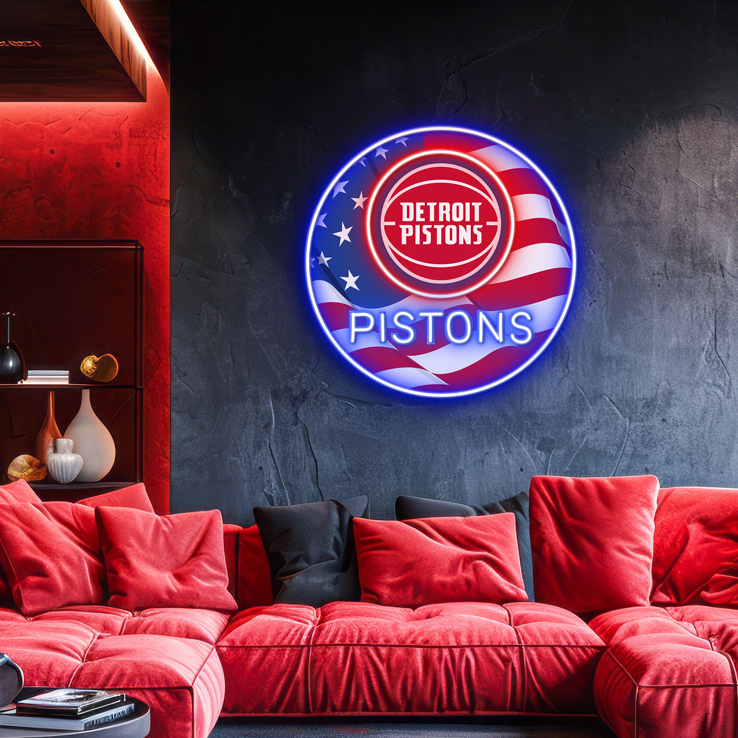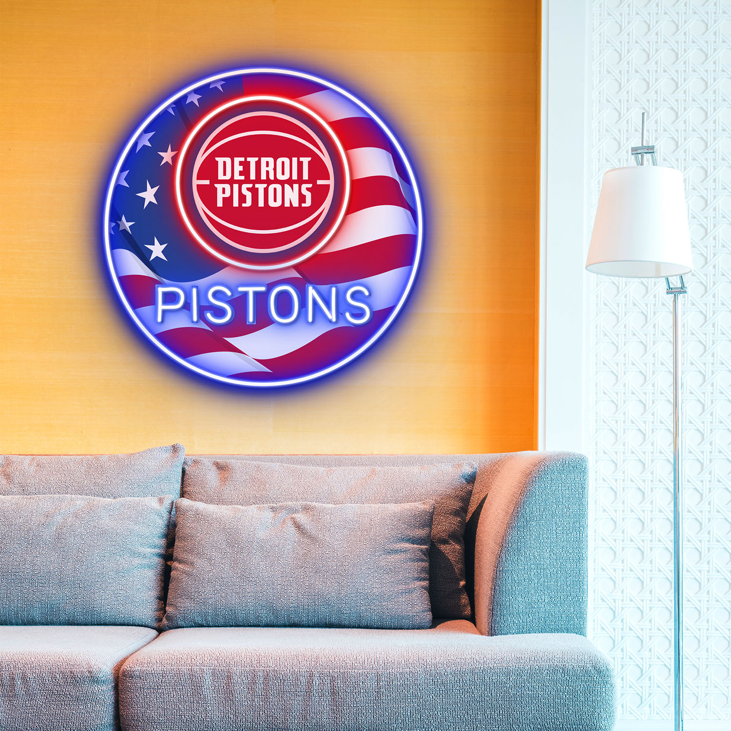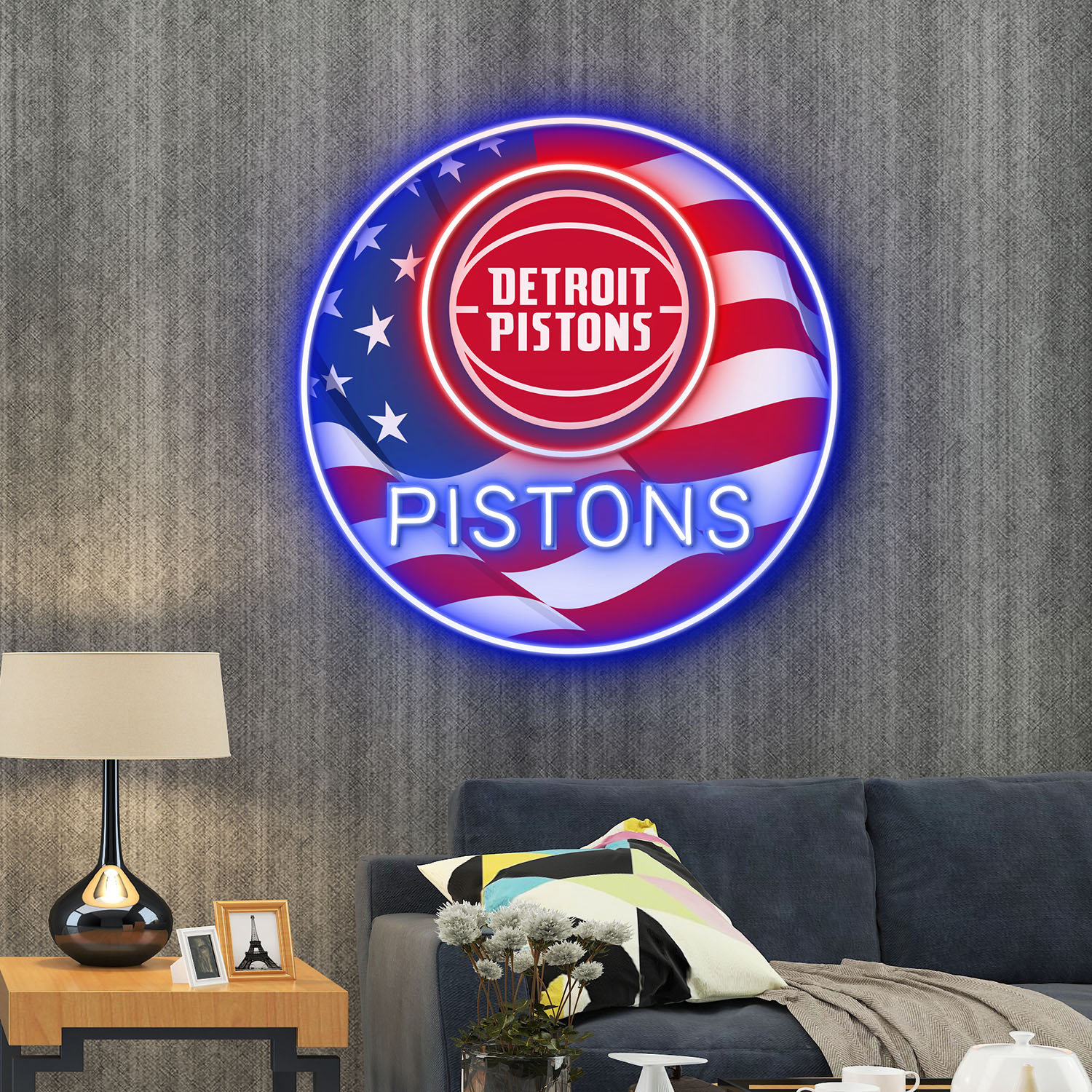 Detroit Pistons US Flag Acrylic Neon LED Sign NBA Home Decor