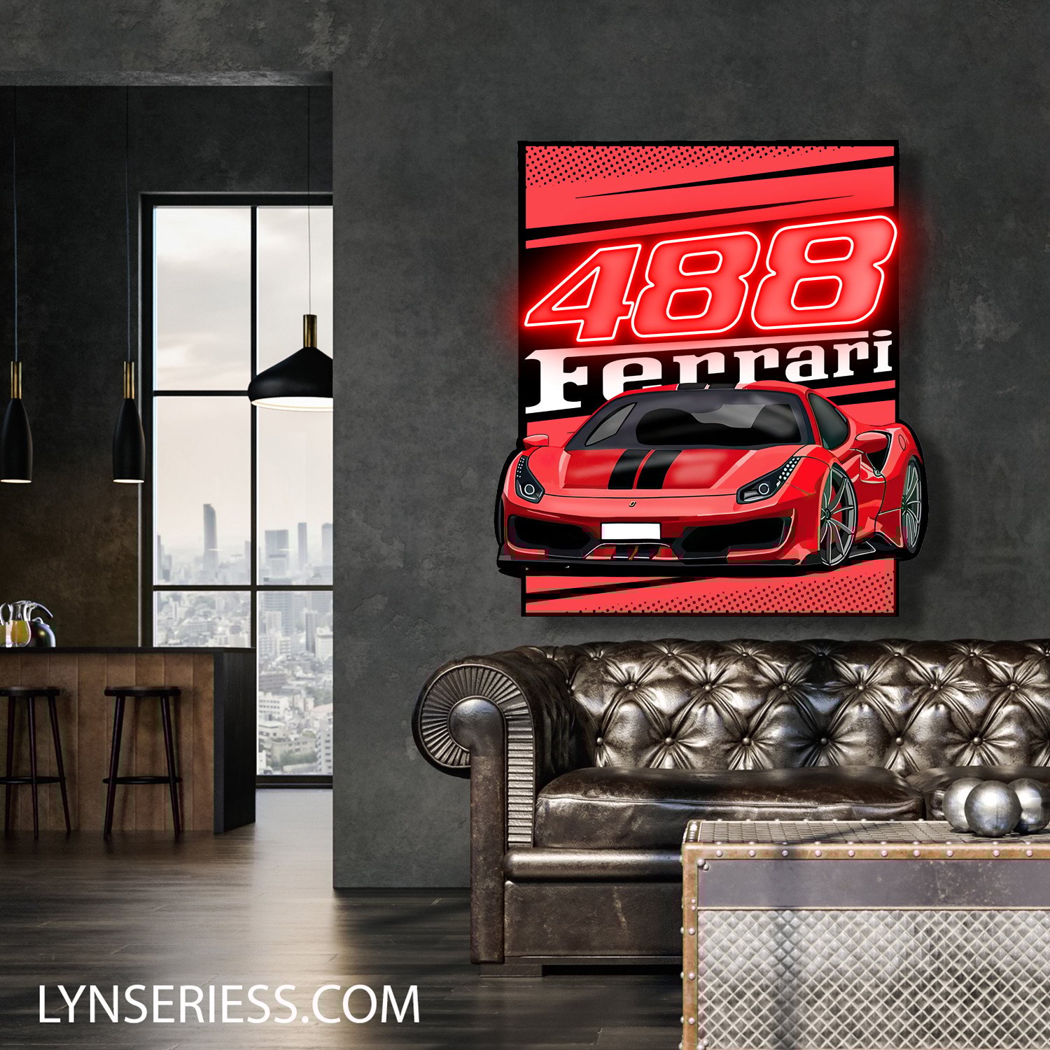 FERRARI 488 Poster Neon LED Sign Super Car Garage Man Cave Home Decor