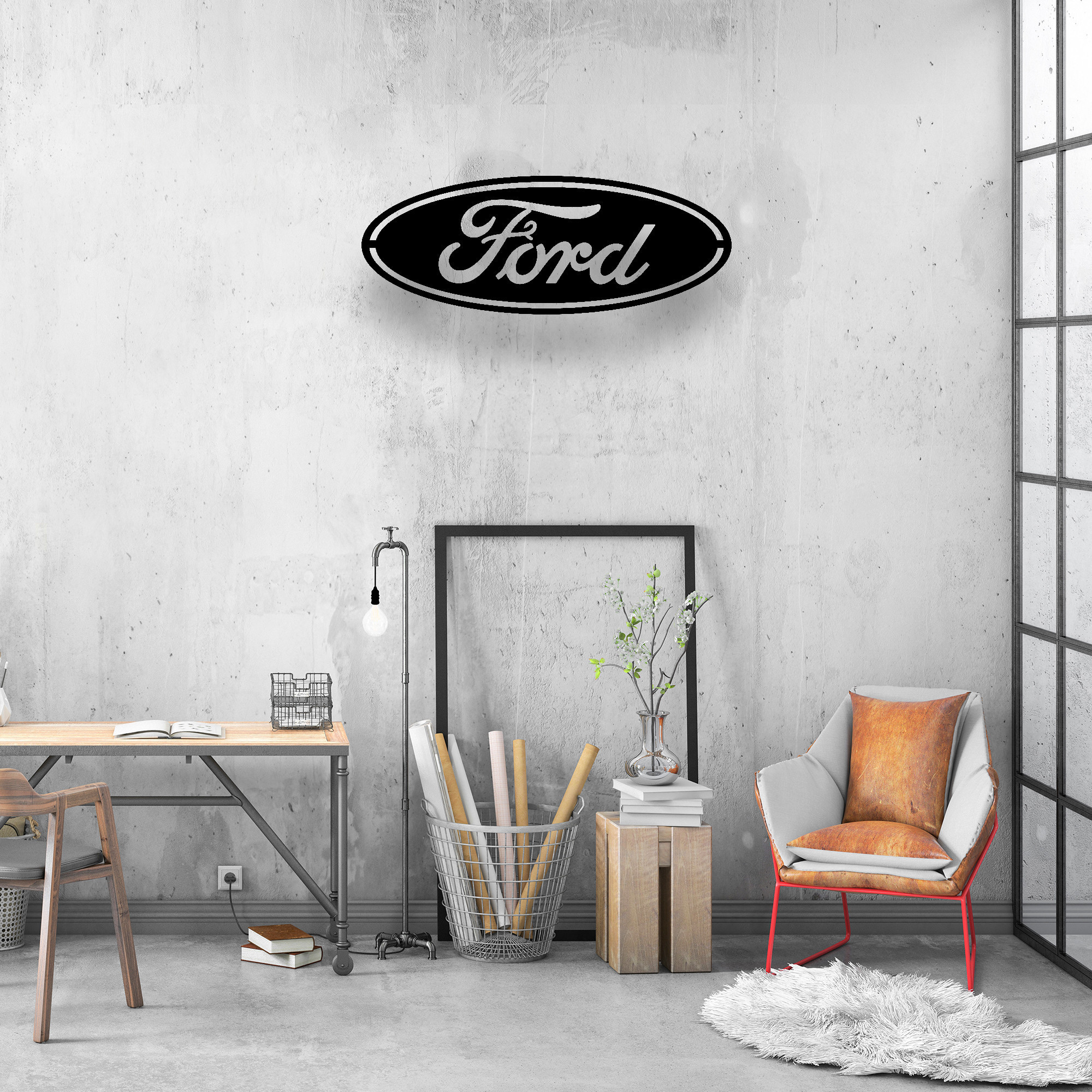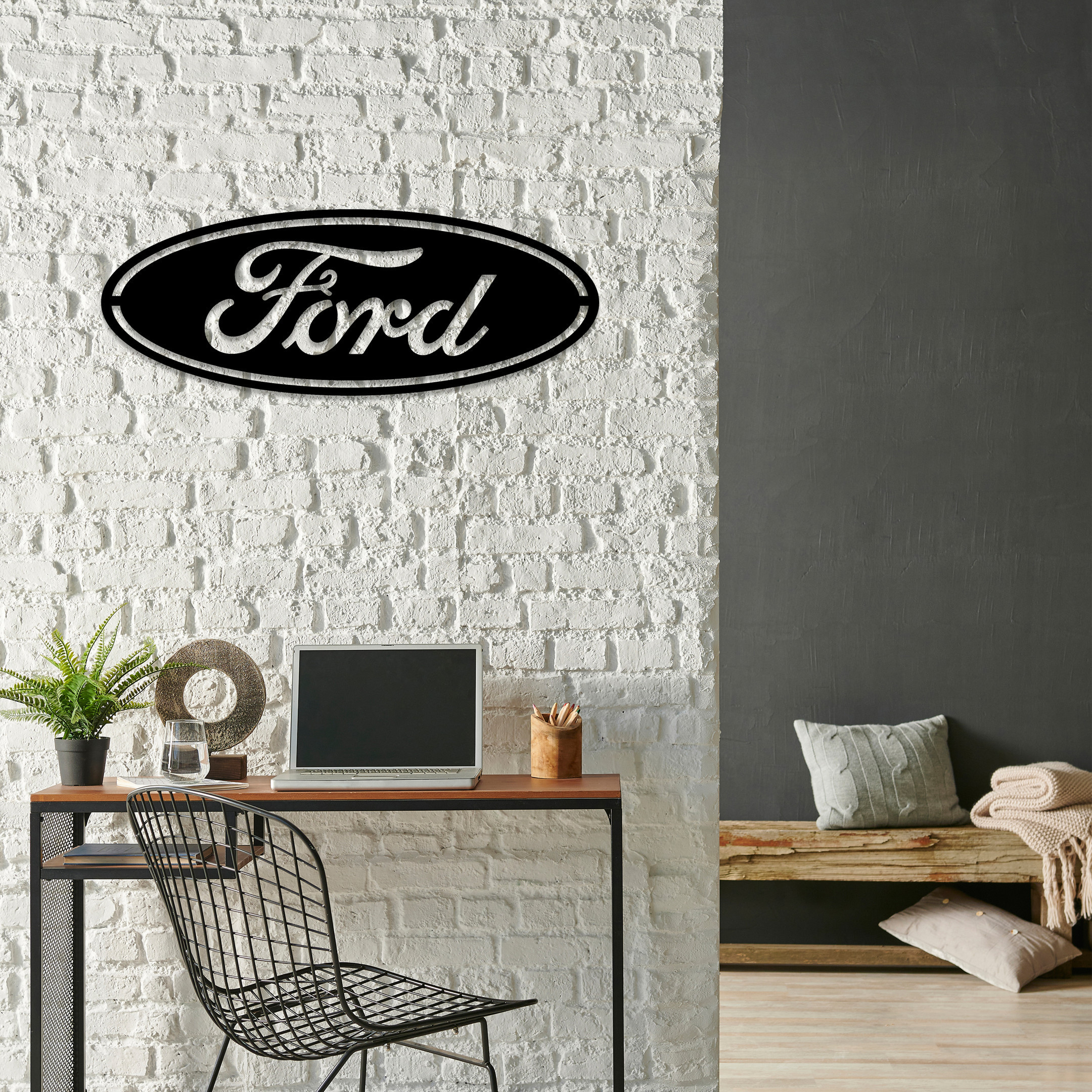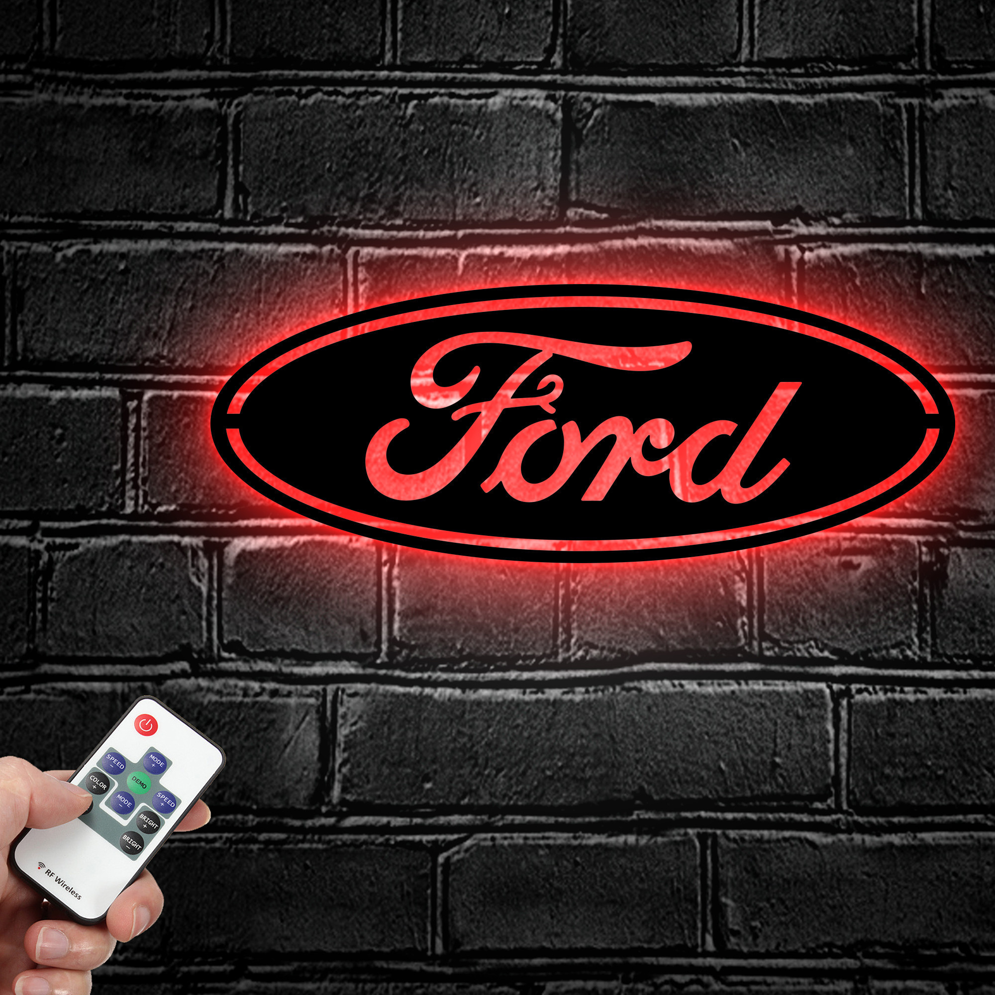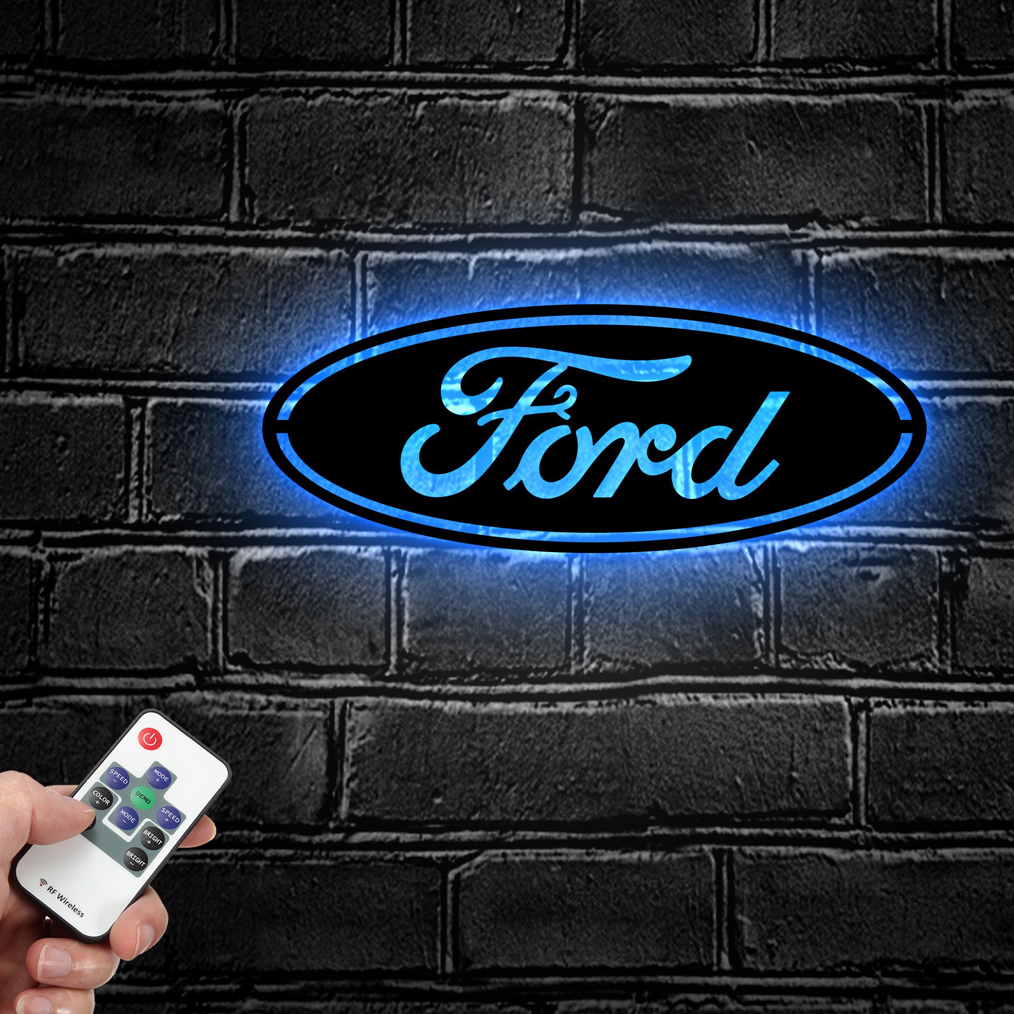Ford Logo Car Metal Sign LED Light Garage Man Cave Home Bar Decor