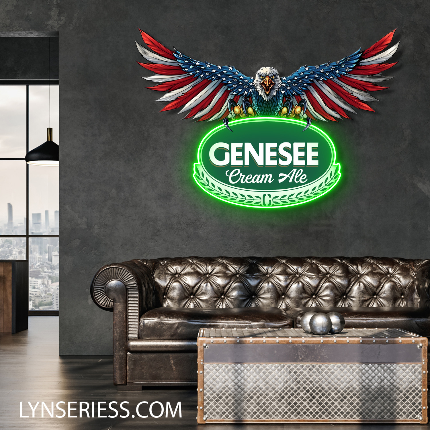 Genesee American Eagle Neon LED Sign Acrylic Artwork Home Bar Decor
