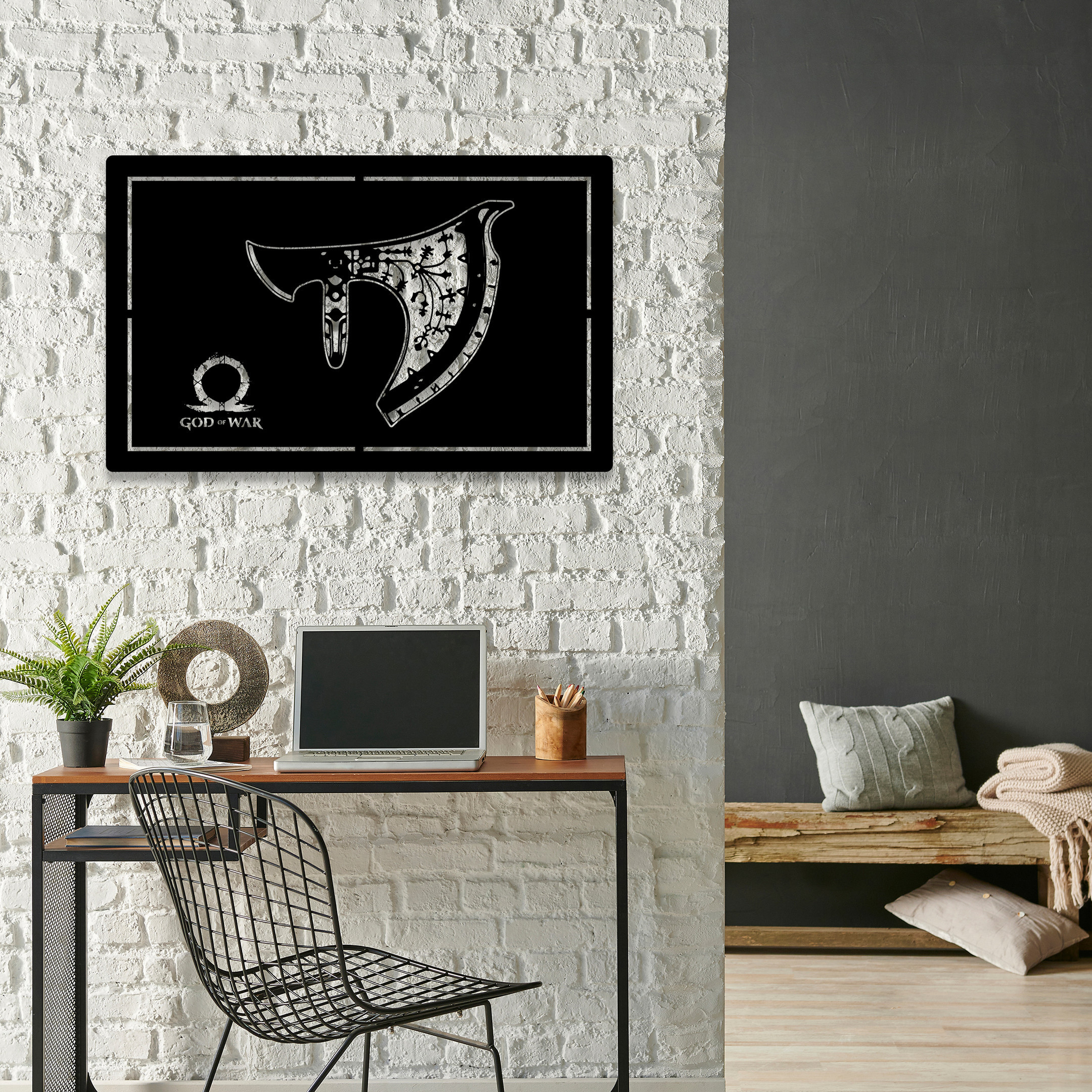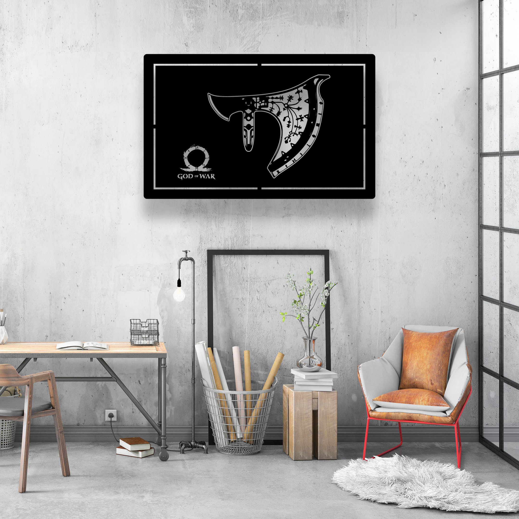 God of War Krato Axe Game Room Metal Sign LED Light Home Bar Wall Art Decor