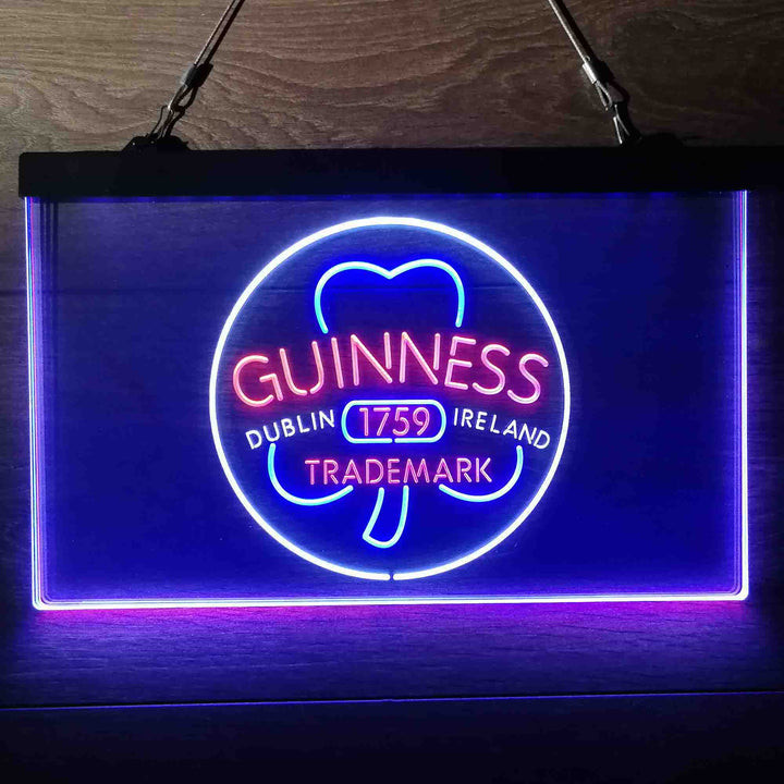 Guinness Shamrock Dublin Ireland 3-Color LED Sign Man Cave Home Bar Pub Decor