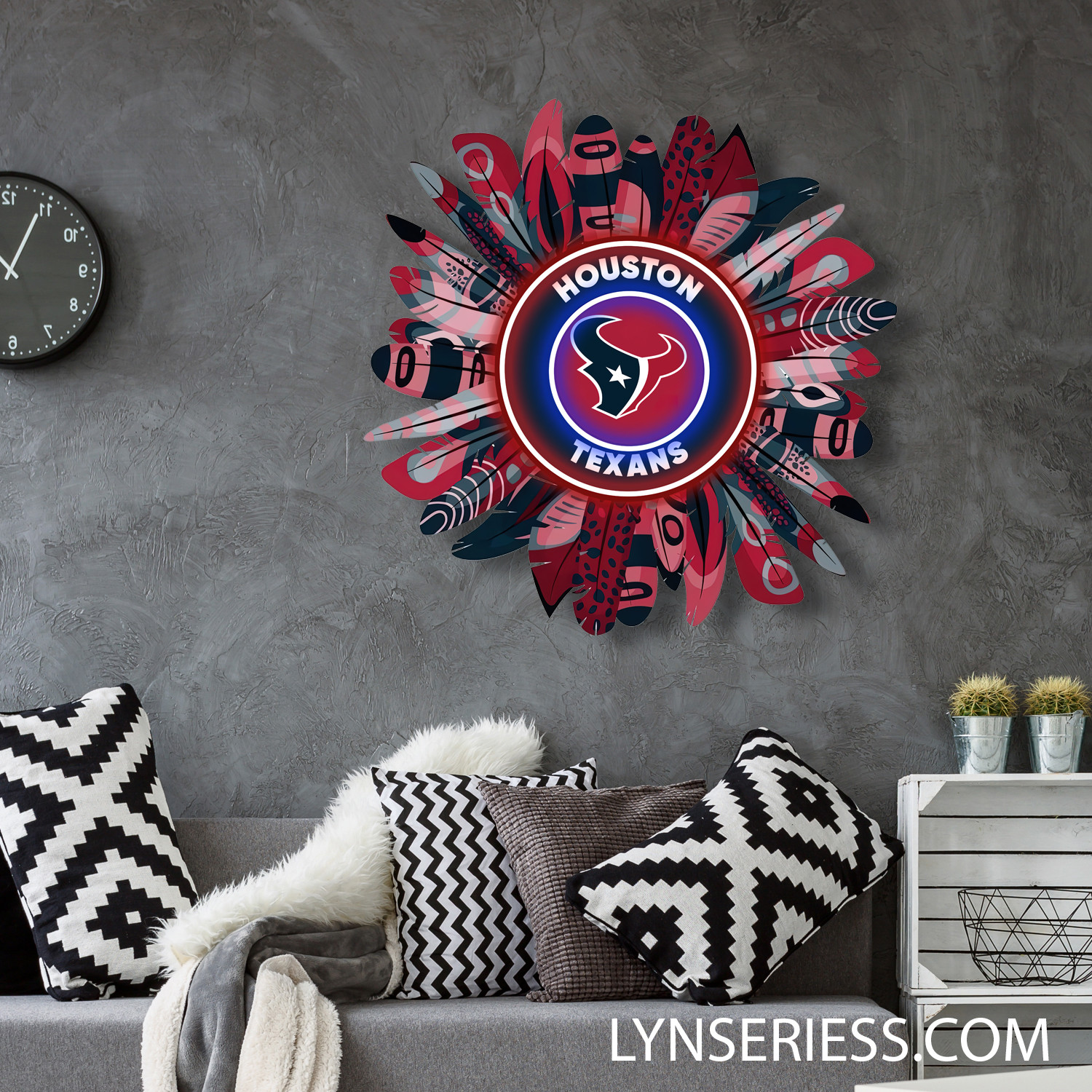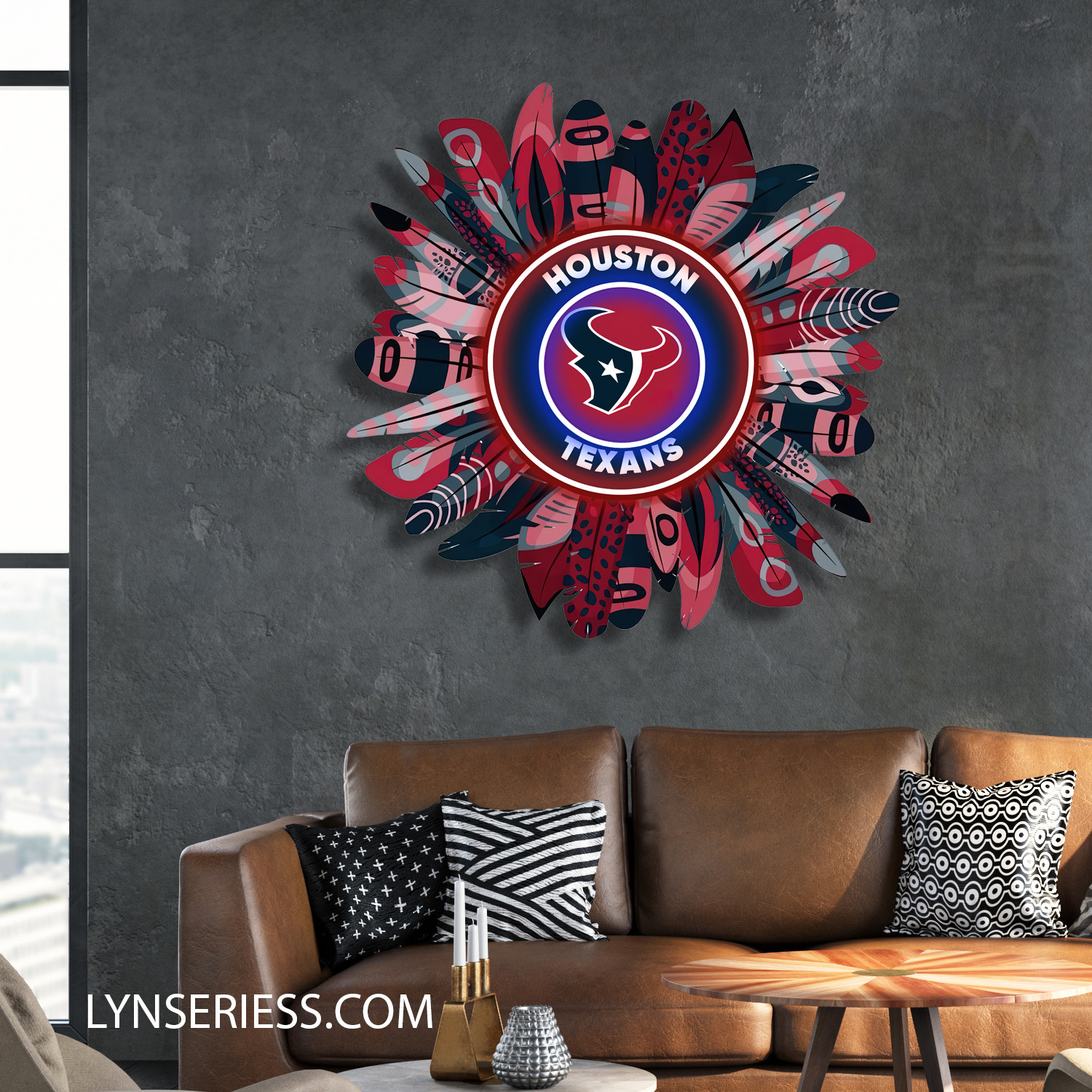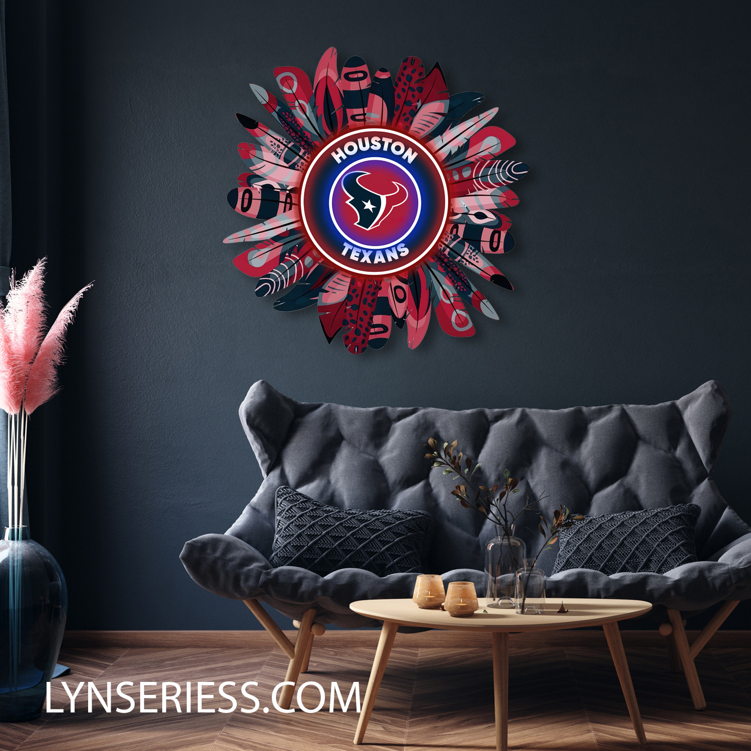 Houston Texans Wreath Neon LED Sign NFL Acrylic Artwork Wall Art Home Decor