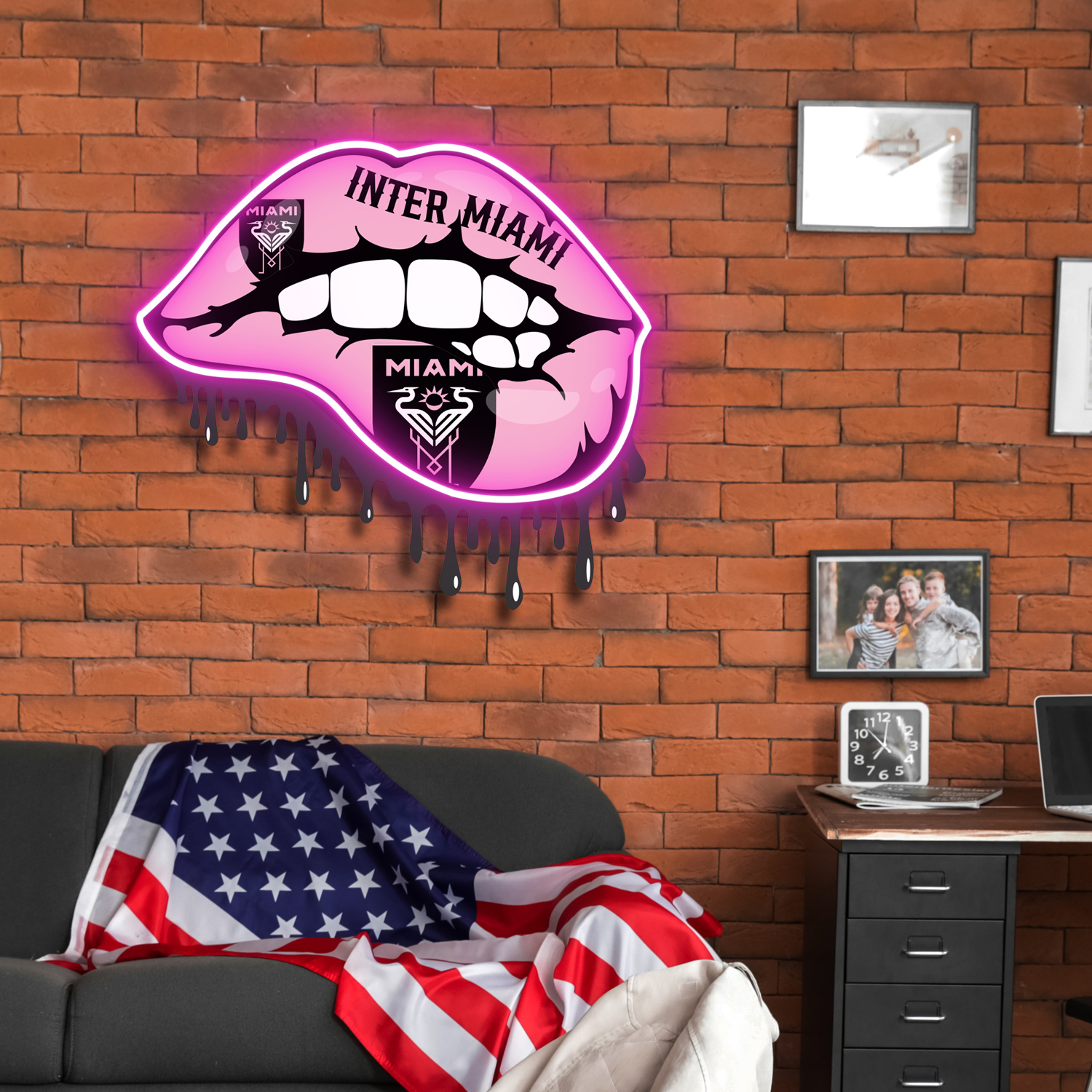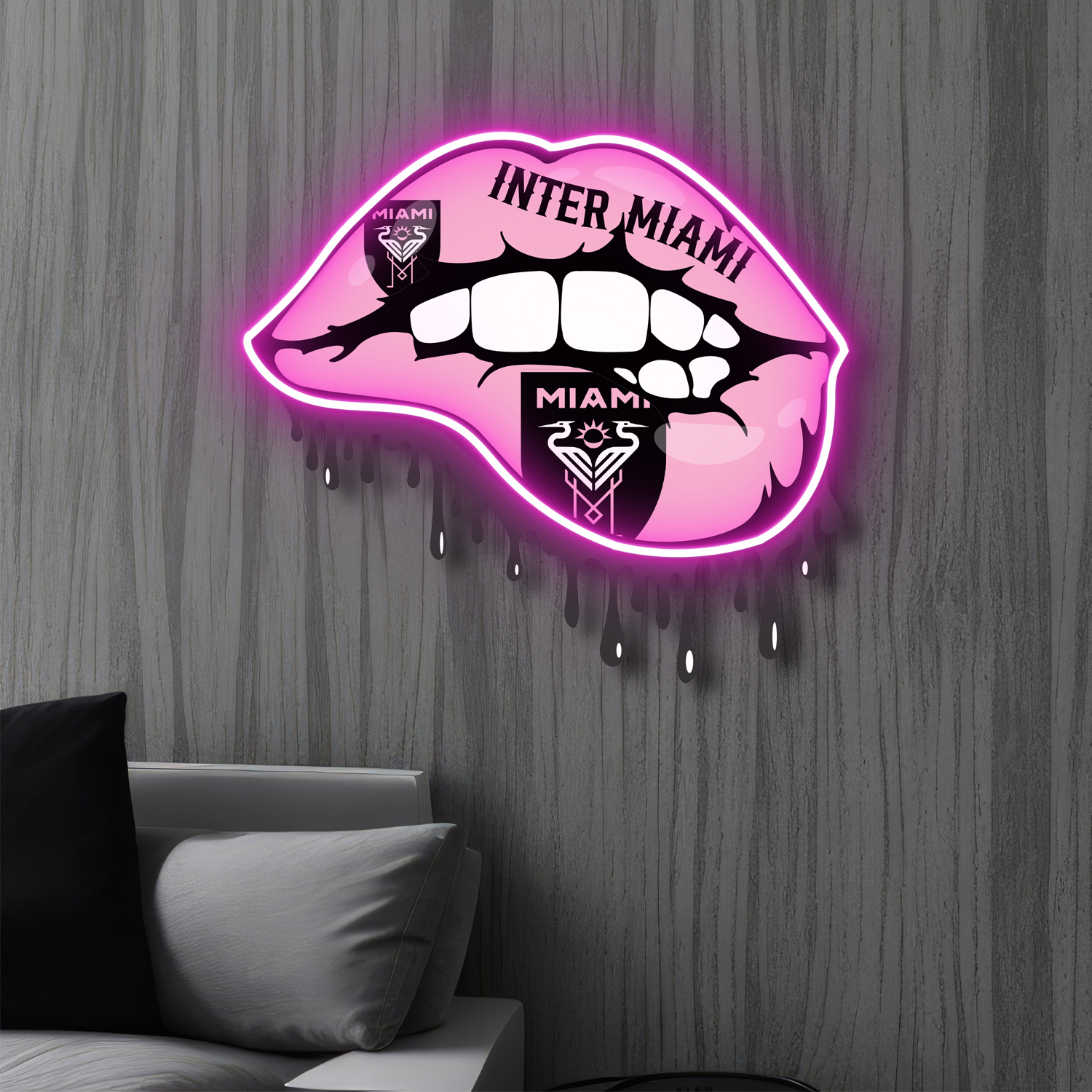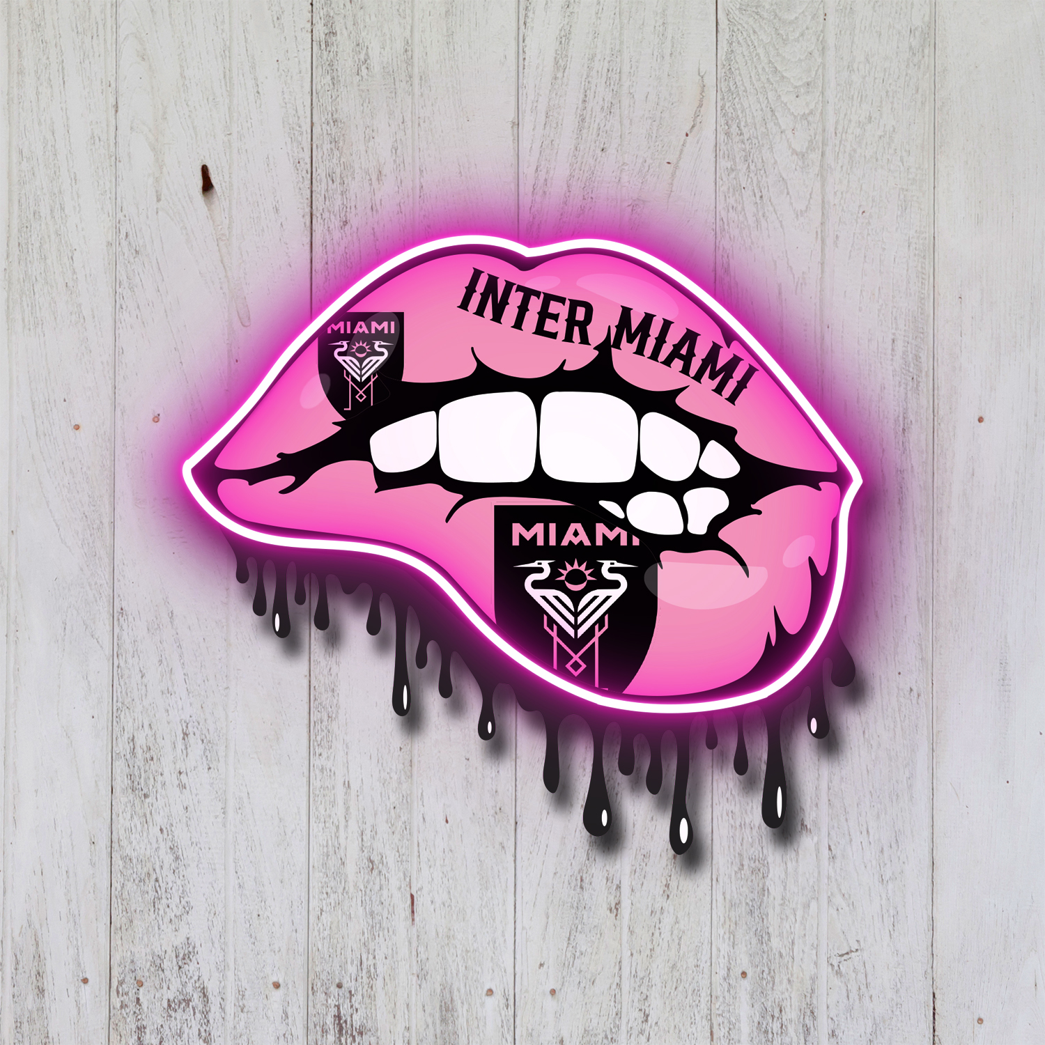 Inter Miami FC Dripping Lips Neon LED Sign MLS Fan Acrylic Artwork Home Decor