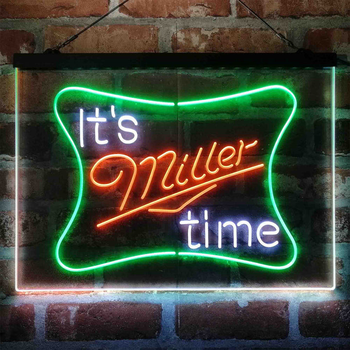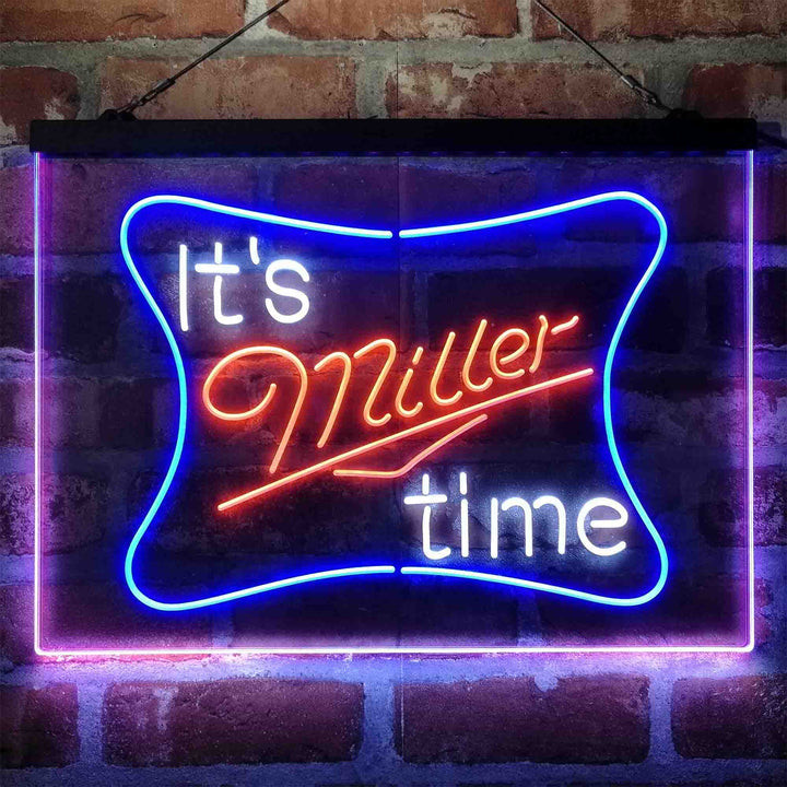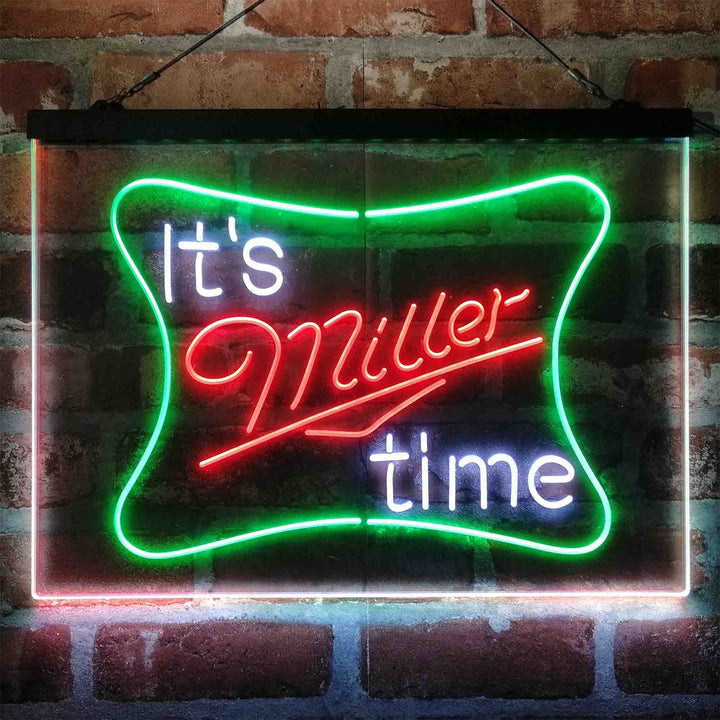 It Miller Time 3-Color LED Sign Man Cave Home Bar Pub Decor