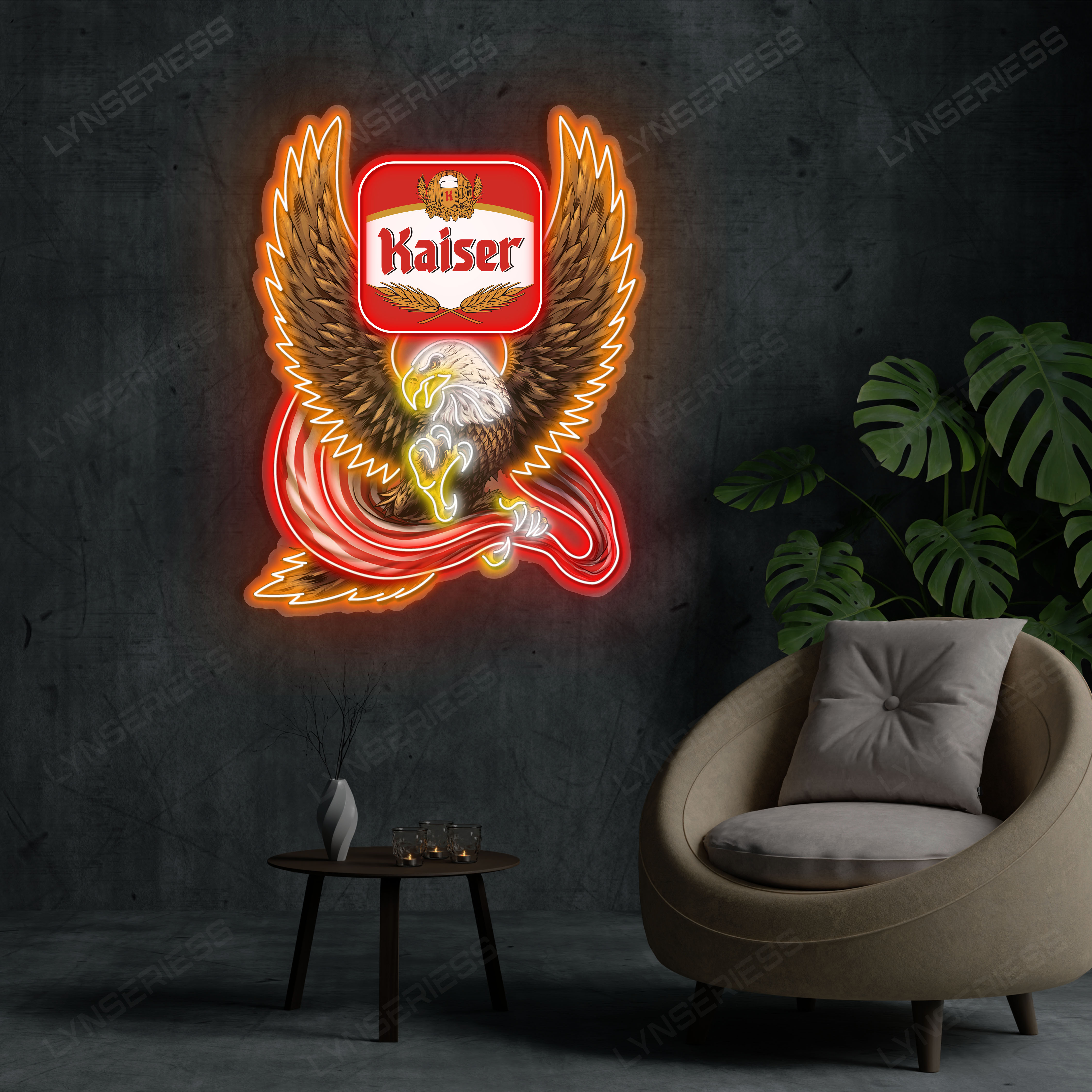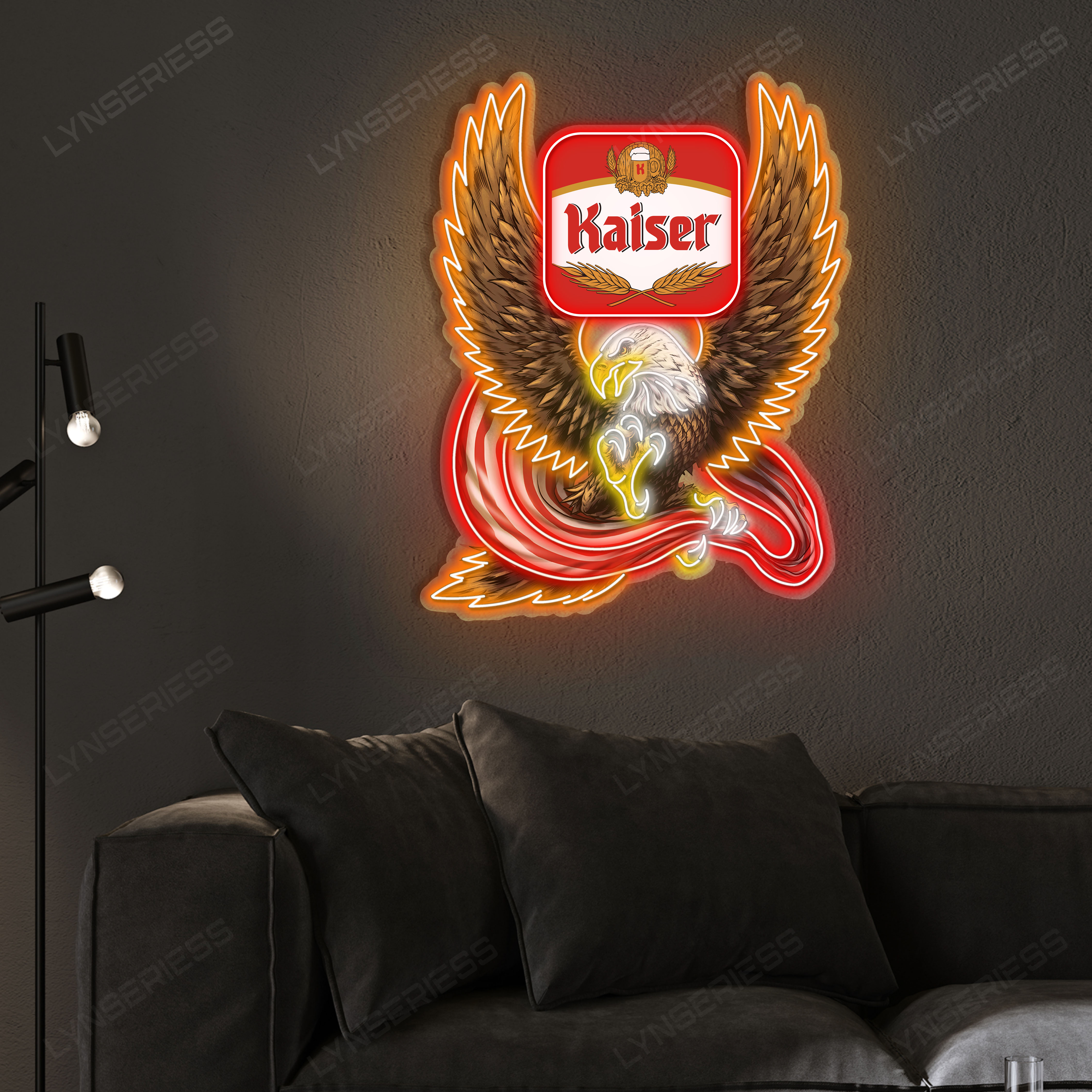 Kaiser Logo Custom American Eagle LED Sign Acrylic Artwork Home Bar Pub Wall Hanging Decor