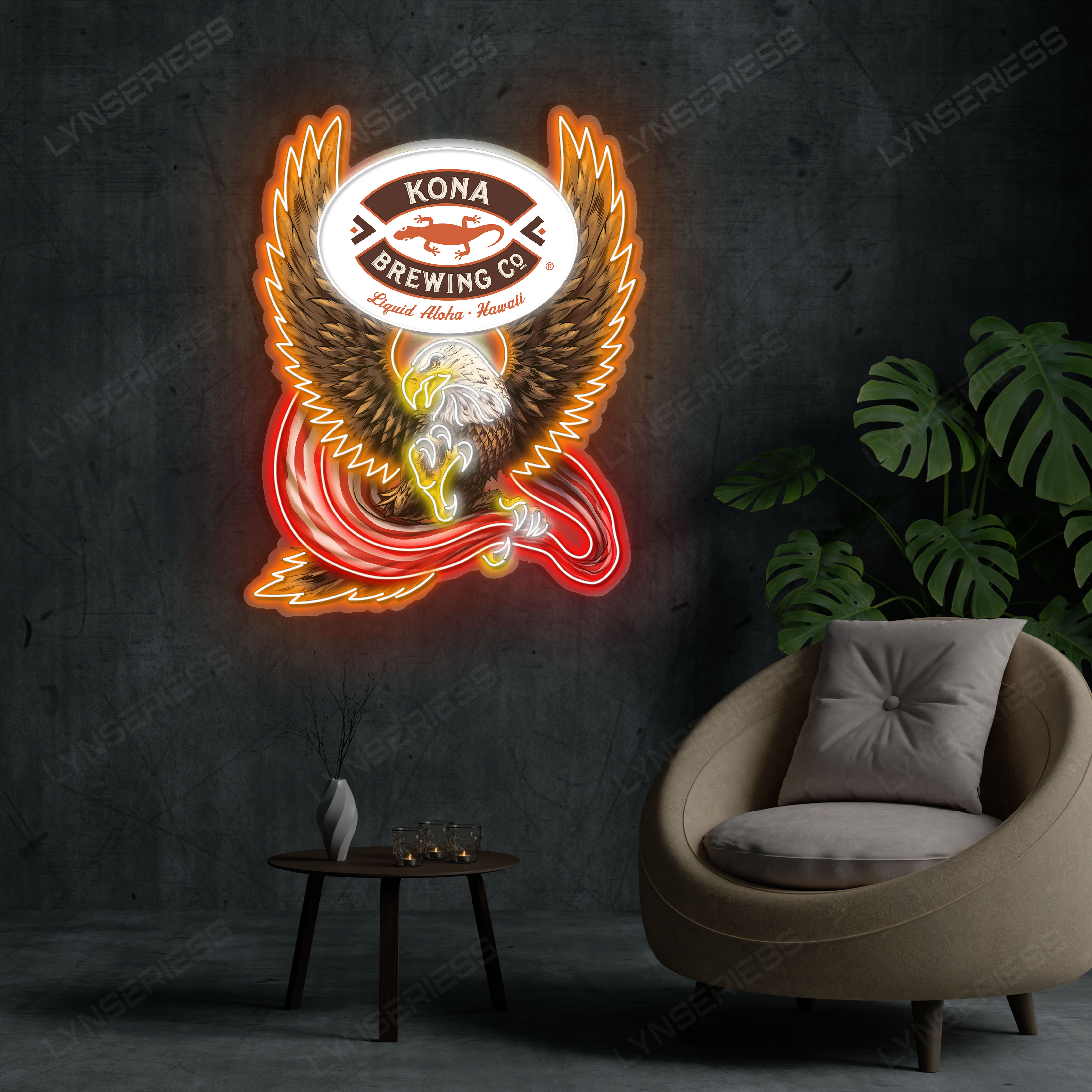 Kona Brewing Co Logo Custom American Eagle LED Sign Acrylic Artwork Home Bar Pub Wall Hanging Decor