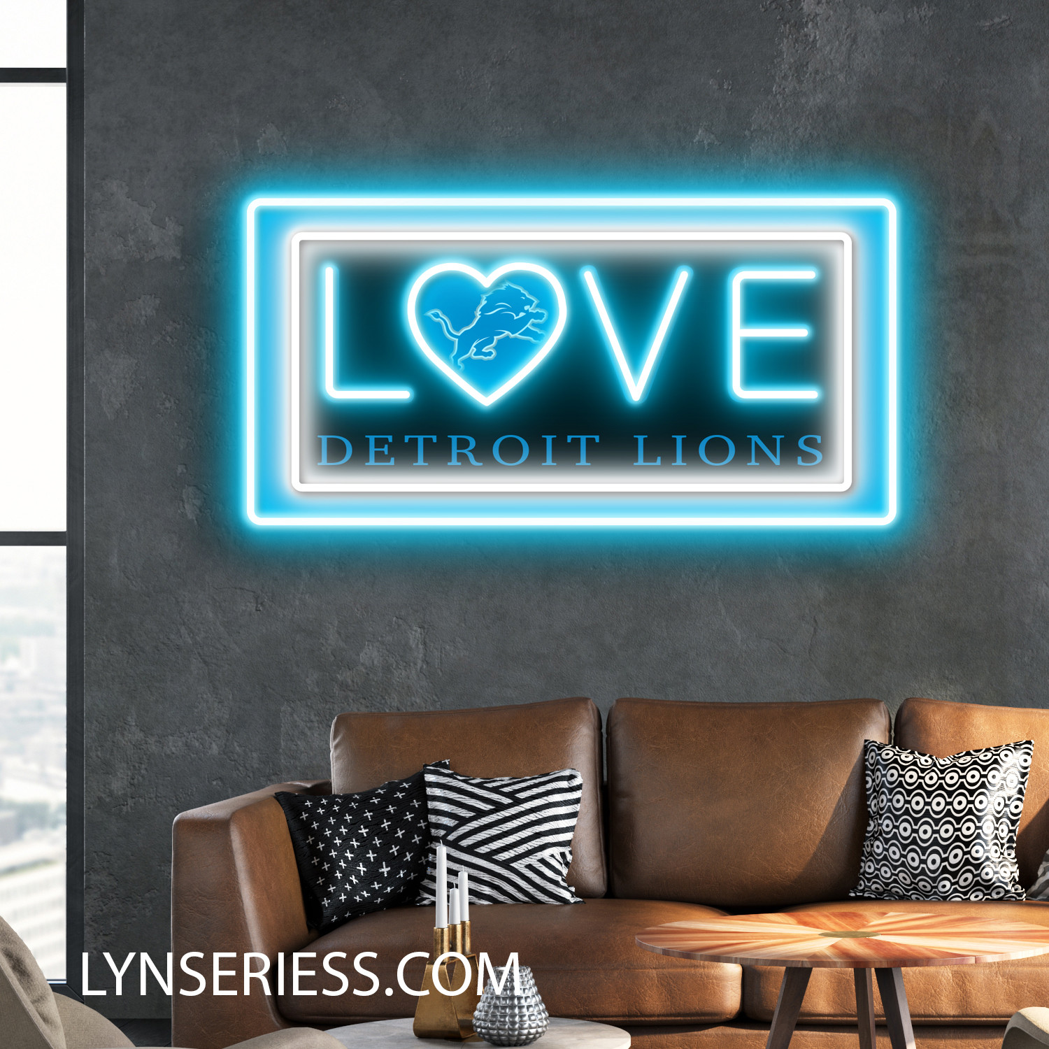 Love Detroit Lions Sign Neon LED Sign NFL Acrylic Artwork Wall Art Home Decor