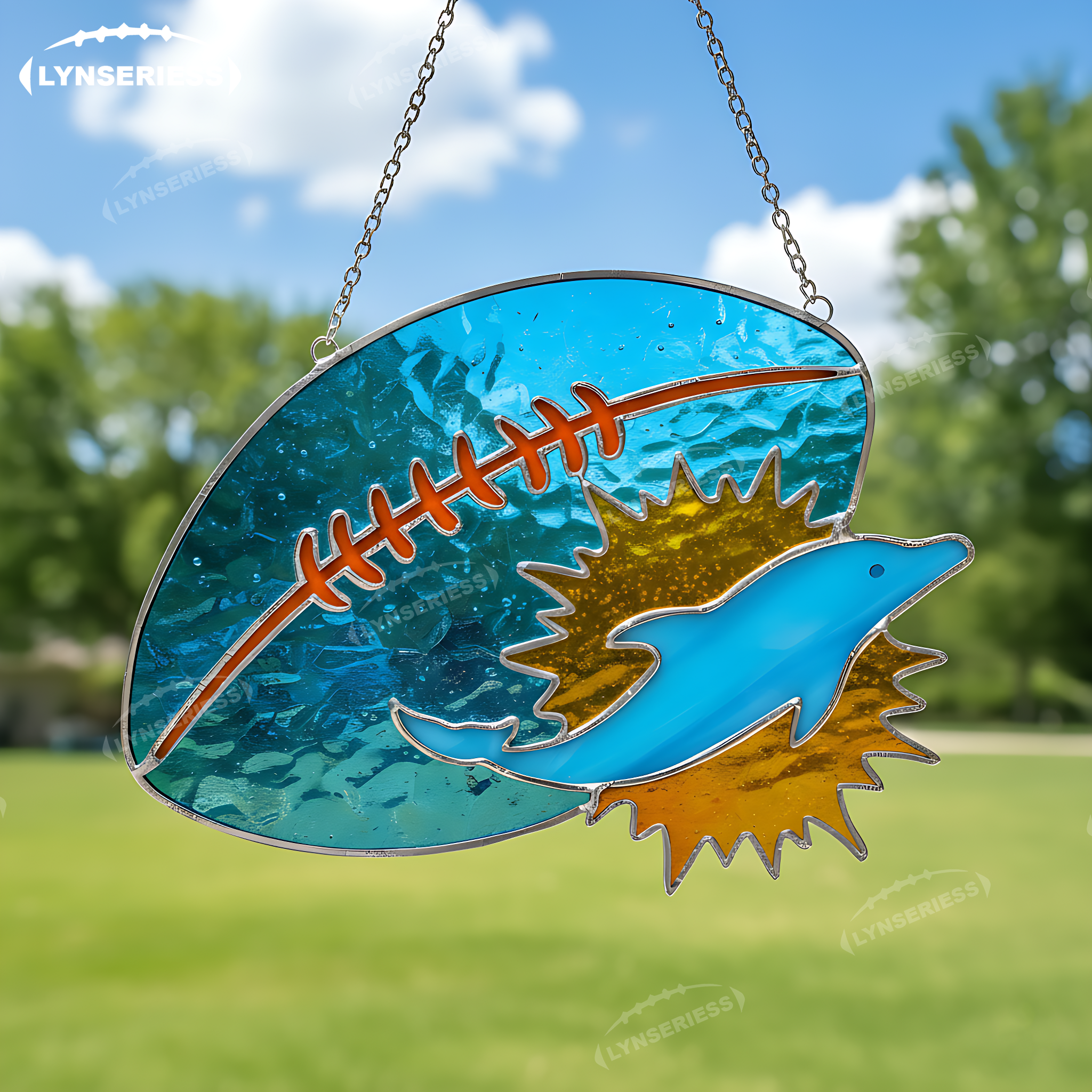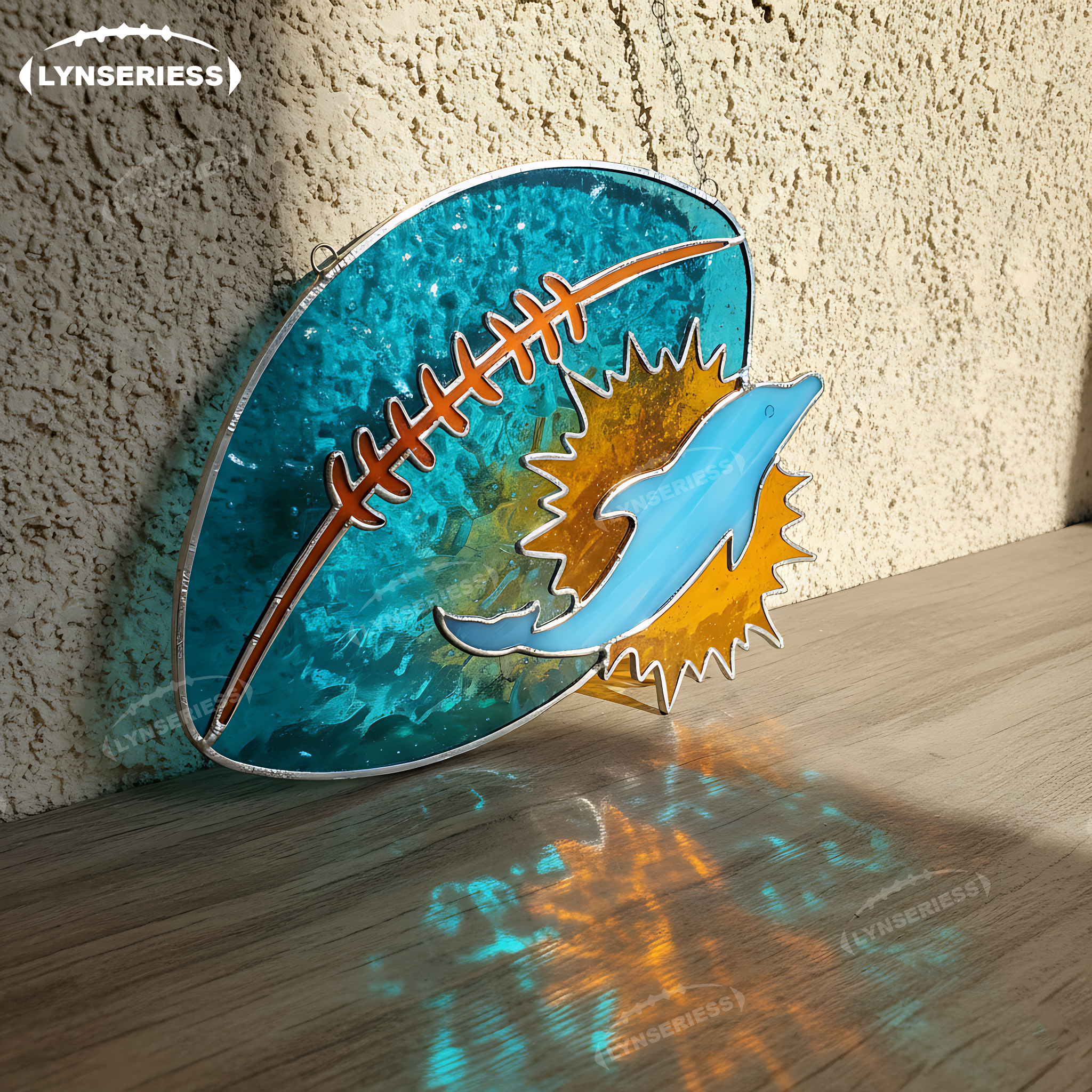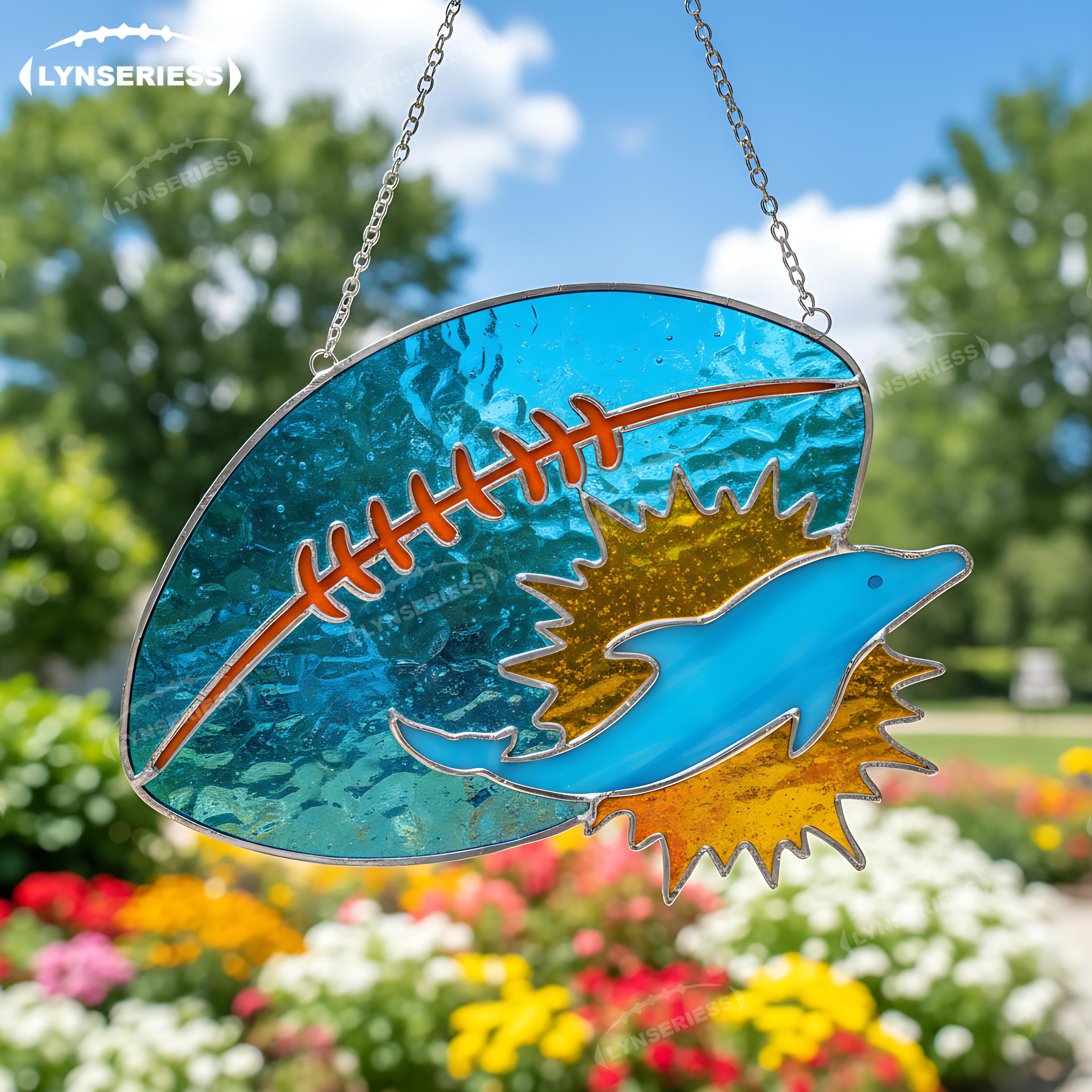Miami Dolphins Logo Rugby Football Handcrafted Stained Glass Fan Cave Decor NFL Gift Idea