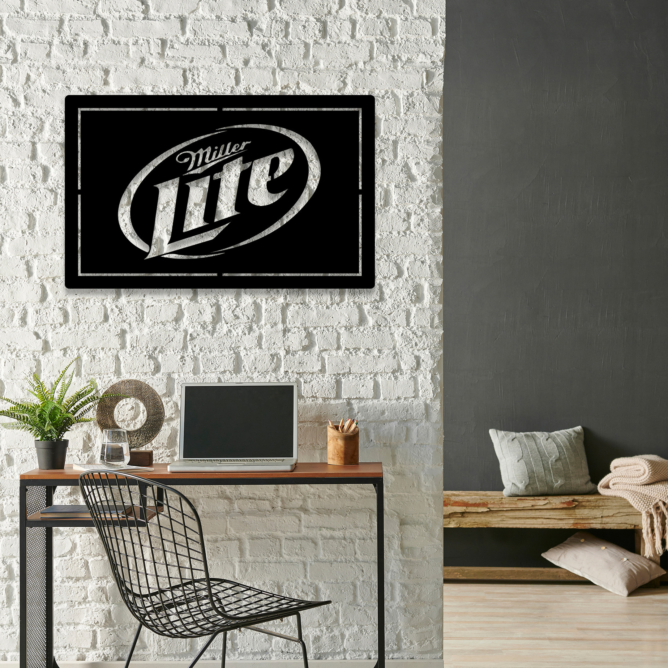 Miller Lite Man Cave Metal Sign LED Light Home Bar Wall Art Decor