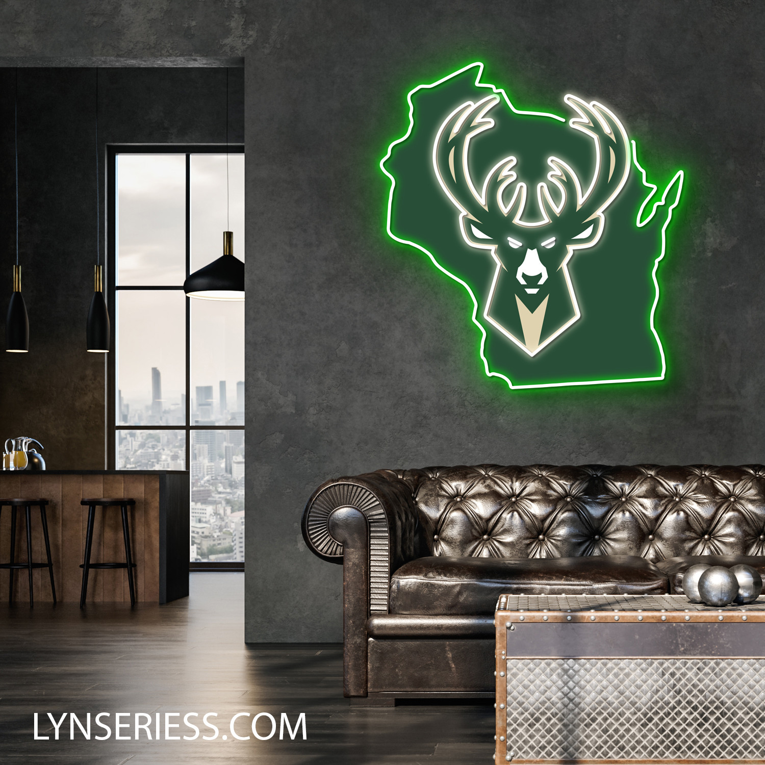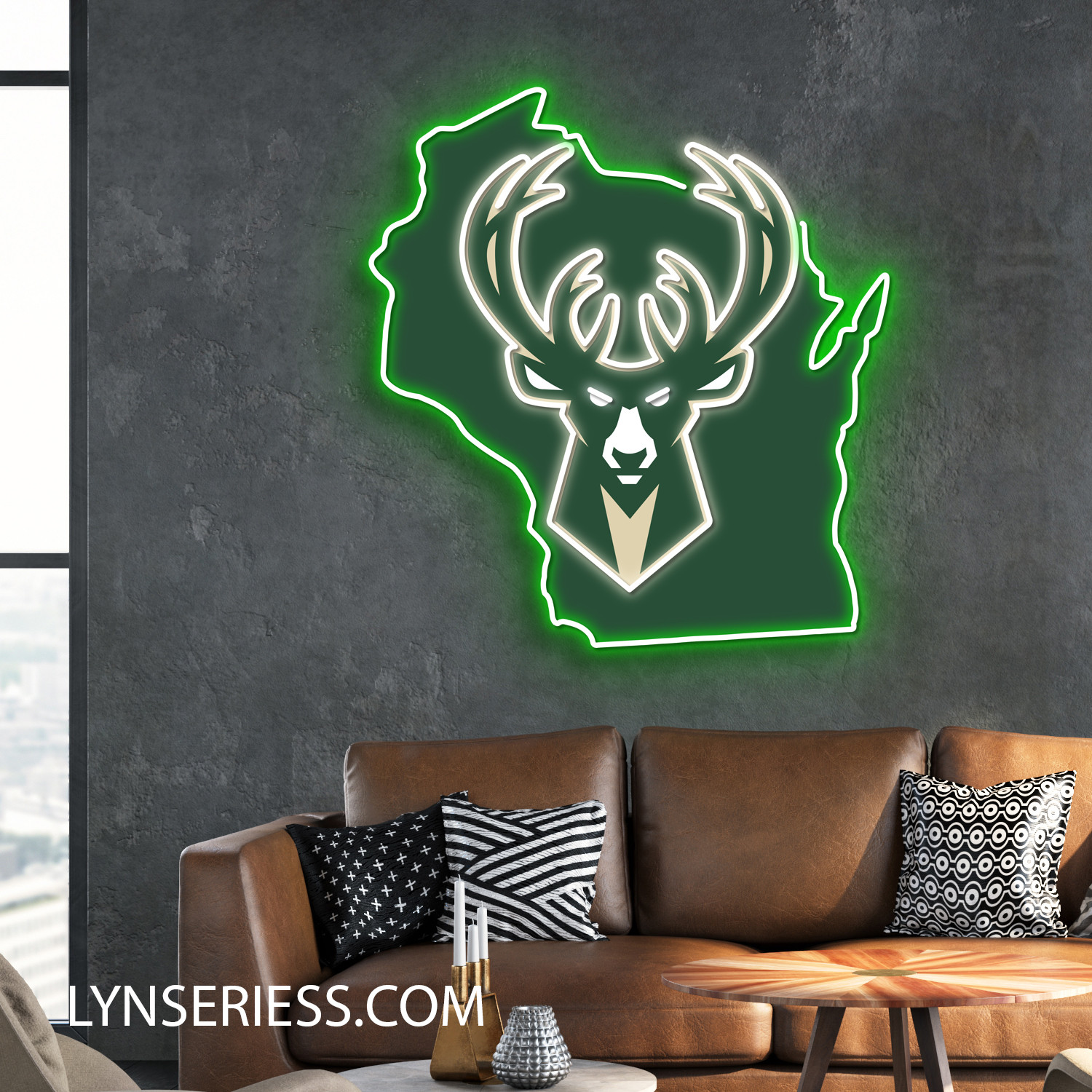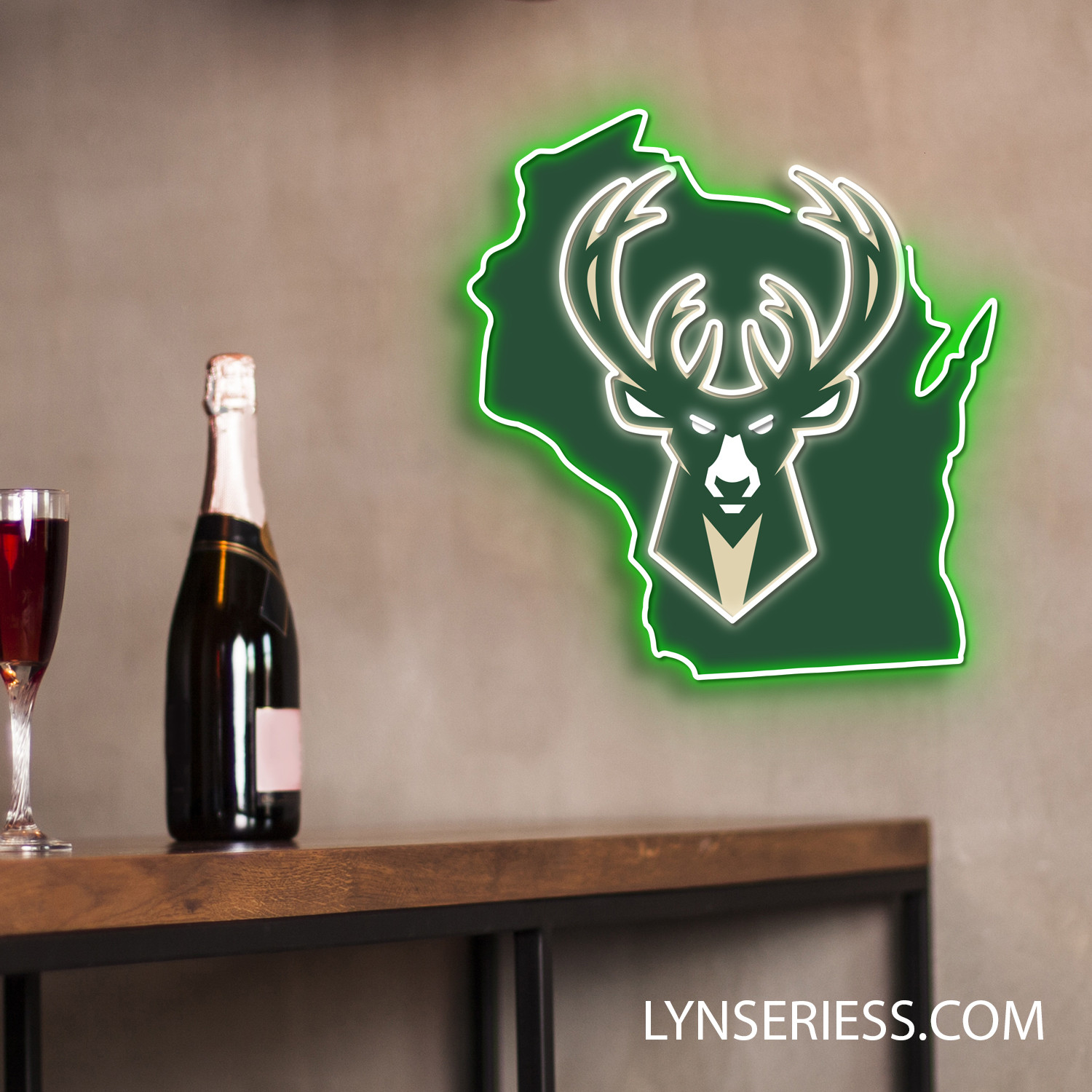 Milwaukee Bucks Wisconsin State Map Neon LED Sign NBA Acrylic Artwork Wall Art Home Decor