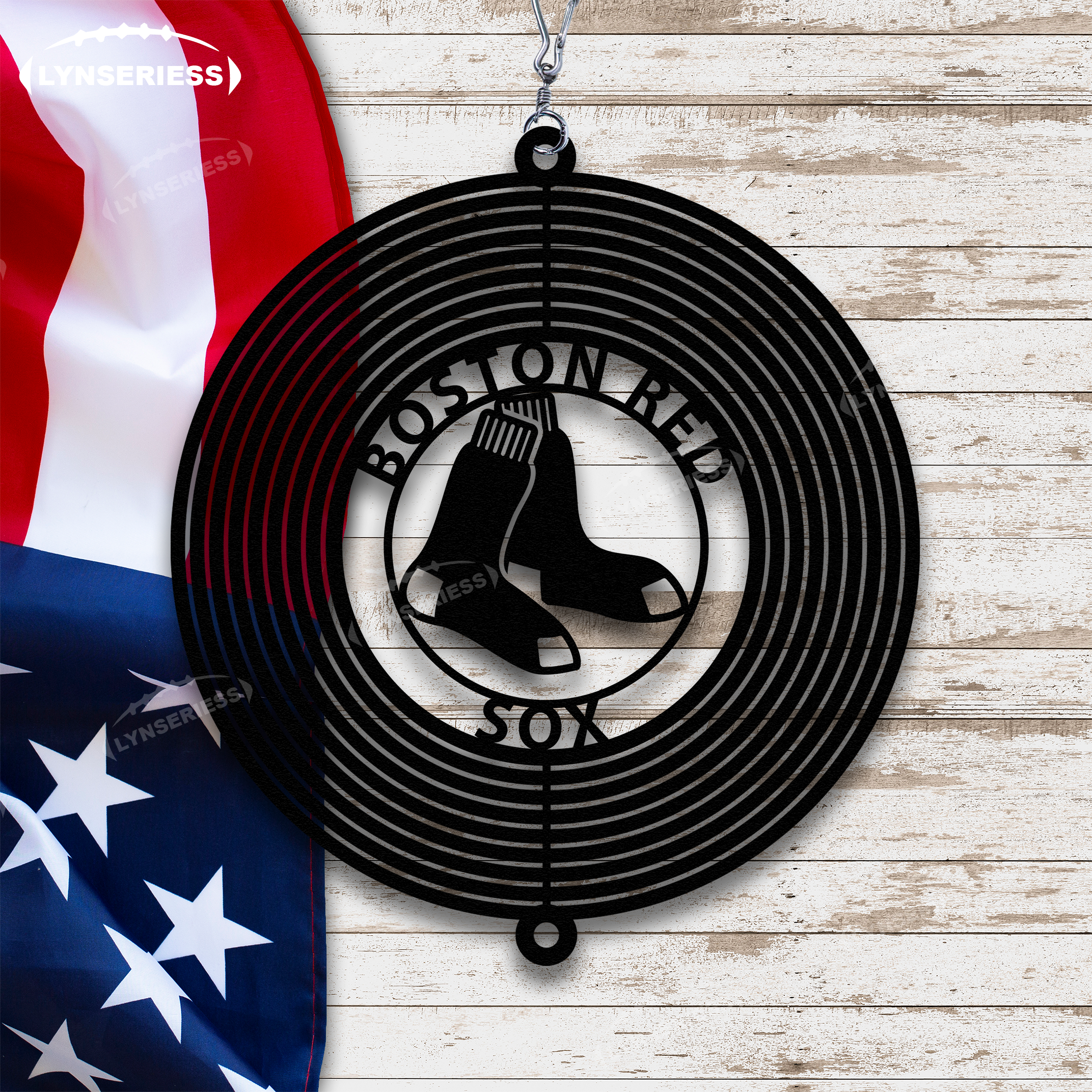 MLB Boston Red Sox Artwork Black Or Natural Rust Wind Spinner Outdoor Decor