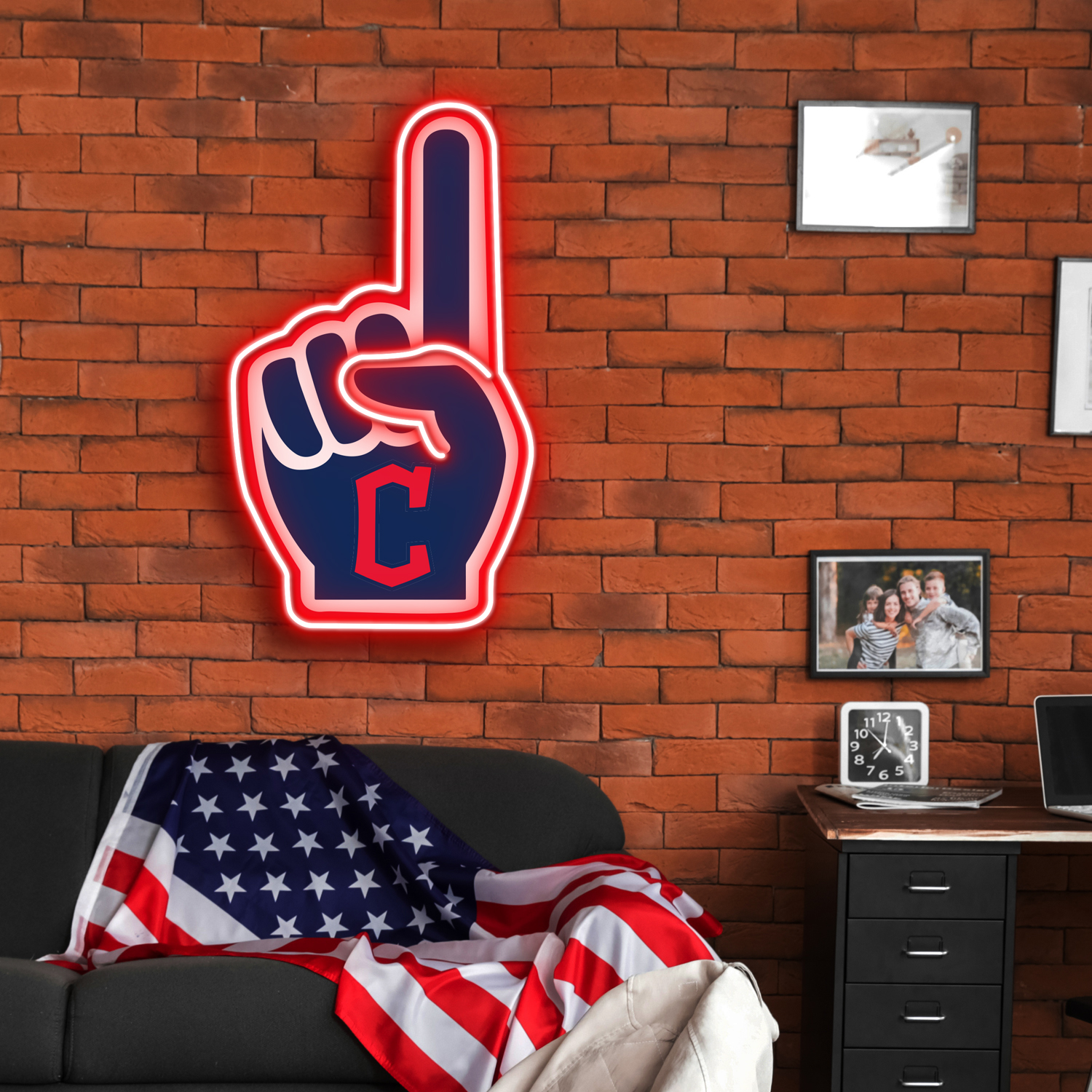 MLB Cleveland Guardians Foam Finger Neon LED Sign #1 Baseball Acrylic Home Decor