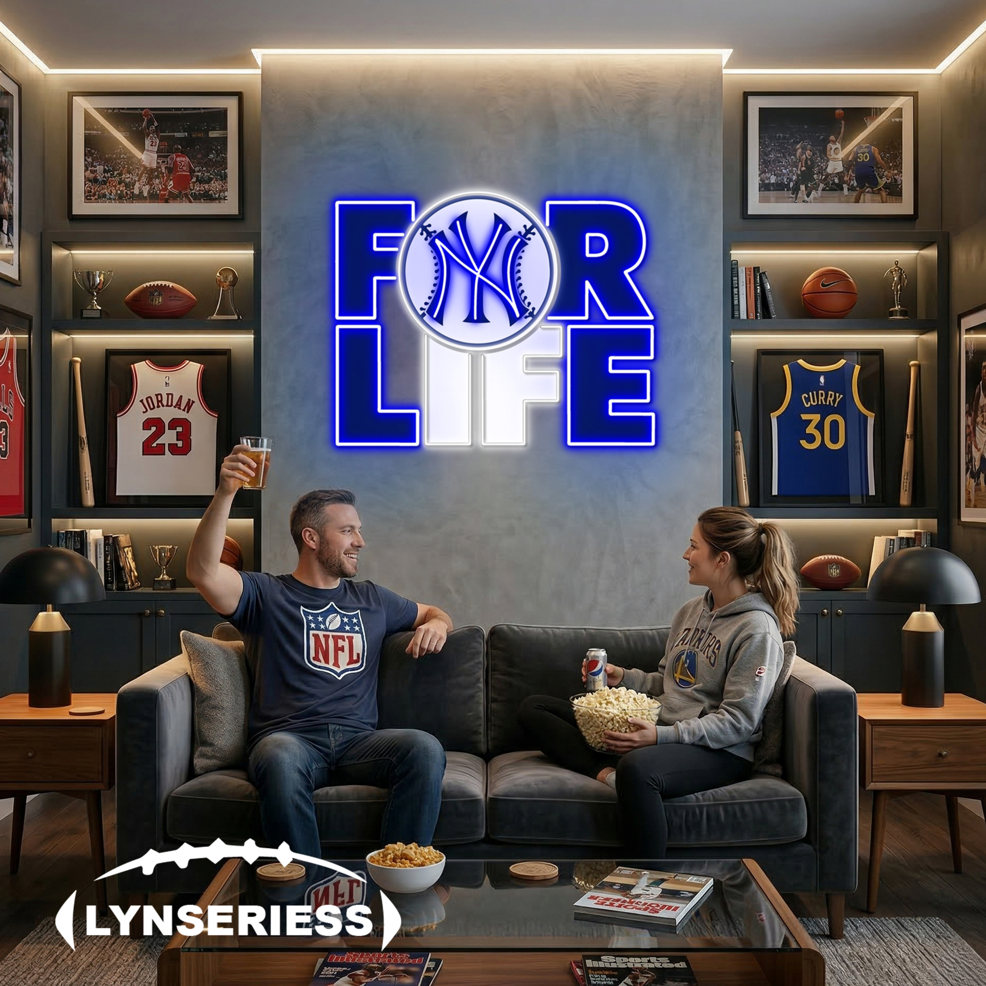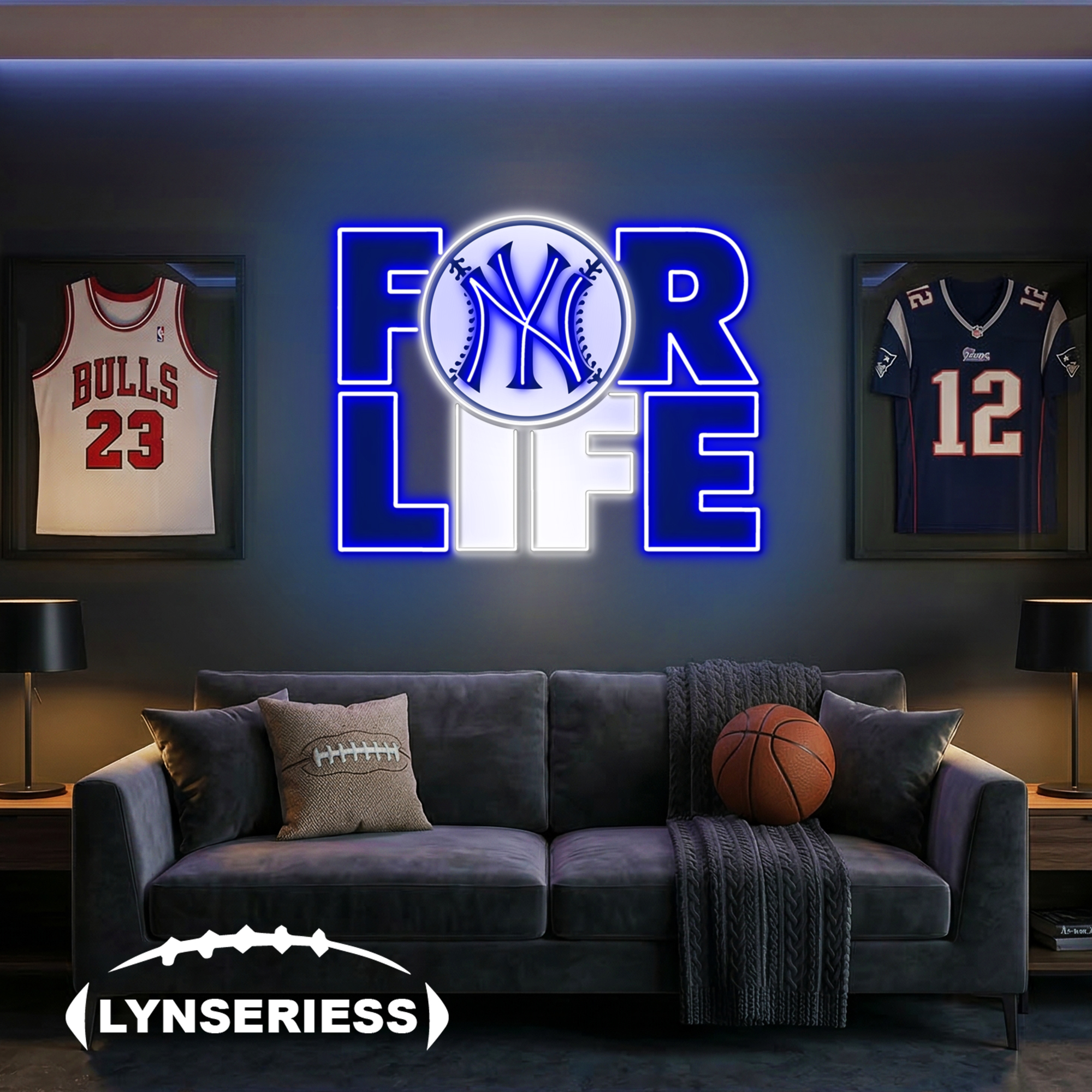 MLB New York Yankees For Life Acrylic Neon LED Sign Man Cave Decor Fan Gift Idea