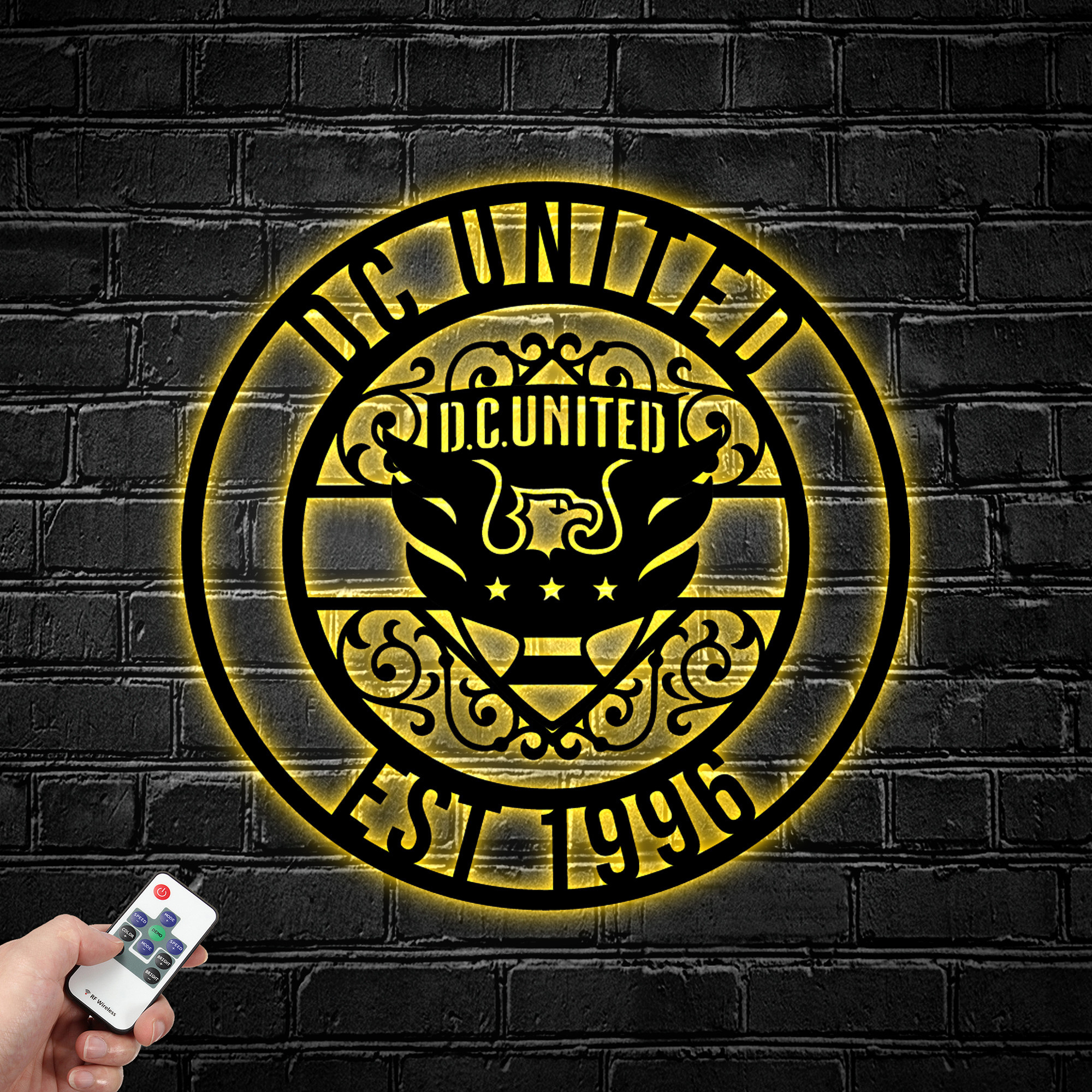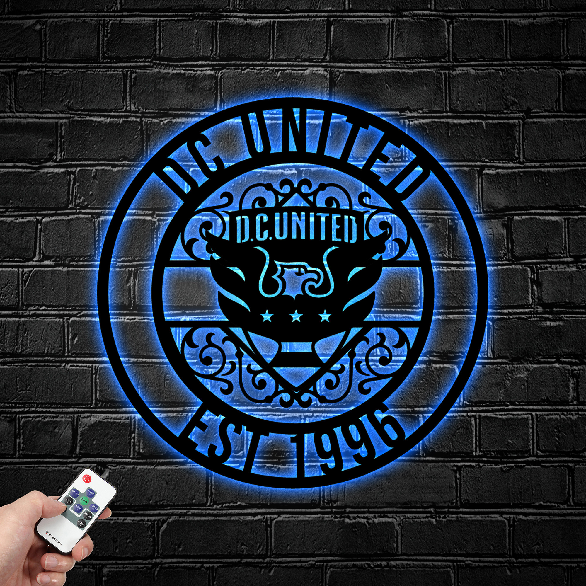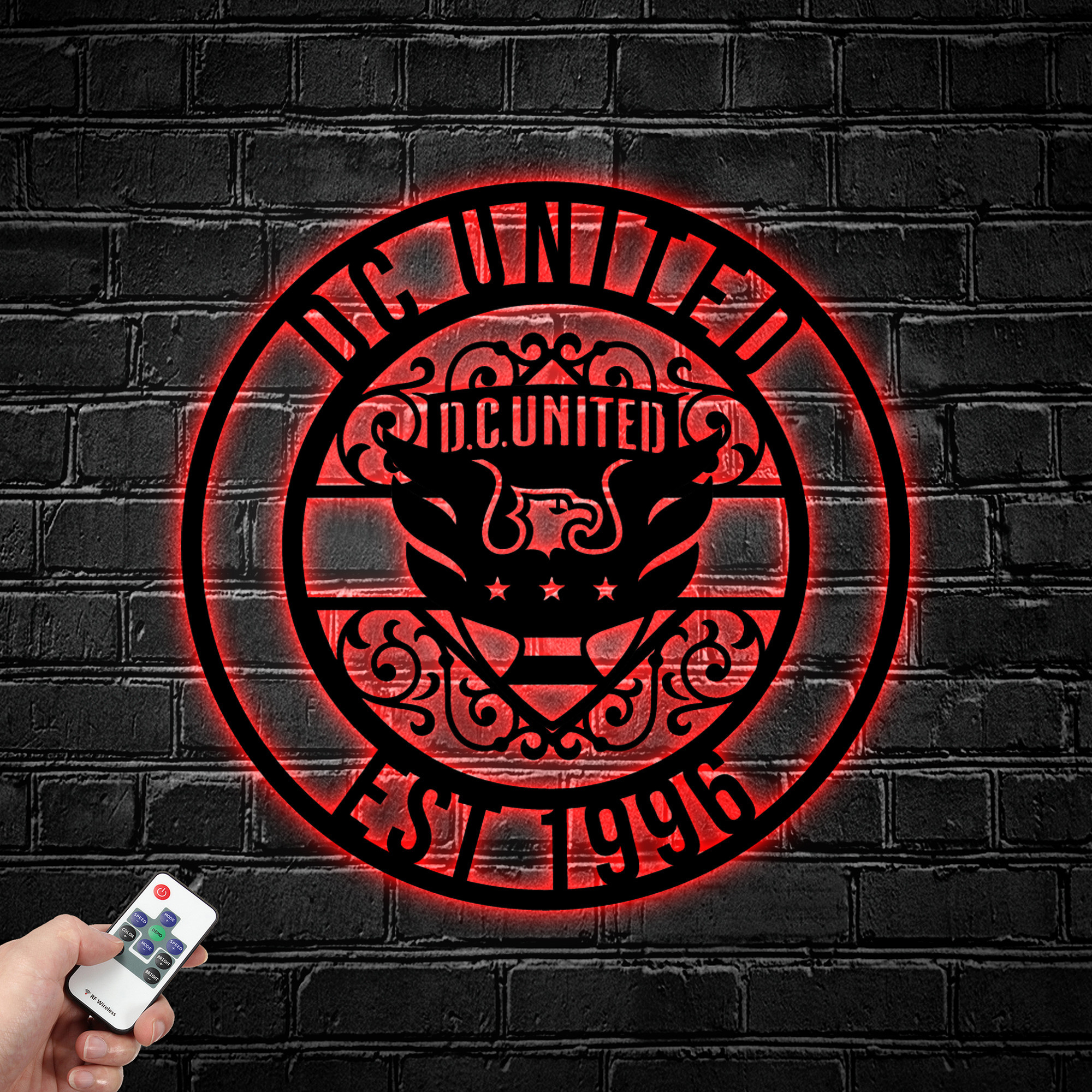 MLS DC United FC Metal Sign LED Light Soccer Monogram Wall Art Home Decor