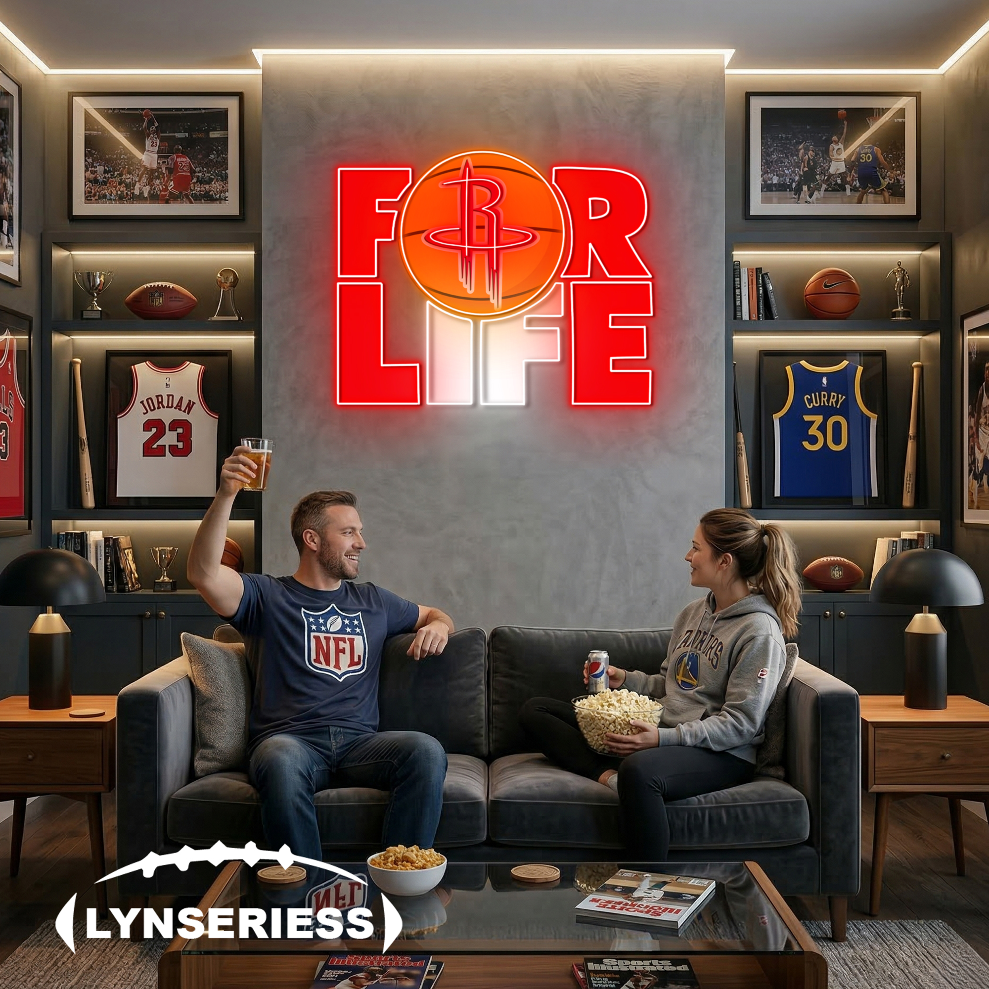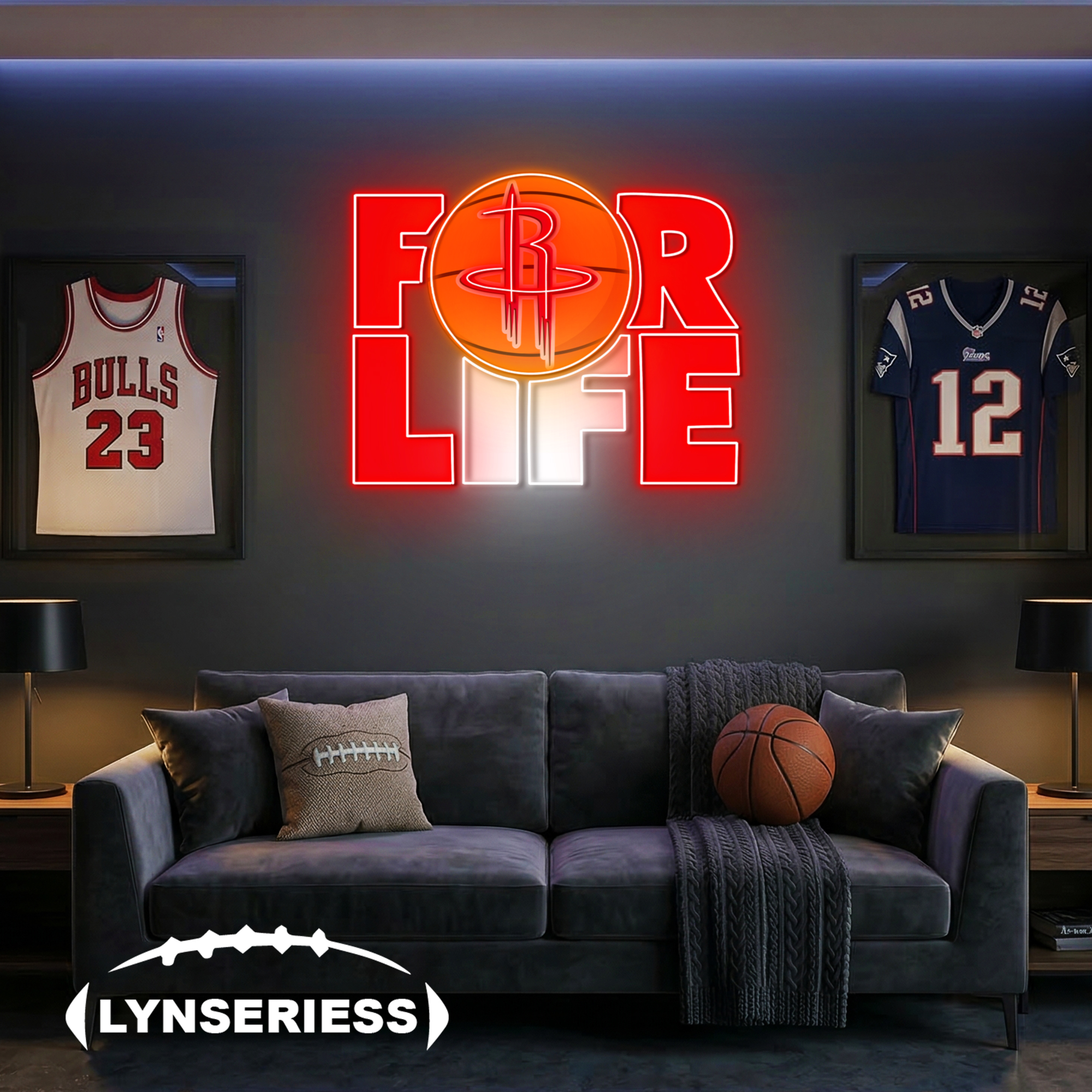 NBA Houston Rockets For Life Acrylic Neon LED Sign Man Cave Decor Fan Gift Idea