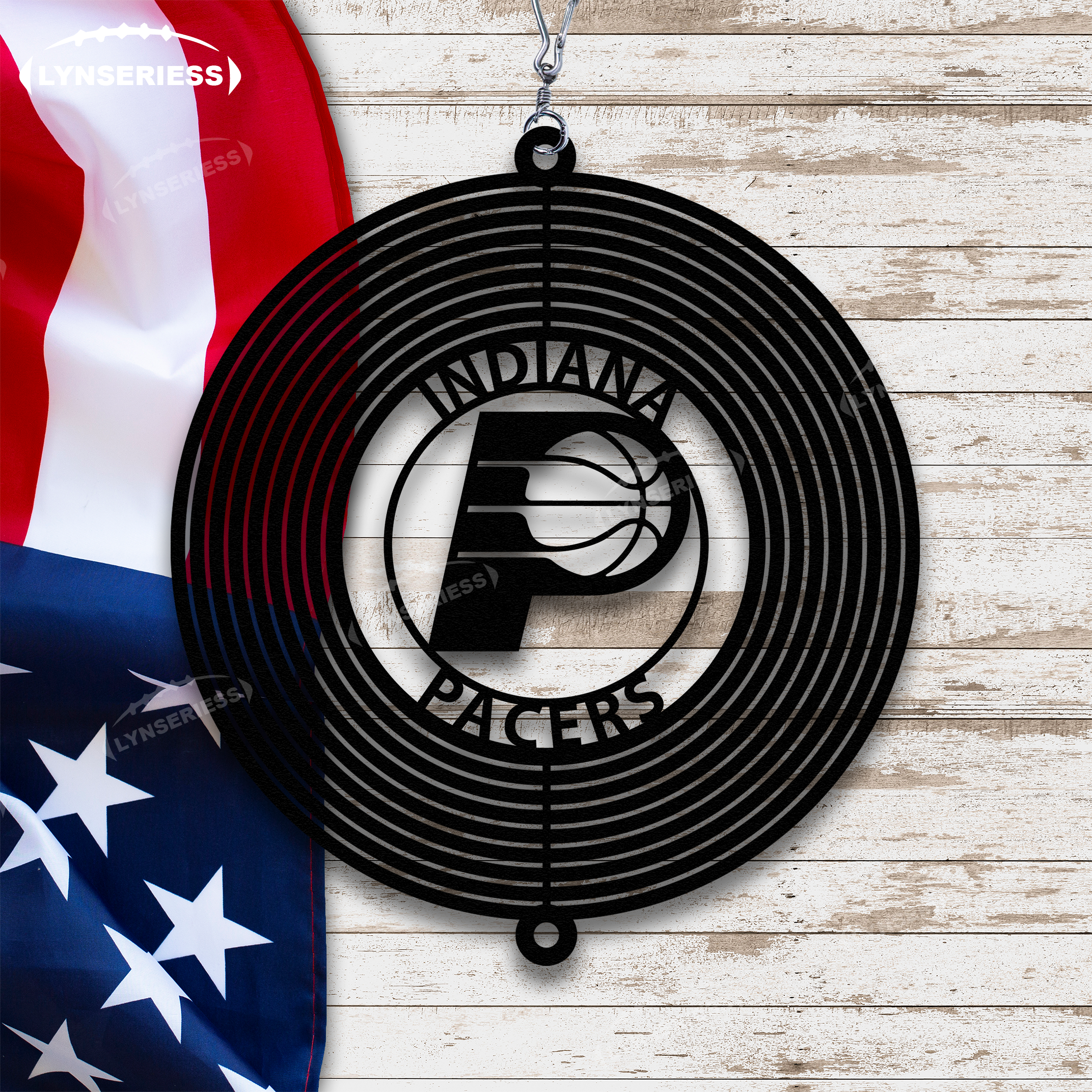 NBA Indiana Pacers Artwork Black Or Natural Rust Wind Spinner Outdoor Decor