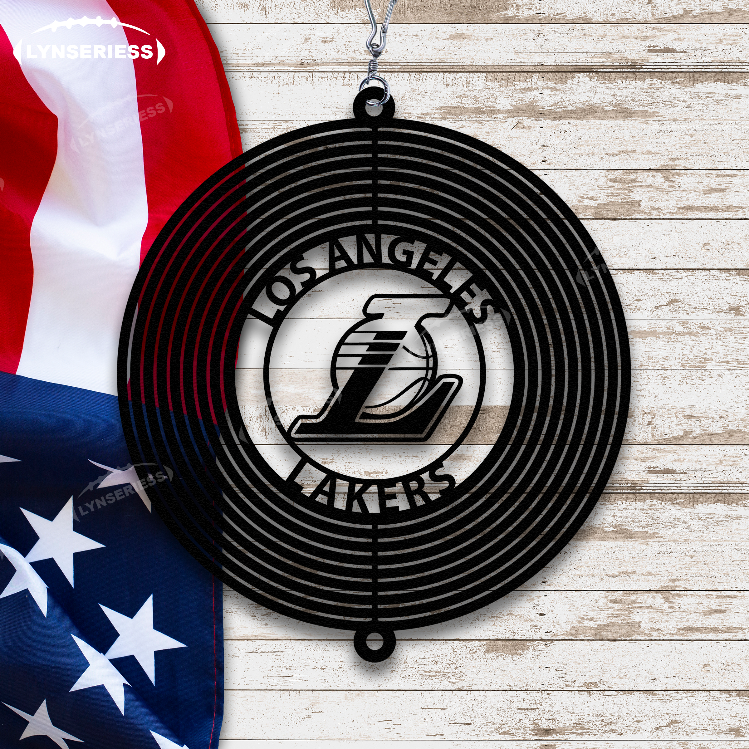 NBA Los Angeles Lakers Artwork Black Or Natural Rust Wind Spinner Outdoor Decor