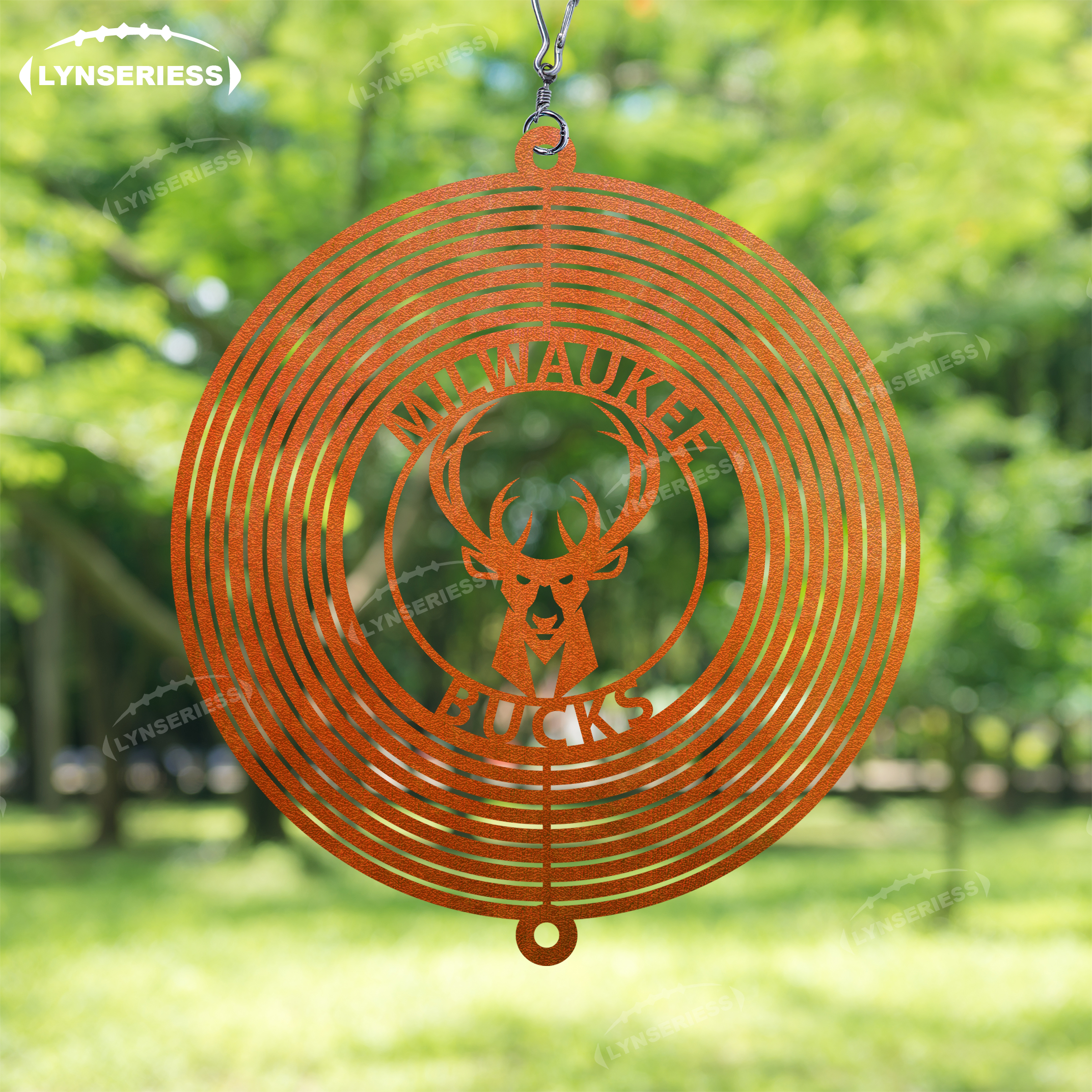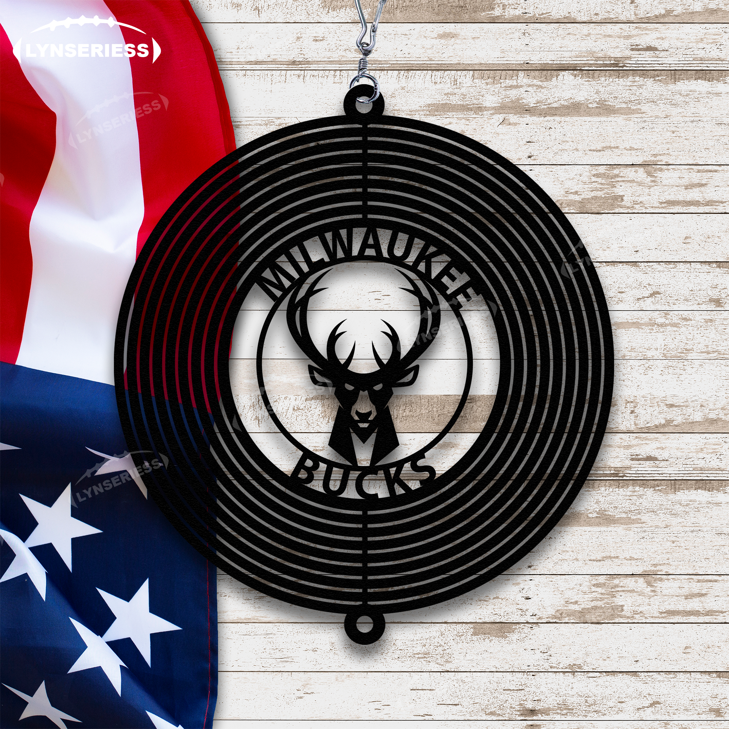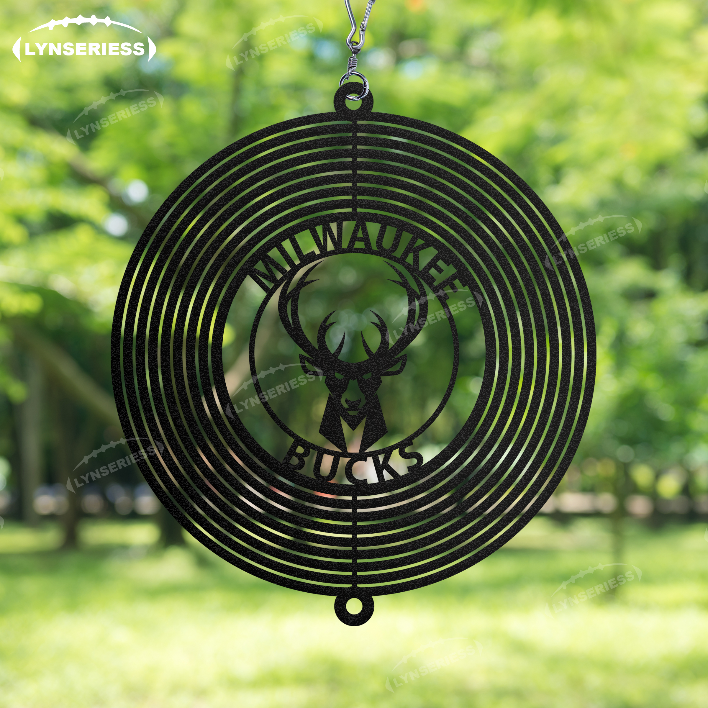NBA Milwaukee Bucks Artwork Black Or Natural Rust Wind Spinner Outdoor Decor
