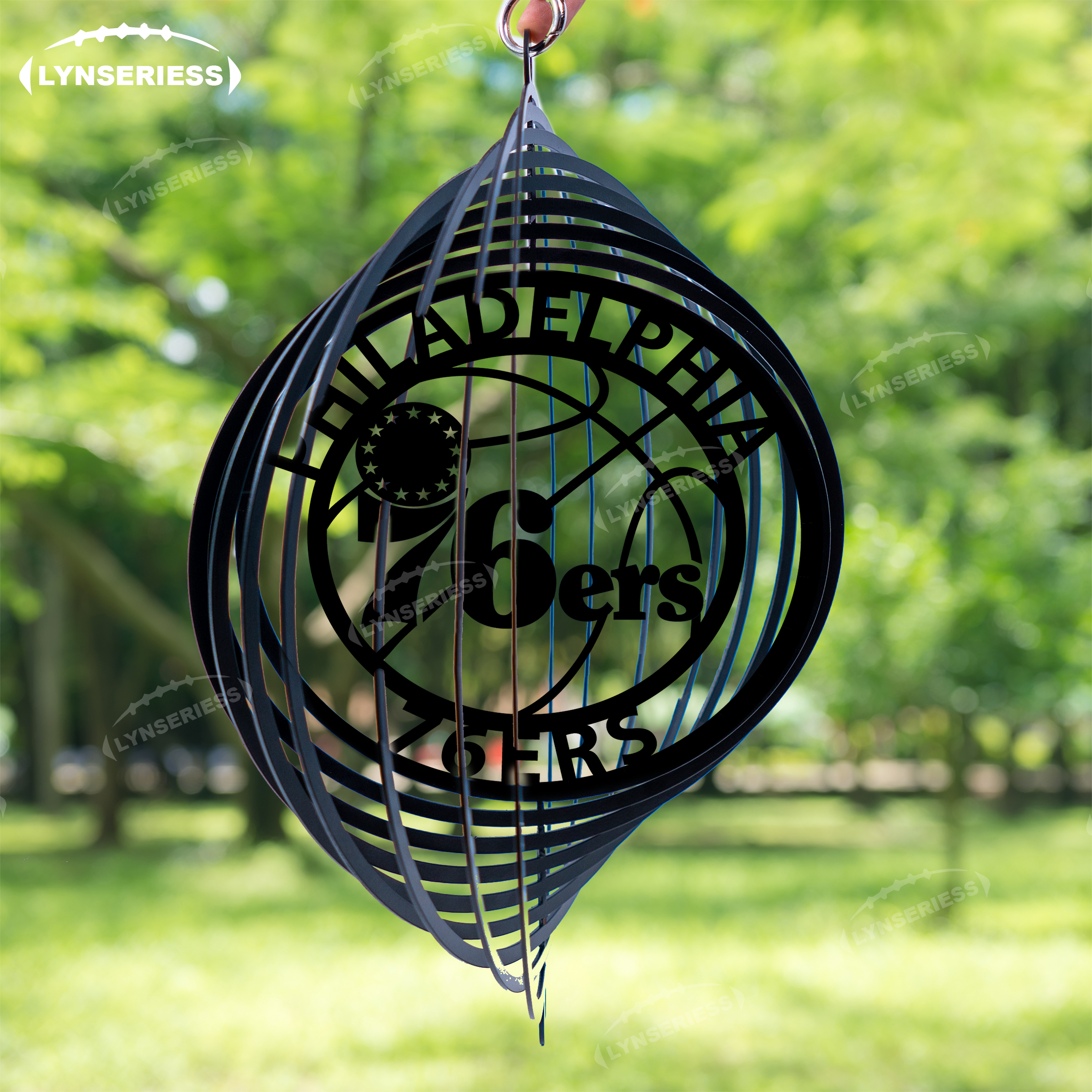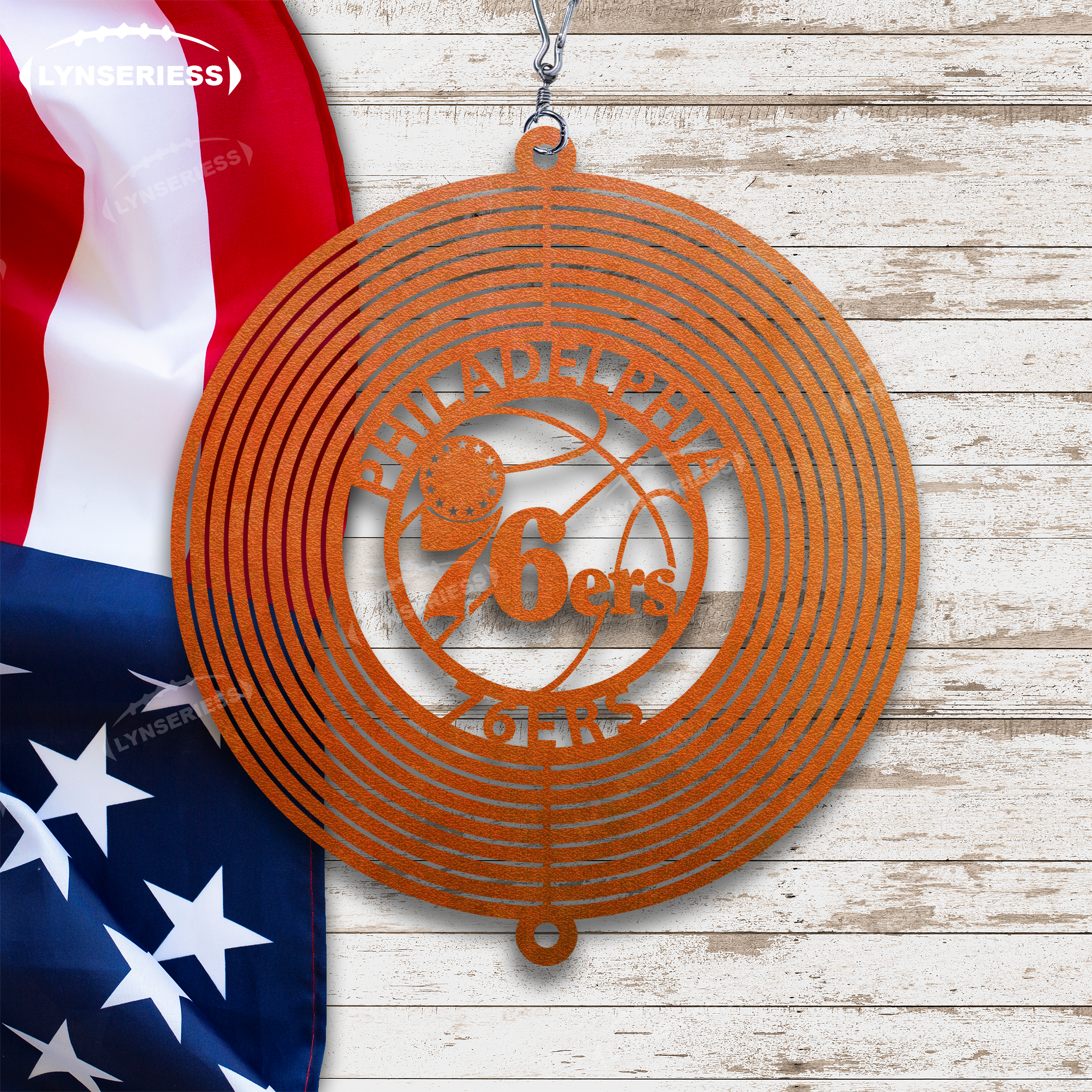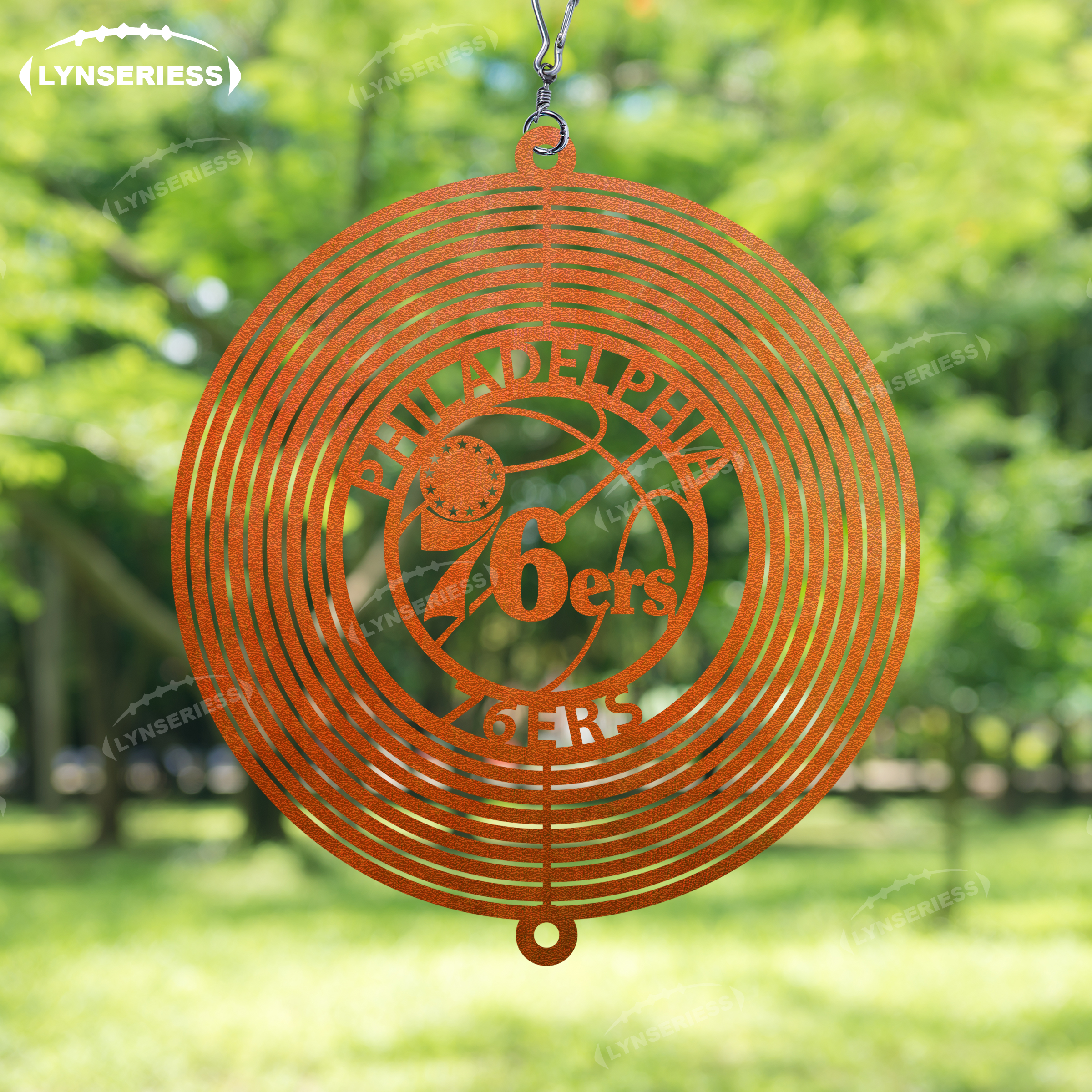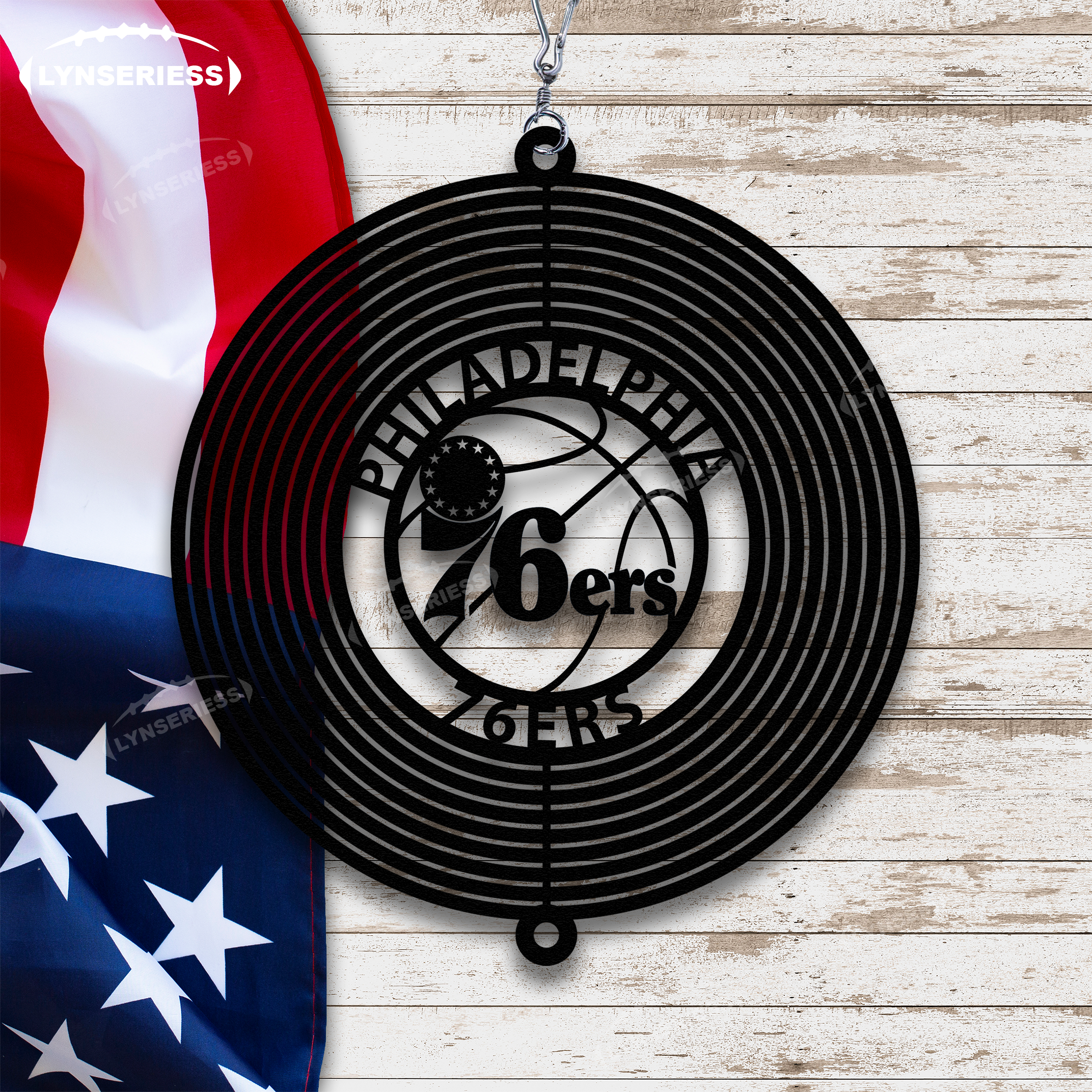 NBA Philadelphia 76ers Artwork Black Or Natural Rust Wind Spinner Outdoor Decor