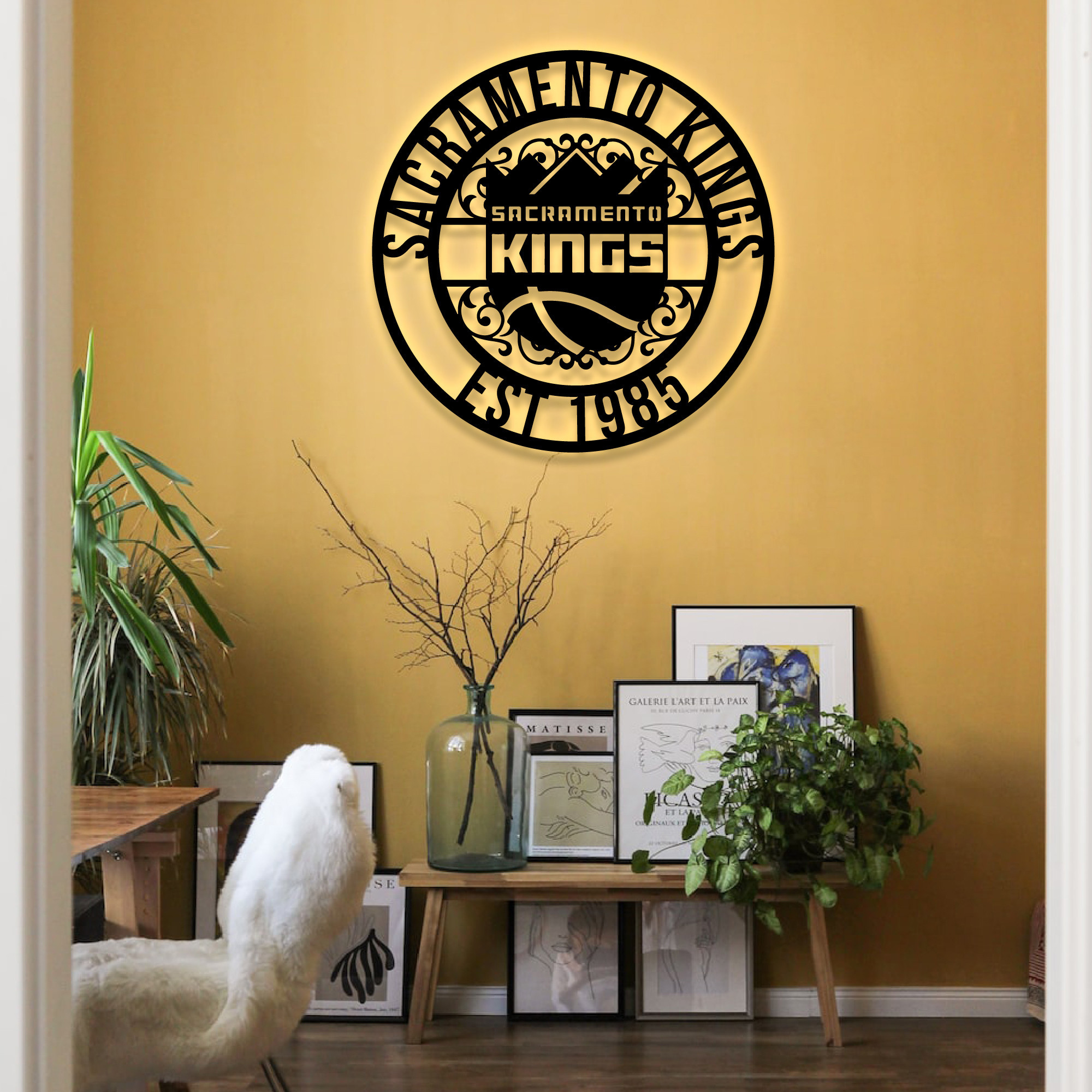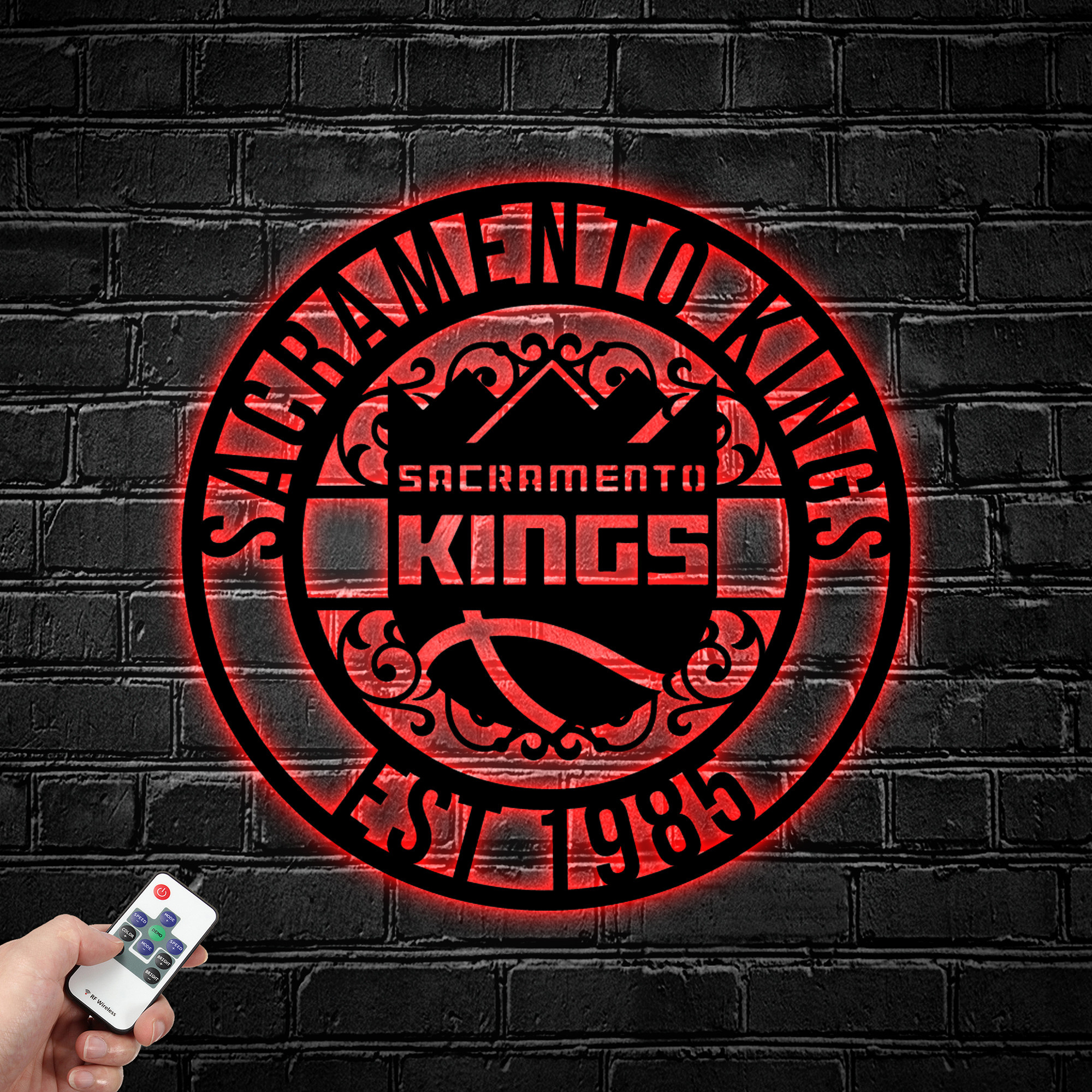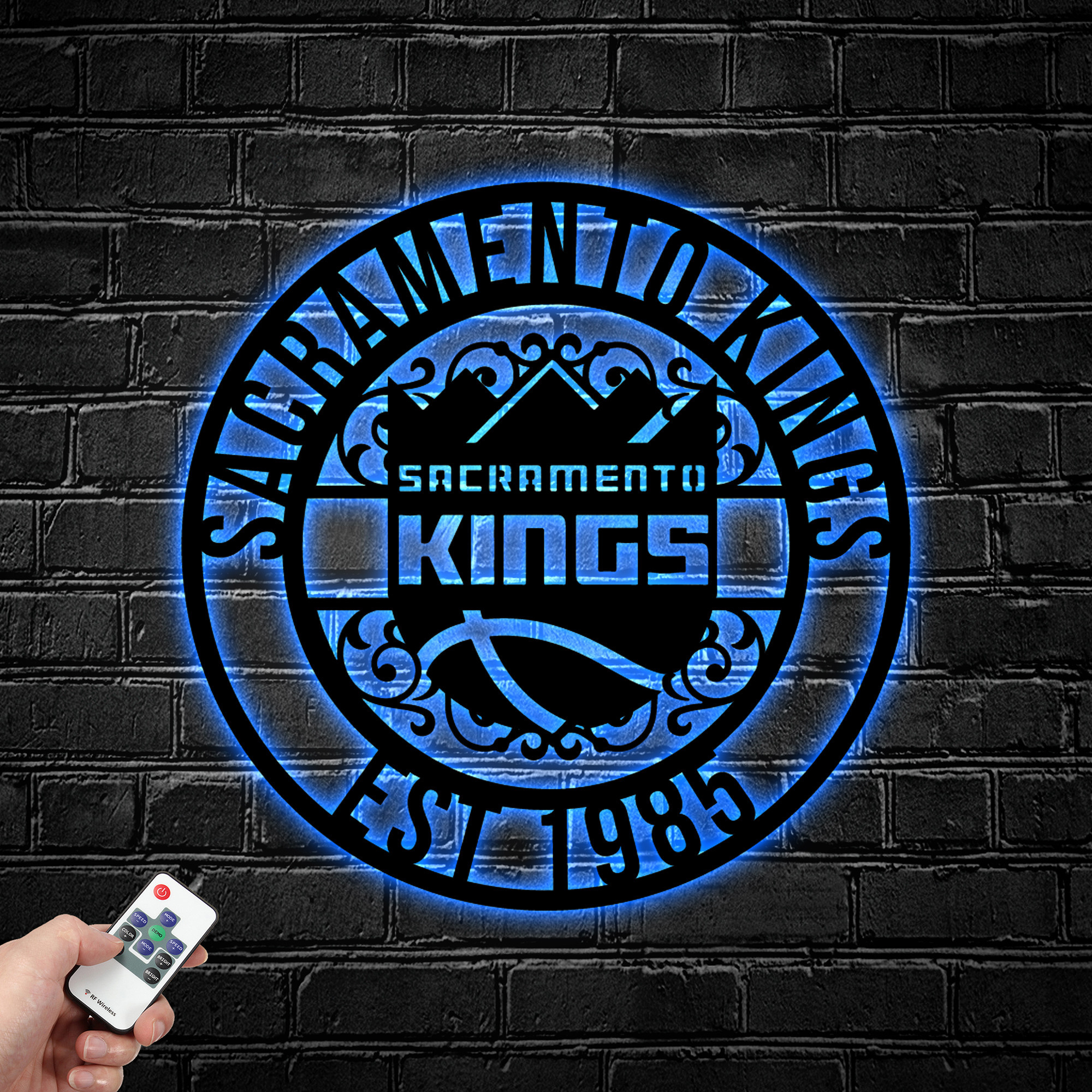 NBA Sacramento Kings Metal Sign LED Light Basketball Monogram Wall Art Home Decor