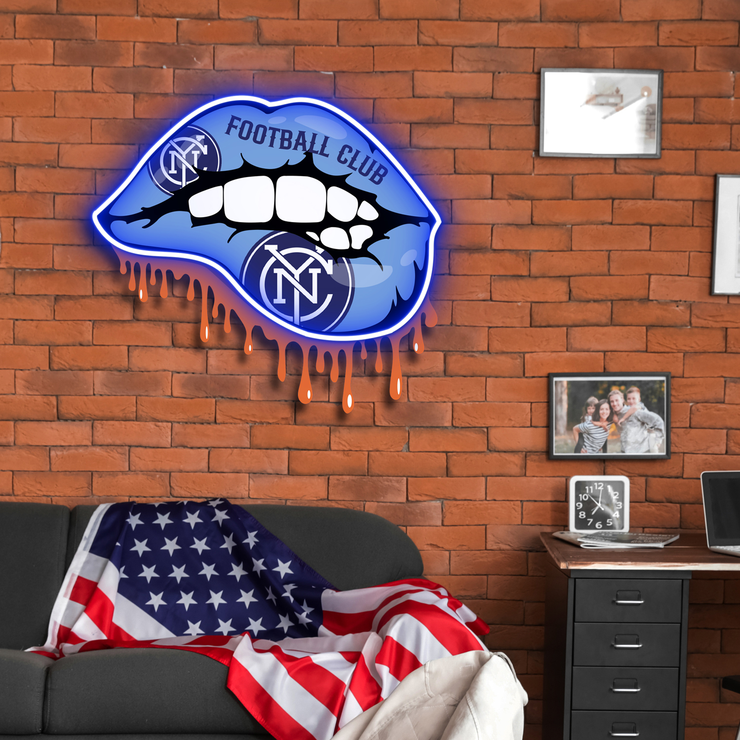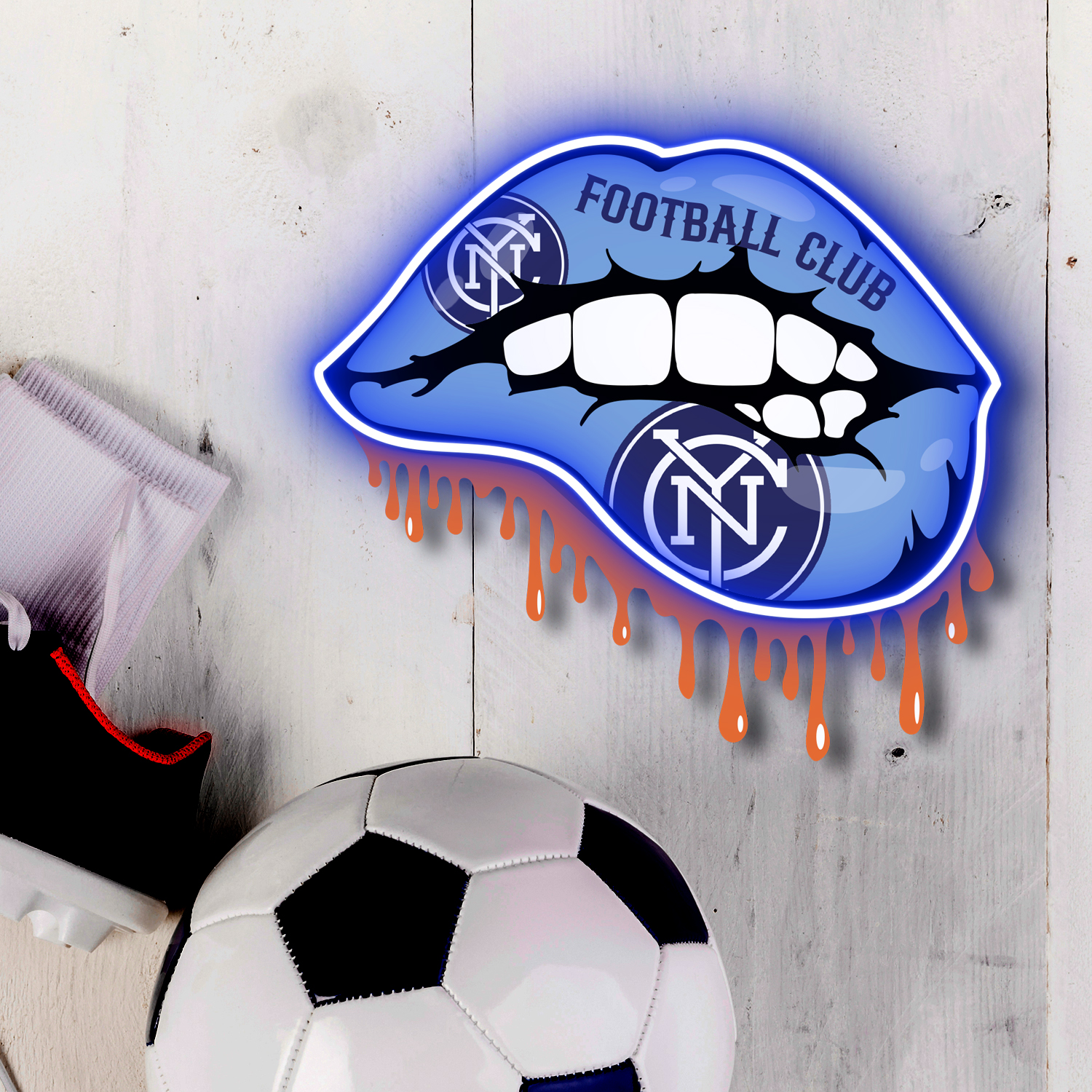 New York City FC Dripping Lips Neon LED Sign MLS Fan Acrylic Artwork Home Decor