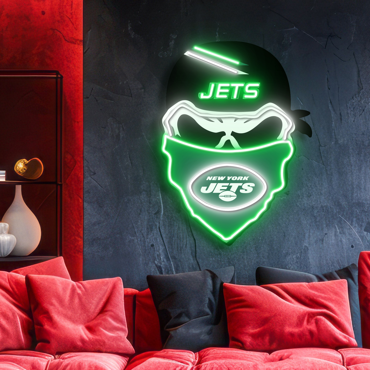 New York Jets Skull Neon LED Sign NFL Acrylic Artwork Home Decor