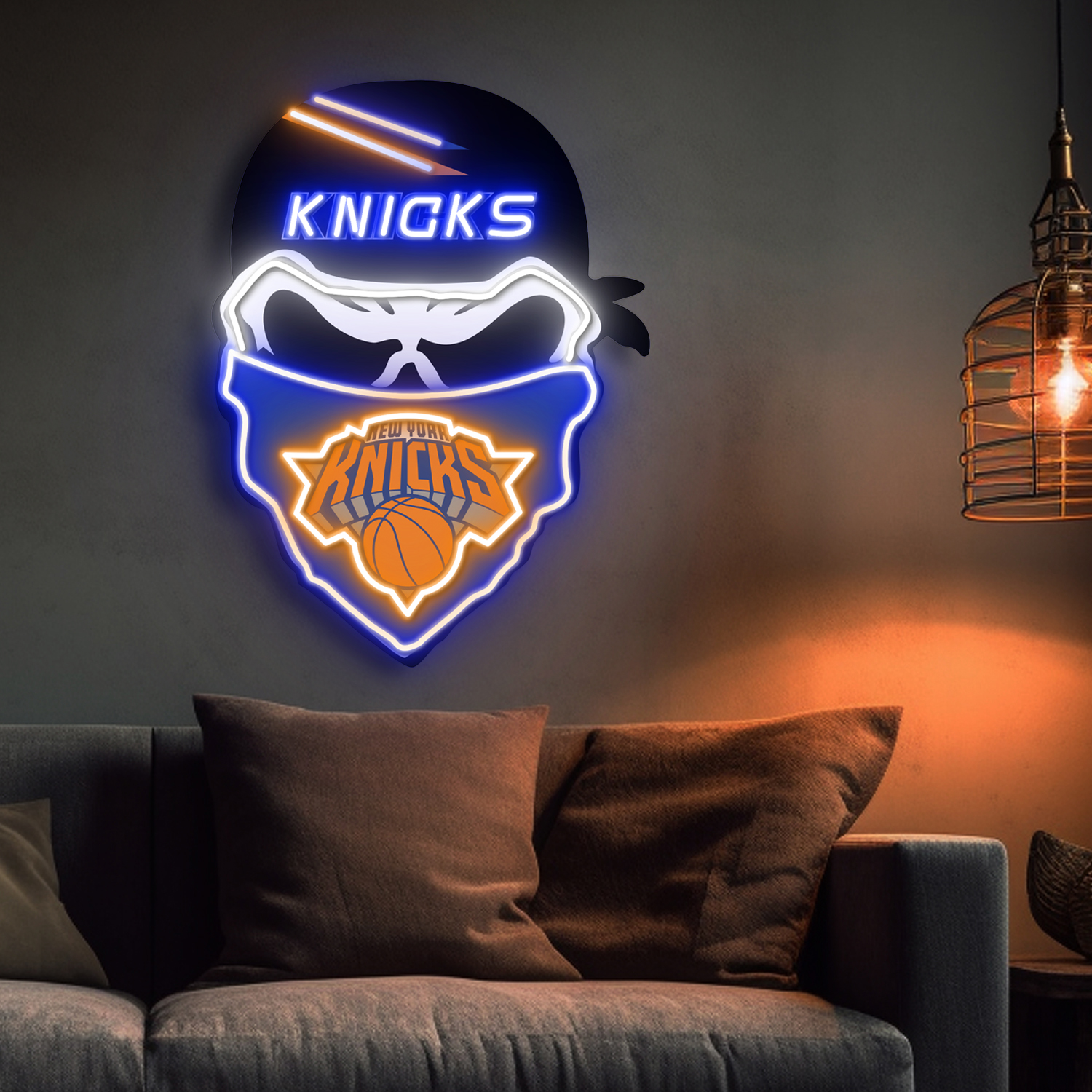 New York Knicks Skull Neon LED Sign NBA Acrylic Artwork Home Decor