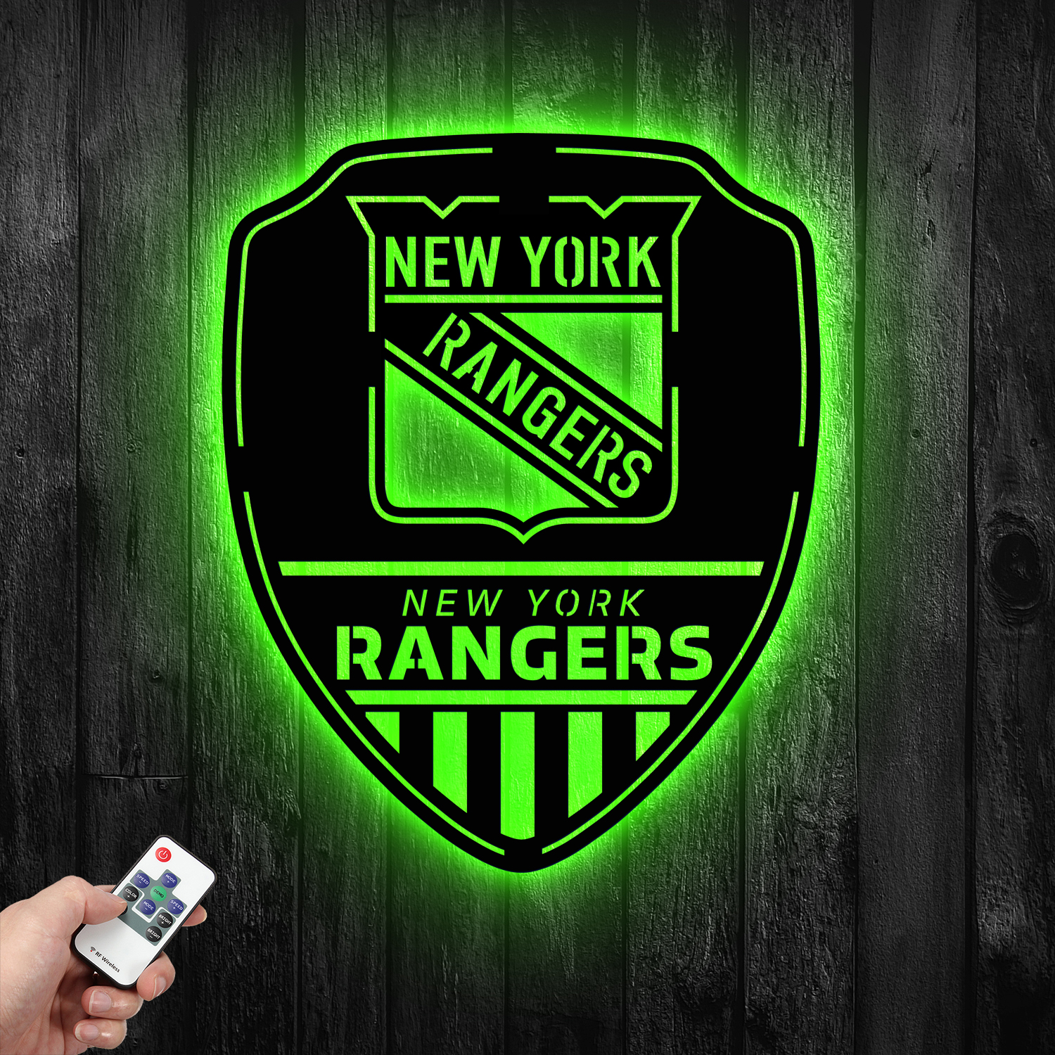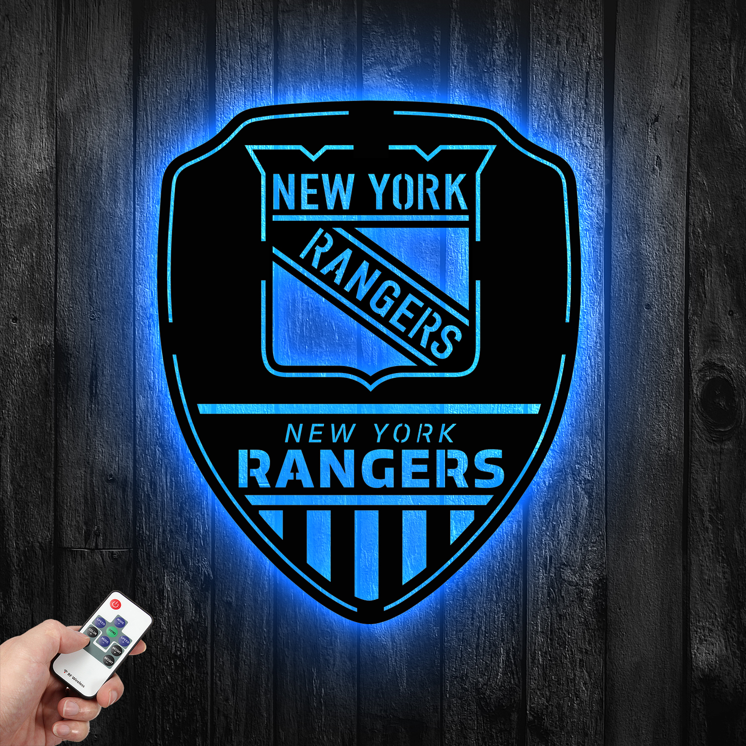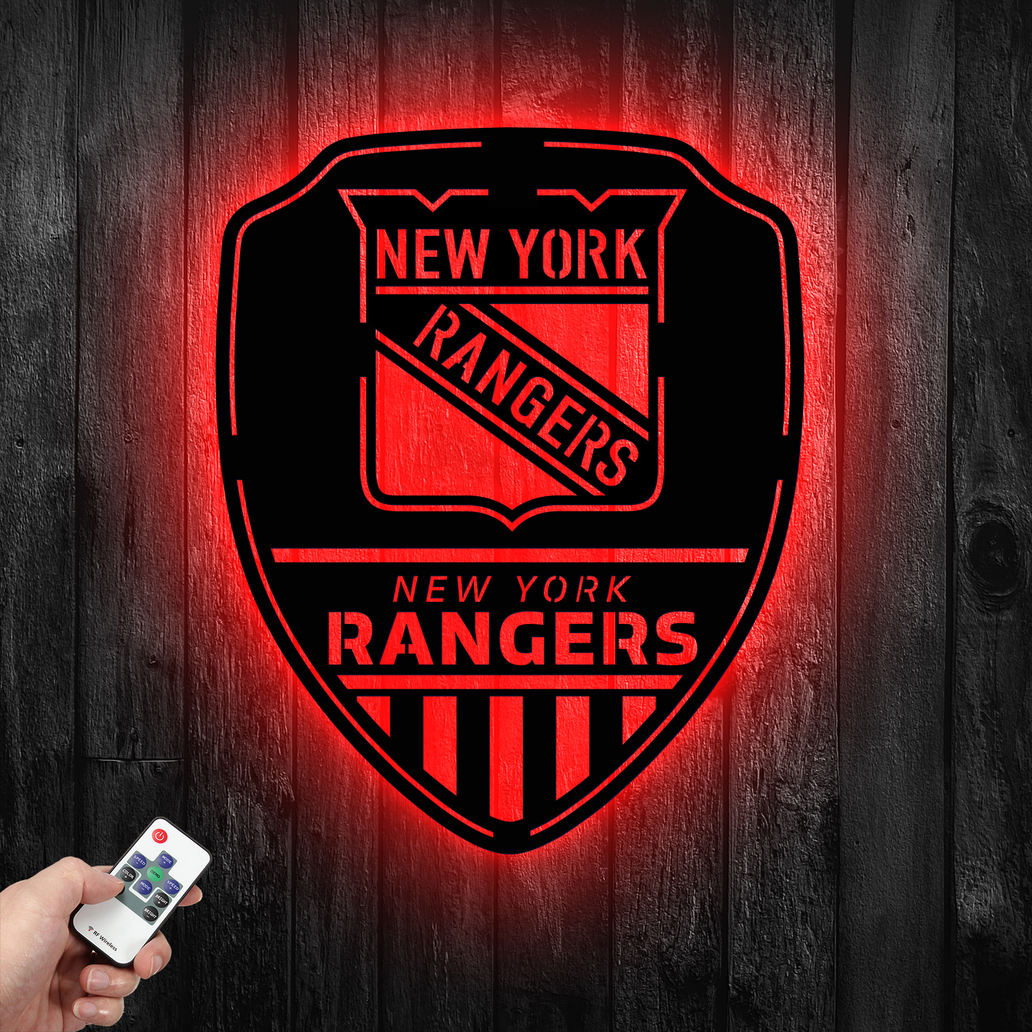 New York Rangers Shield Shape Metal Sign LED Light NHL Fan Wall Art Home Decor