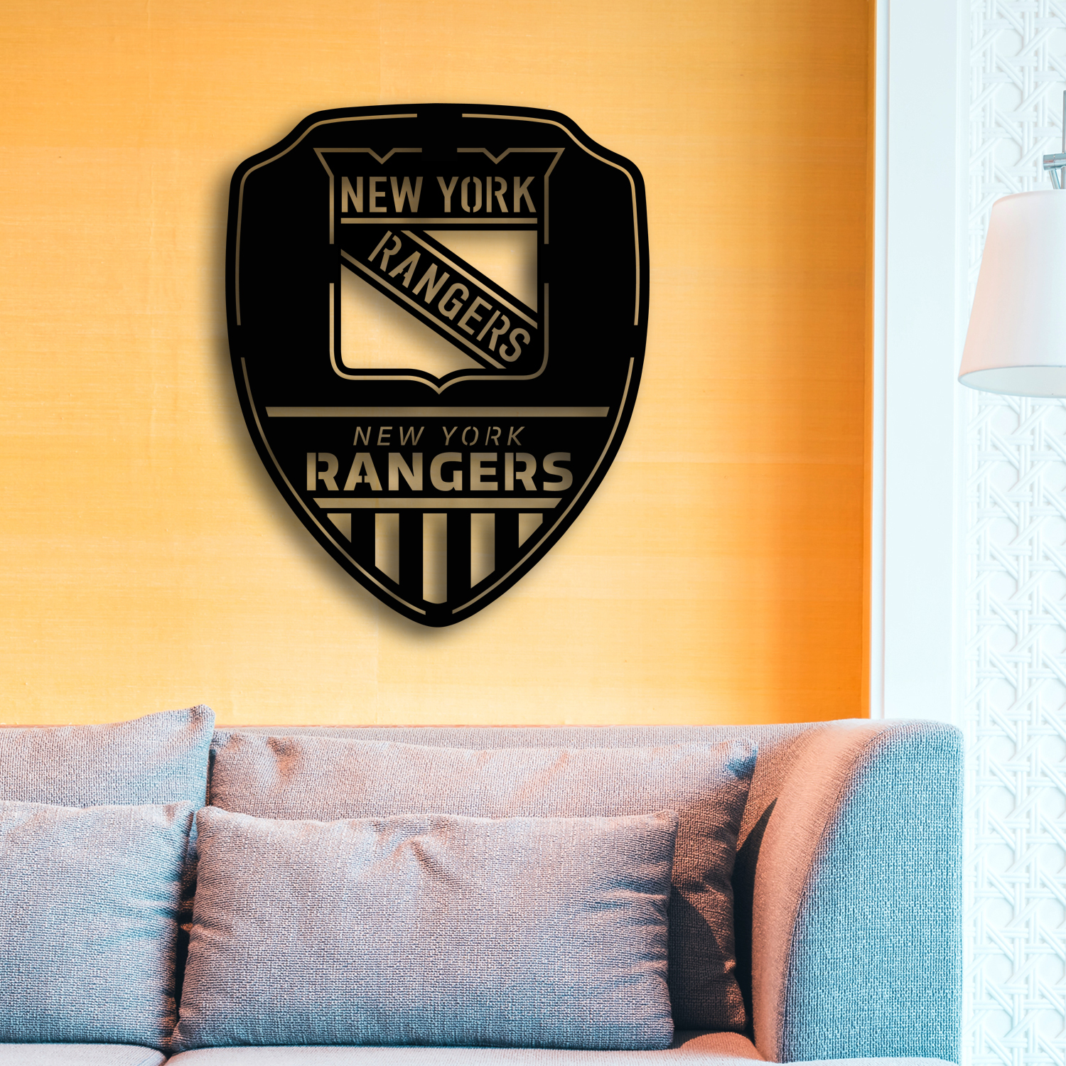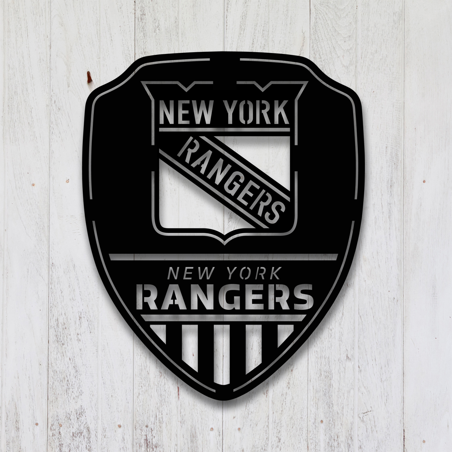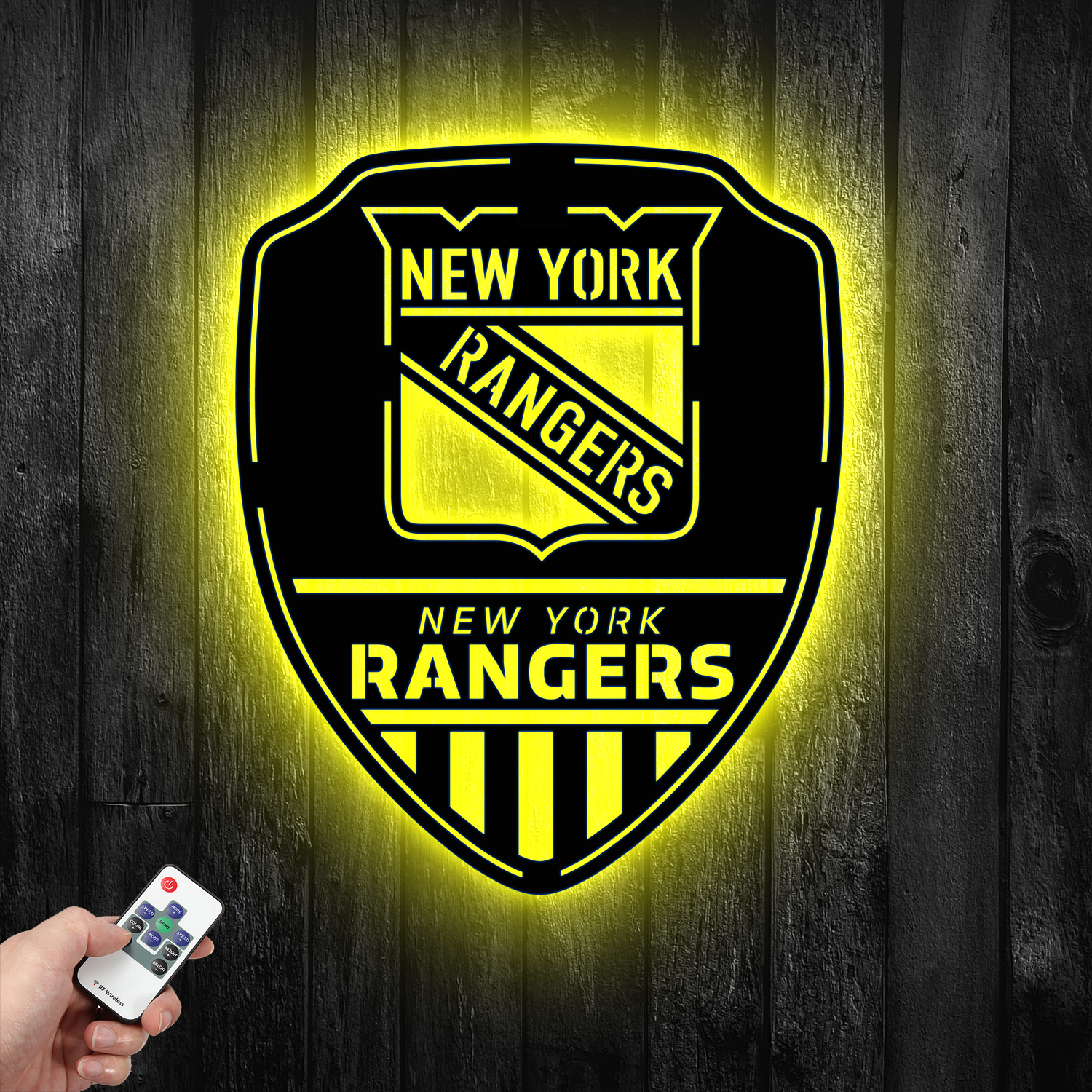 New York Rangers Shield Shape Metal Sign LED Light NHL Fan Wall Art Home Decor