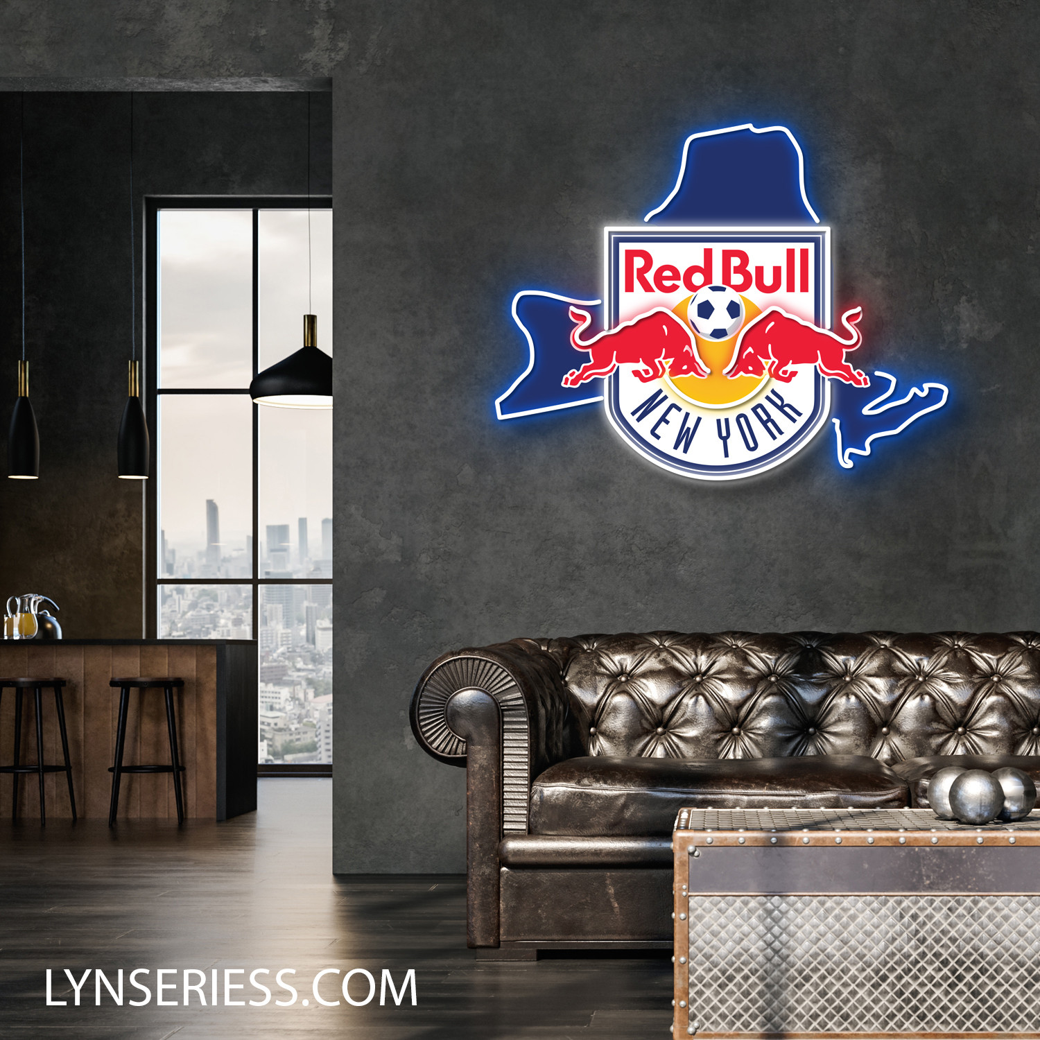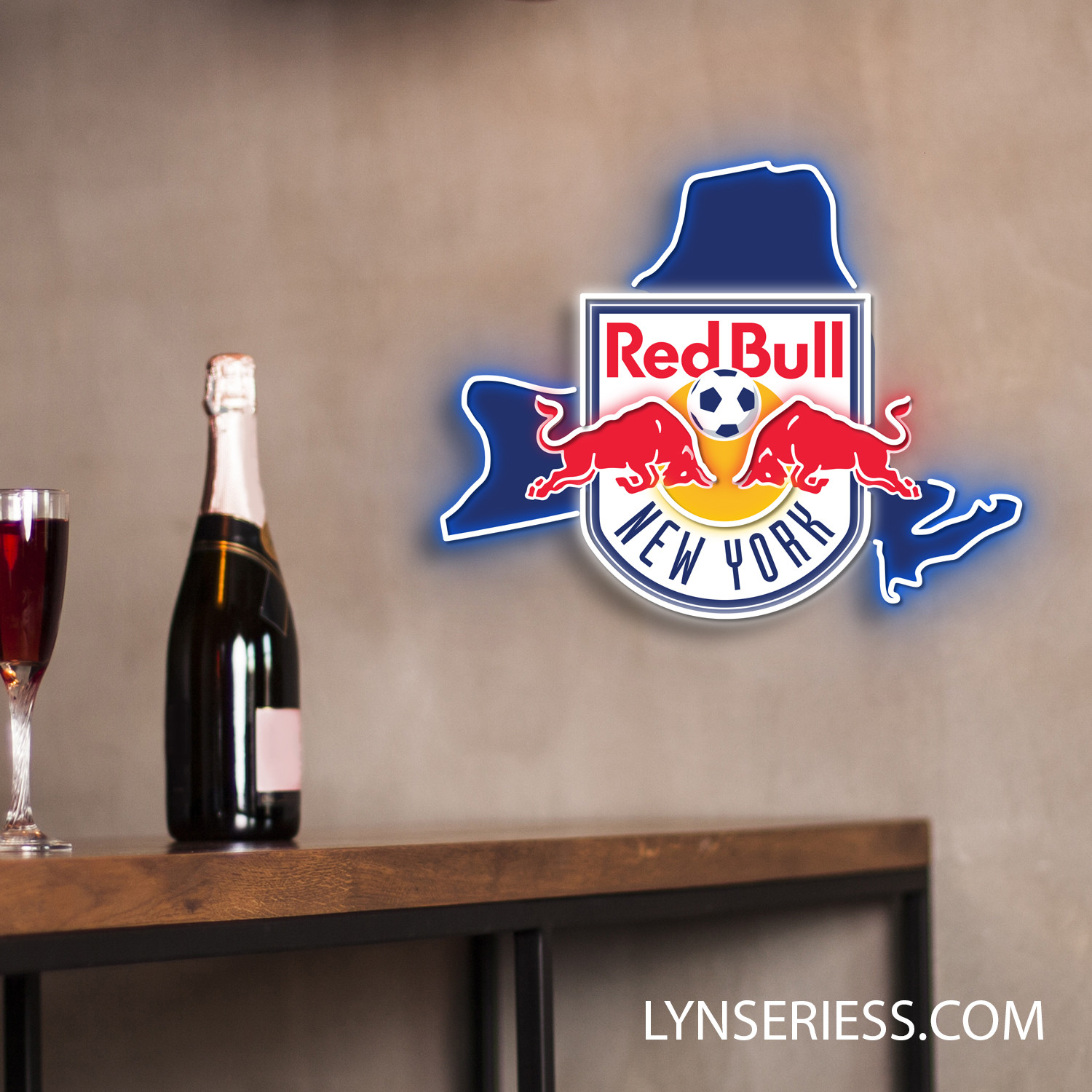 New York Red Bulls FC New York State Map Neon LED Sign MLS Acrylic Artwork Wall Art Home Decor