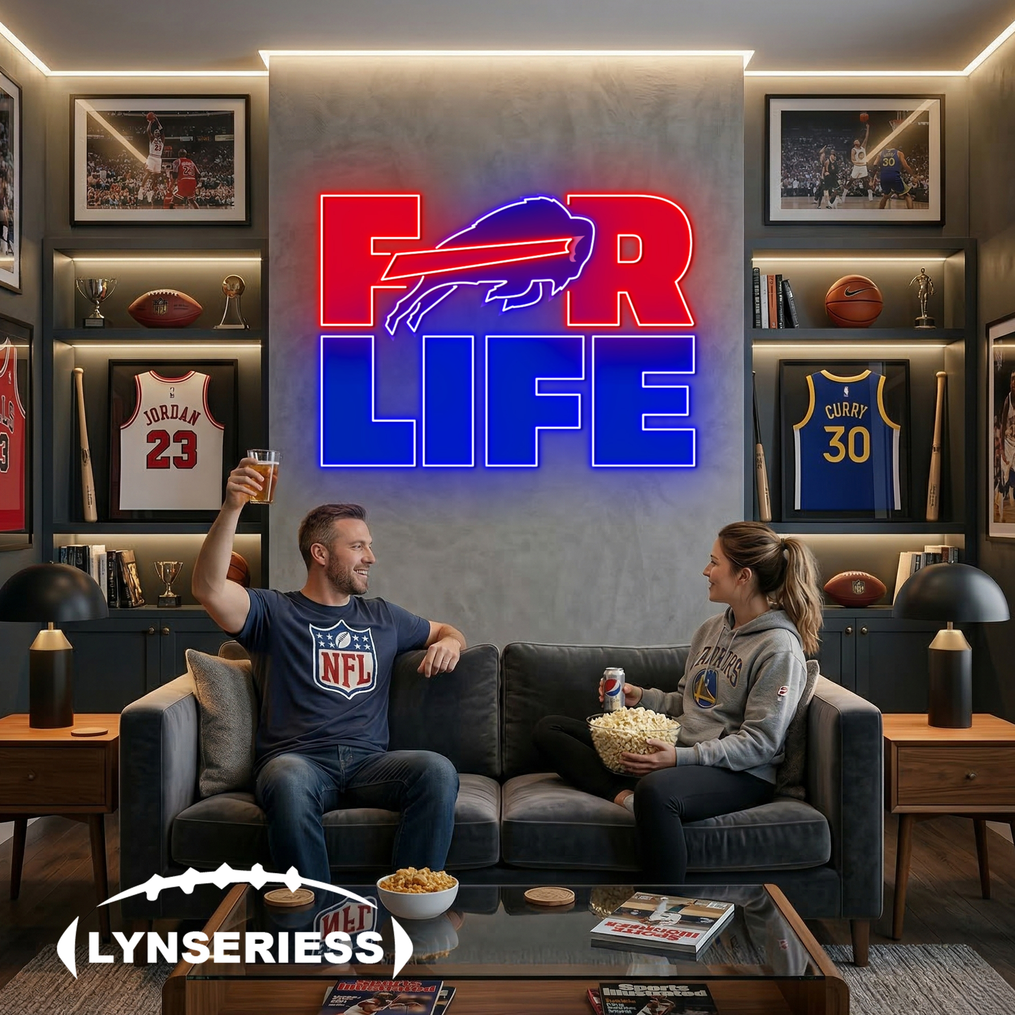 NFL Buffalo Bills For Life Acrylic Neon LED Sign Man Cave Decor Fan Gift Idea