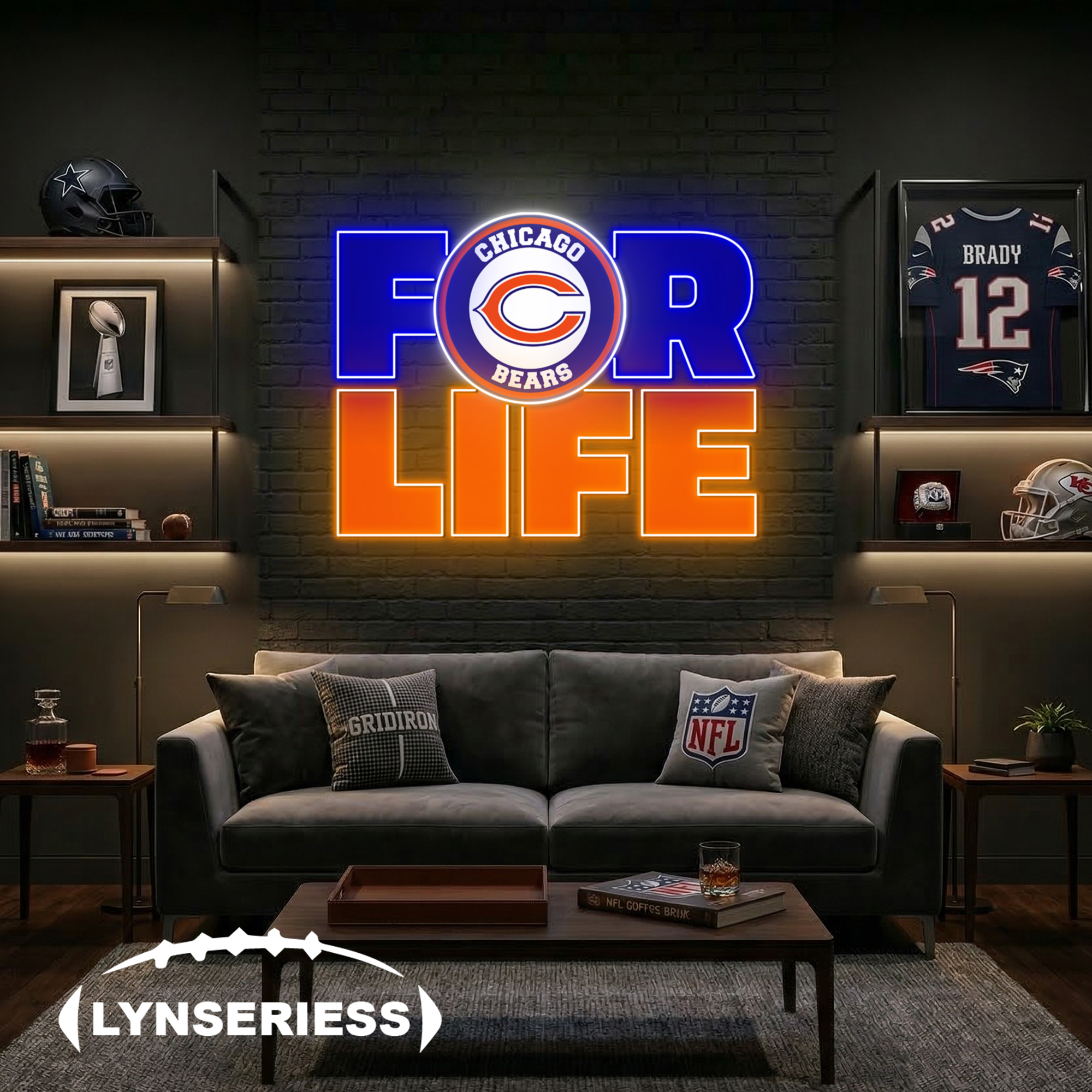 NFL Chicago Bears For Life Acrylic Neon LED Sign Man Cave Decor Fan Gift Idea