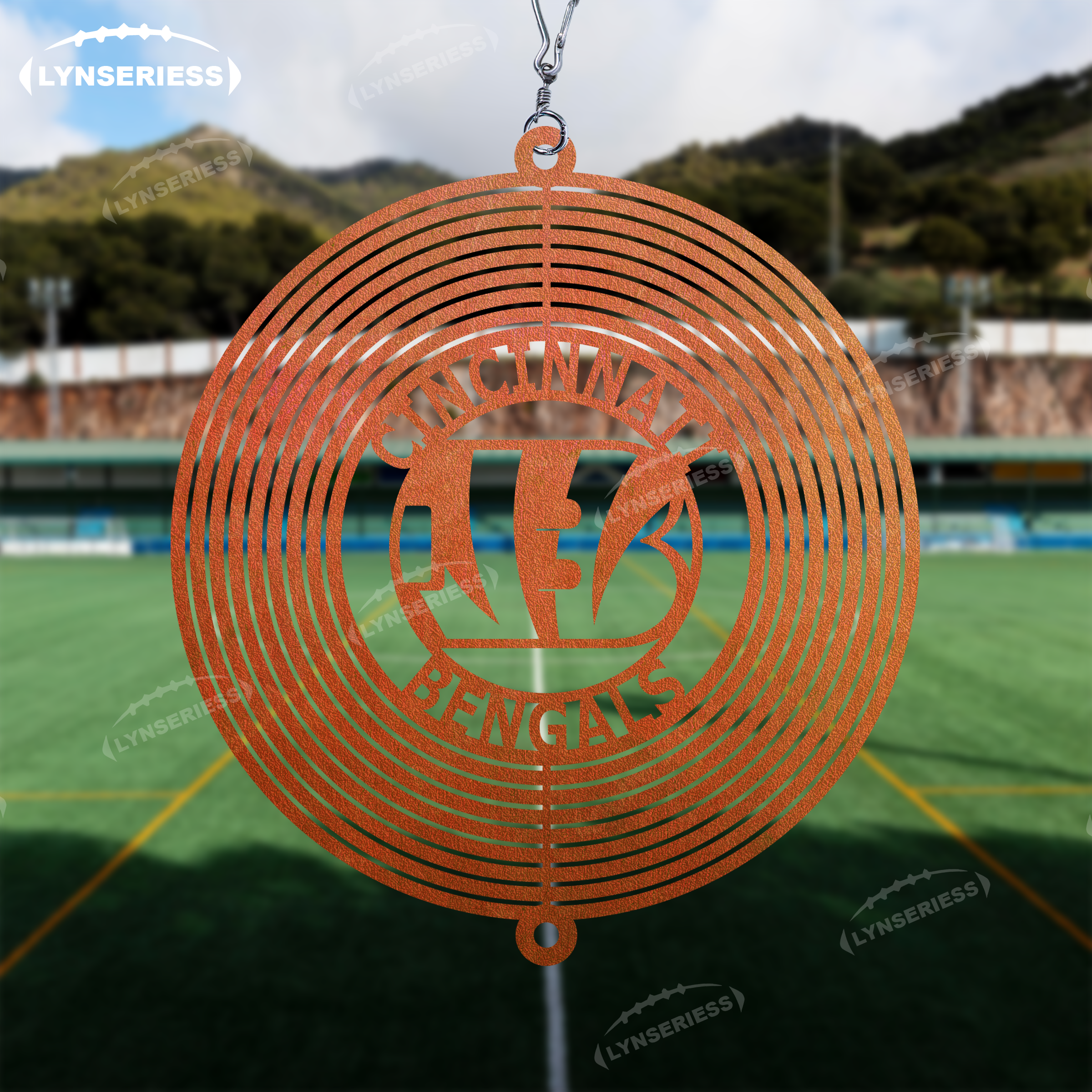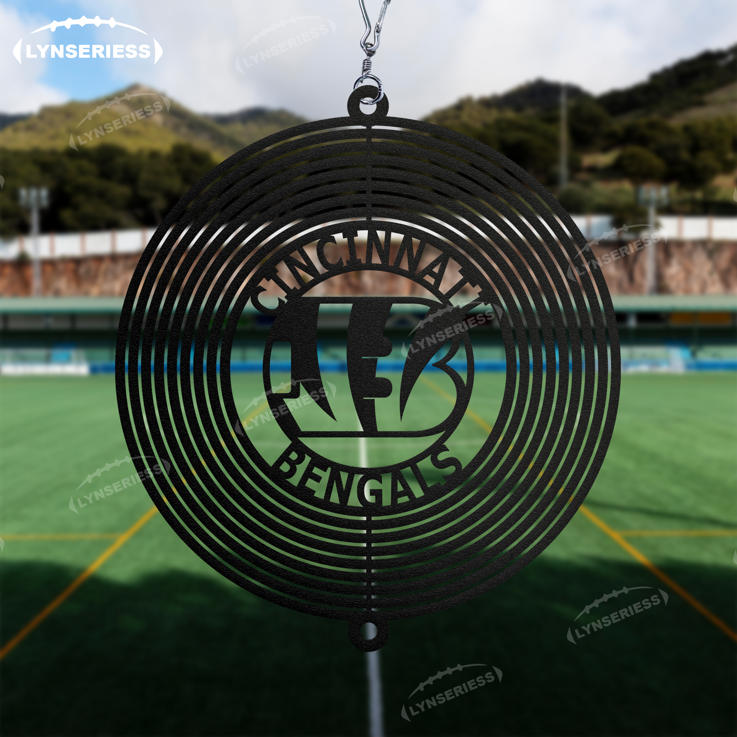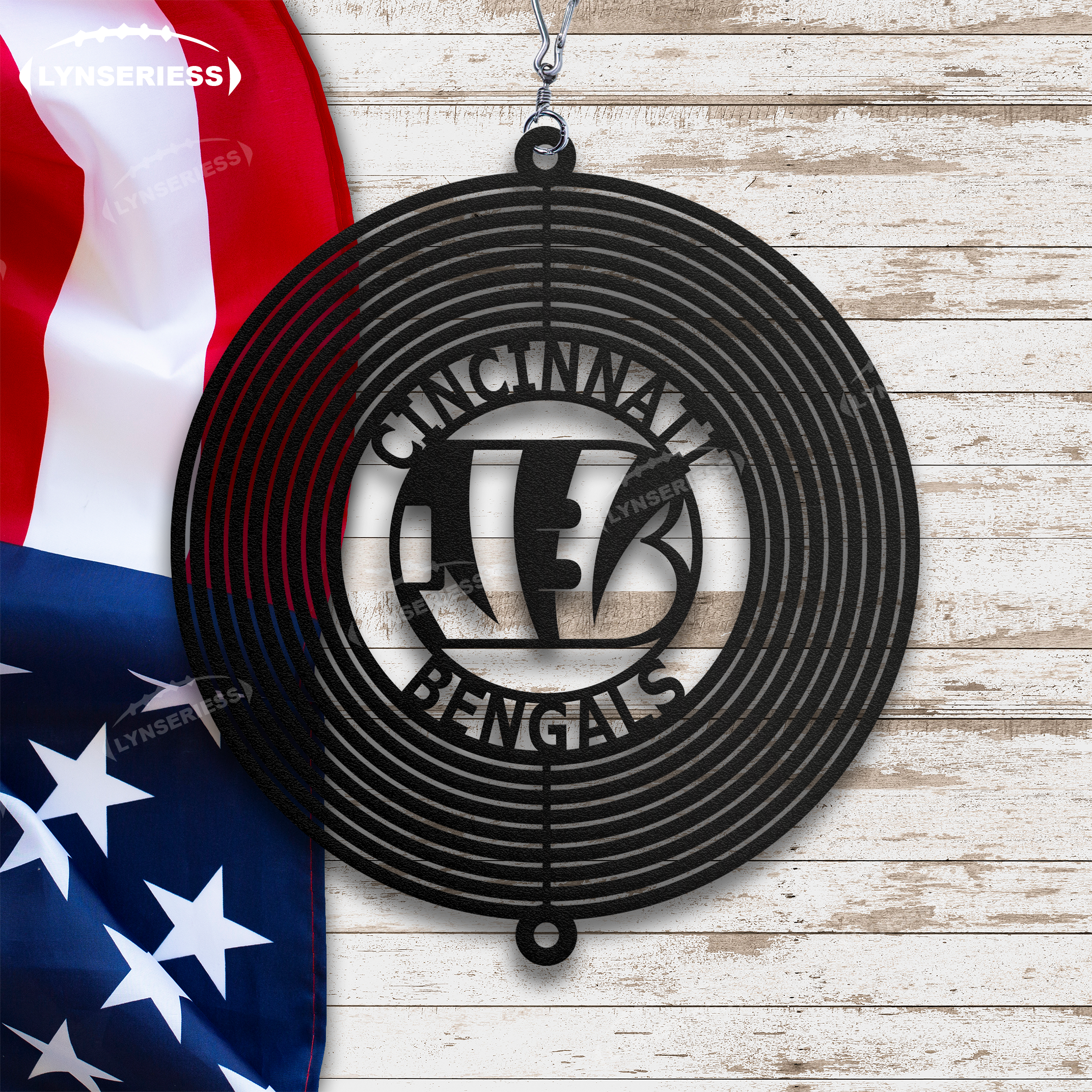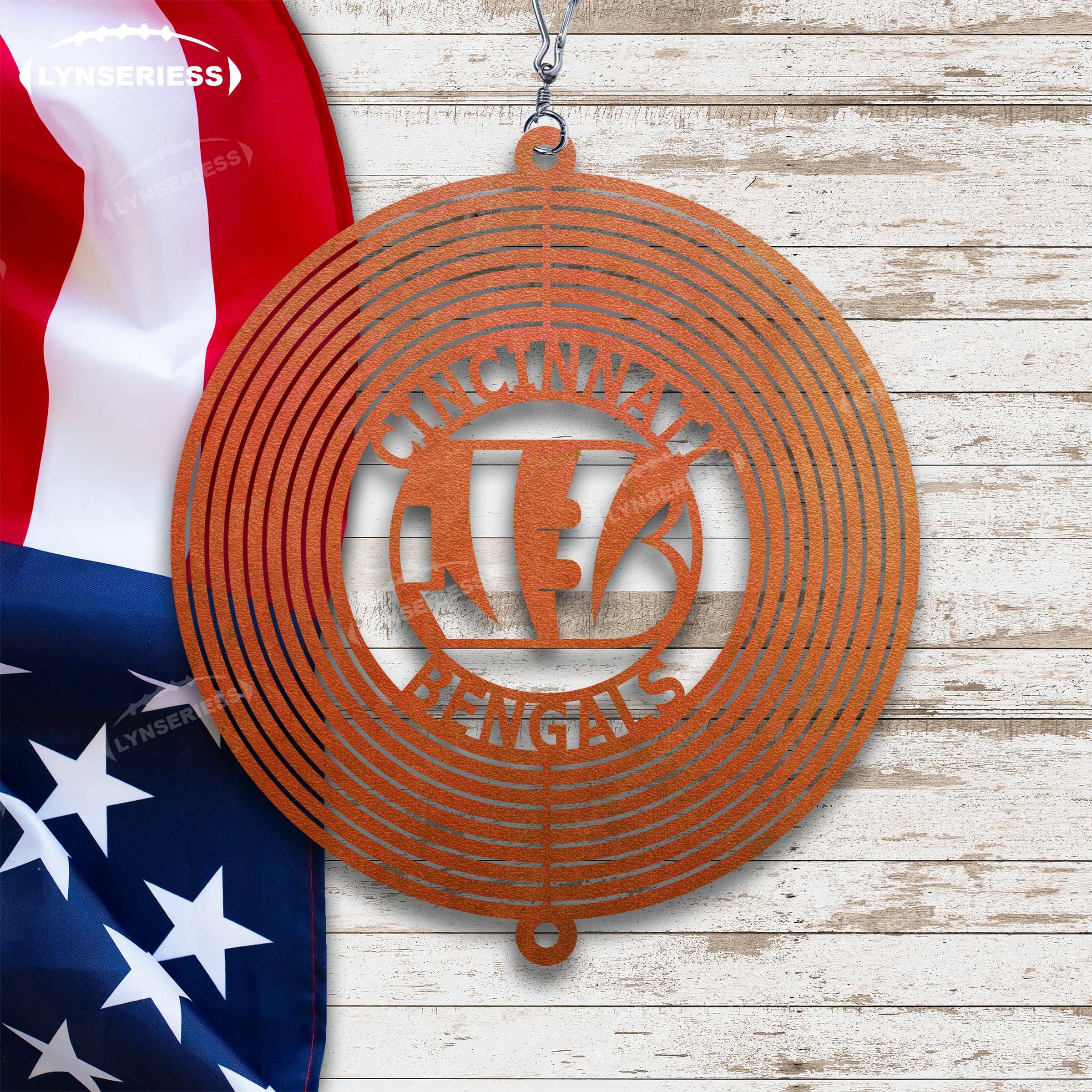 NFL Cincinnati Bengals Artwork Black Or Natural Rust Wind Spinner Outdoor Decor