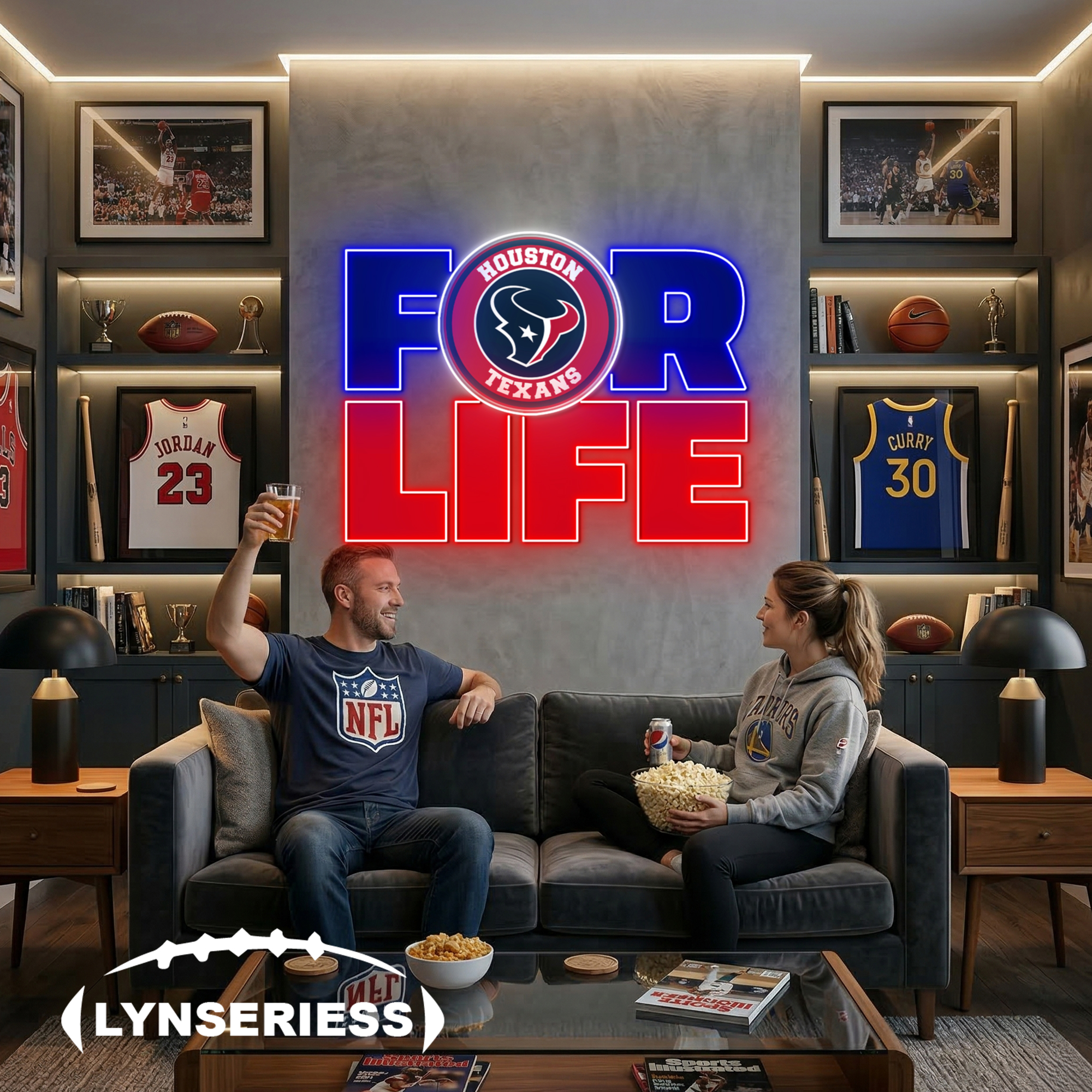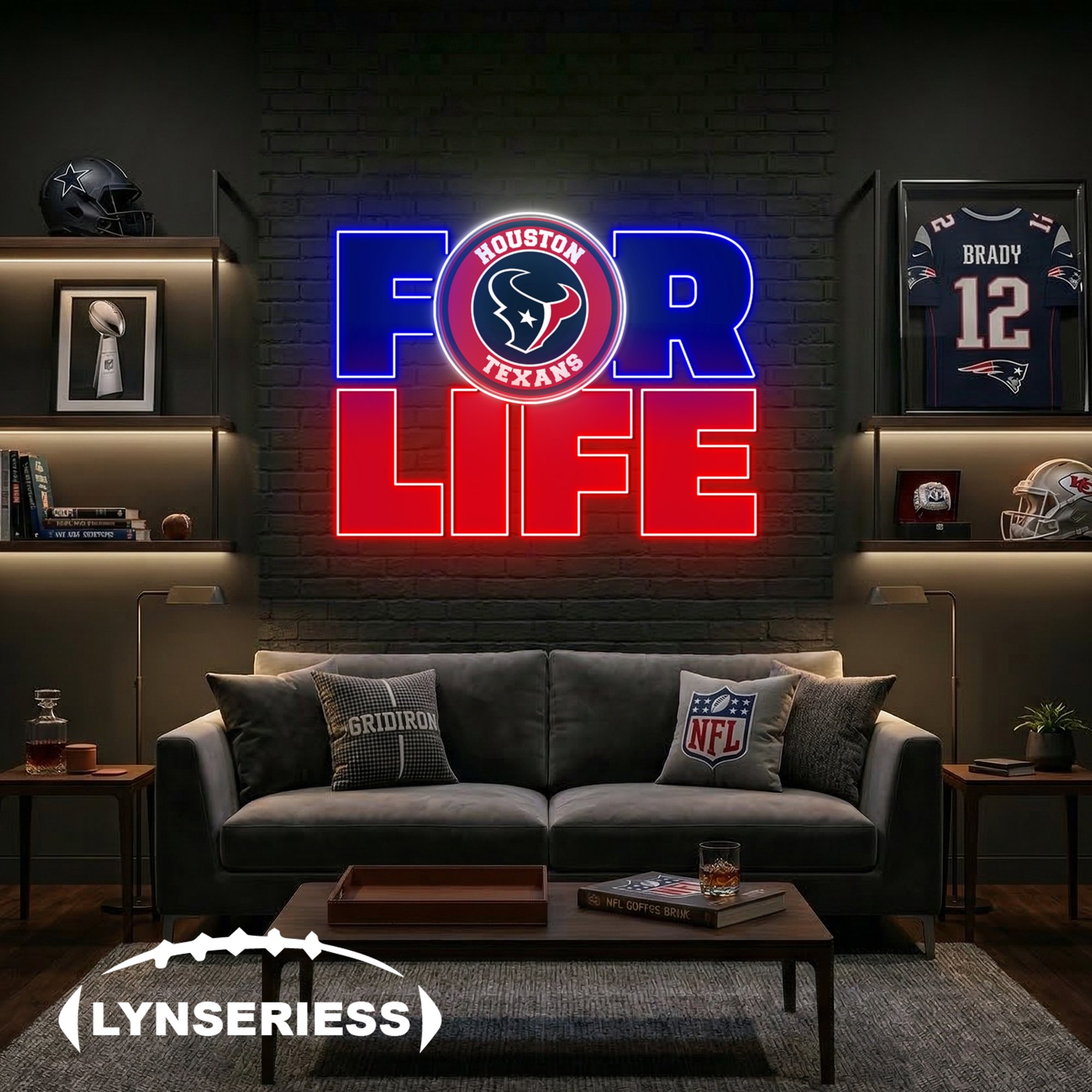 NFL Houston Texans For Life Acrylic Neon LED Sign Man Cave Decor Fan Gift Idea