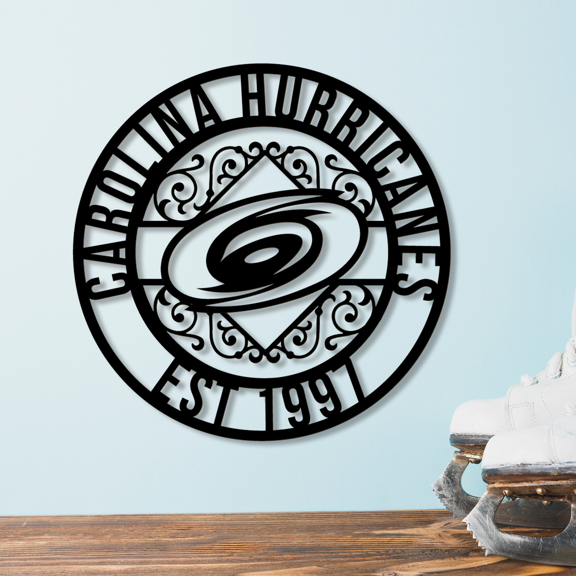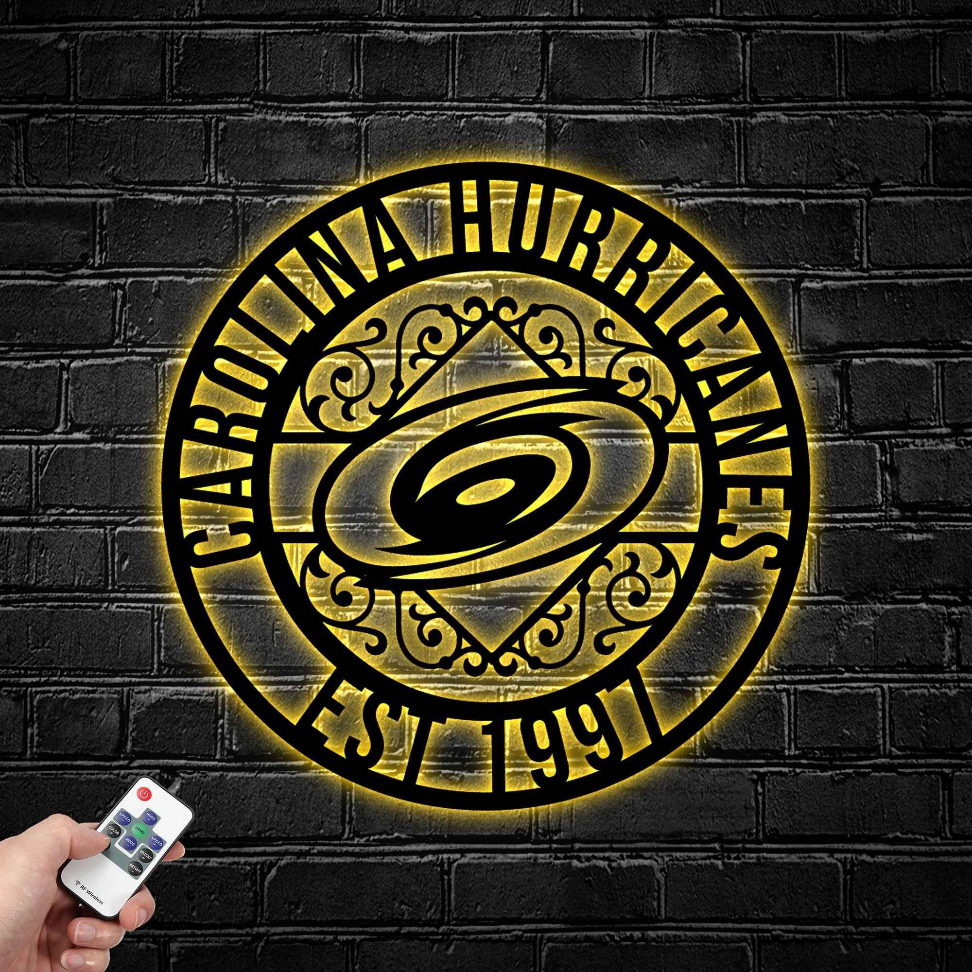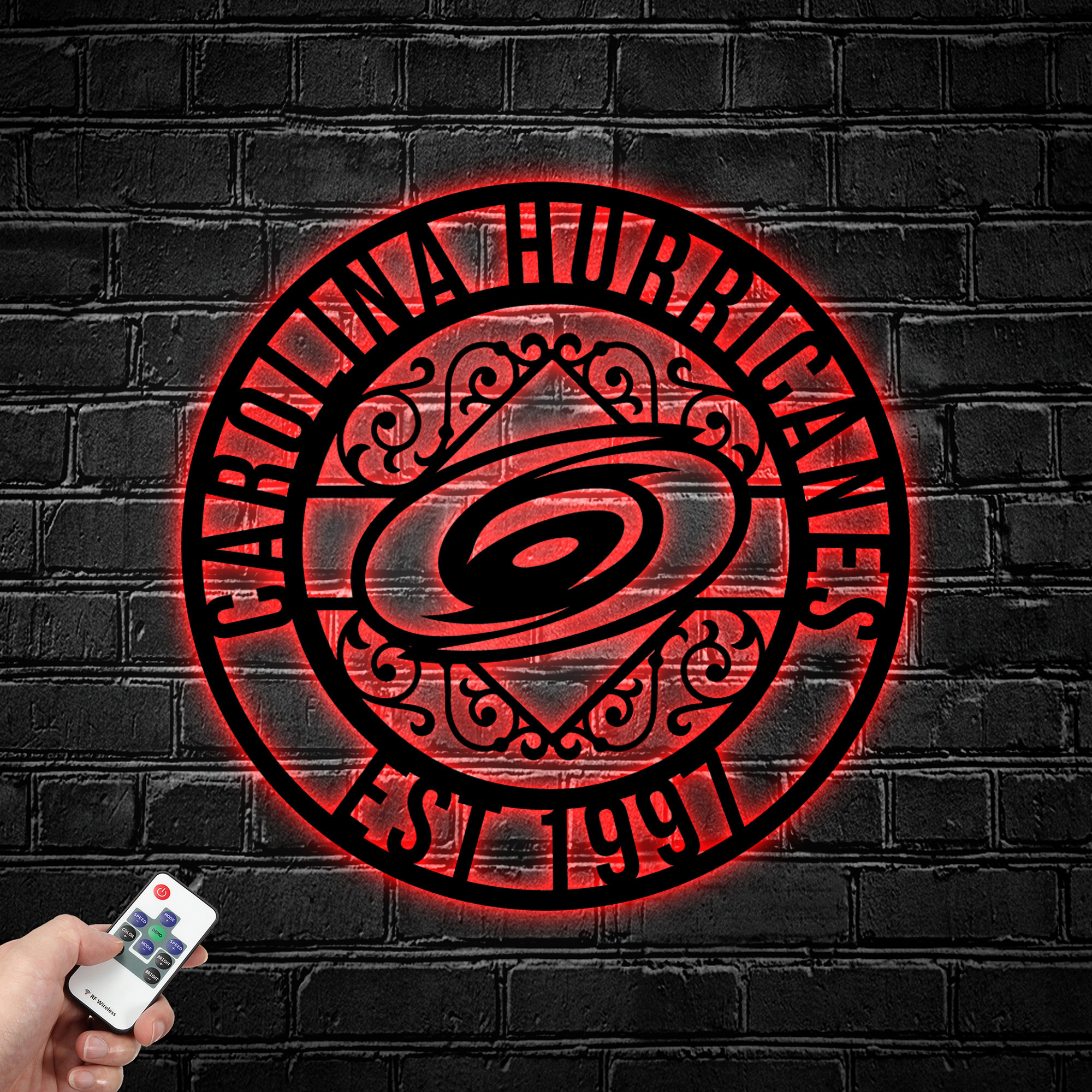 NHL Carolina Hurricanes Metal Sign LED Light Hockey Monogram Wall Art Home Decor