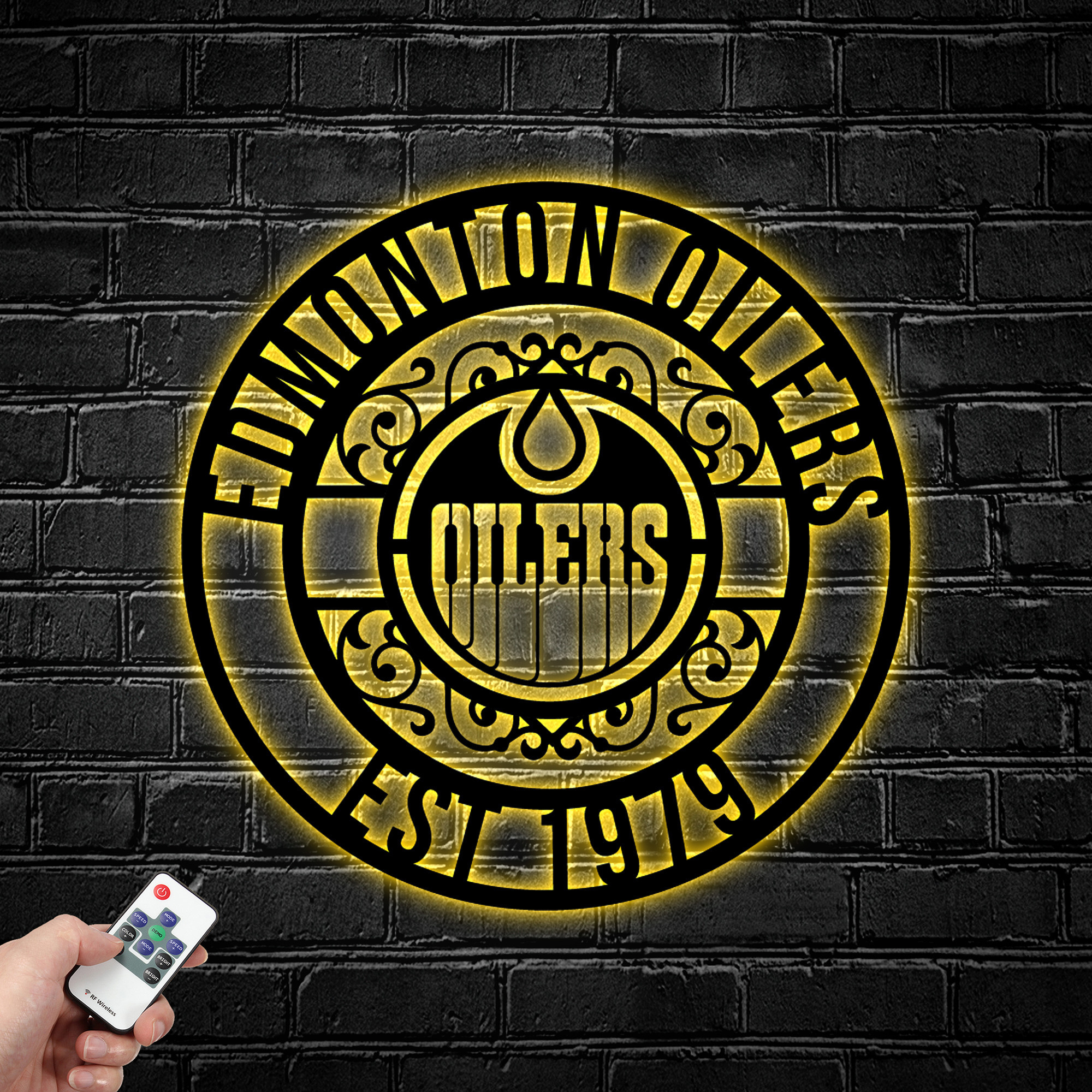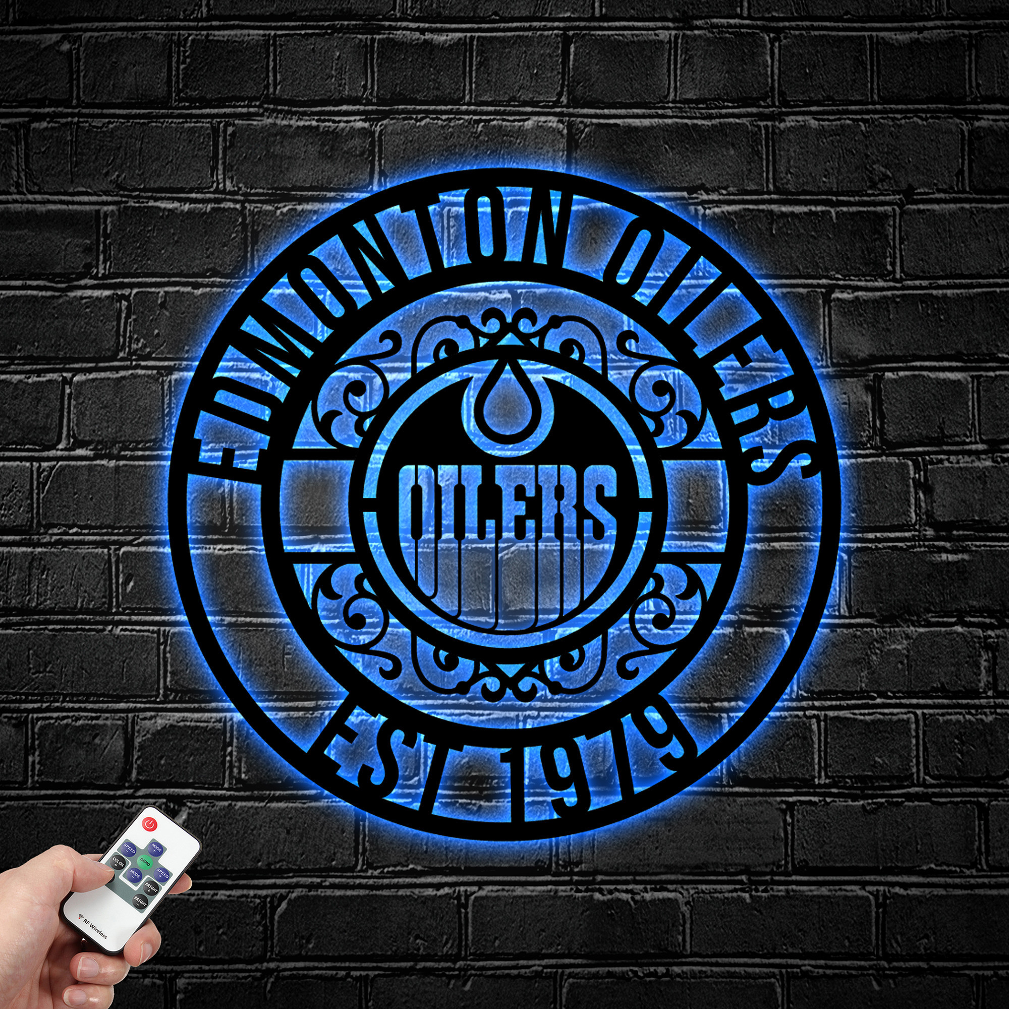 NHL Edmonton Oilers Metal Sign LED Light Hockey Monogram Wall Art Home Decor
