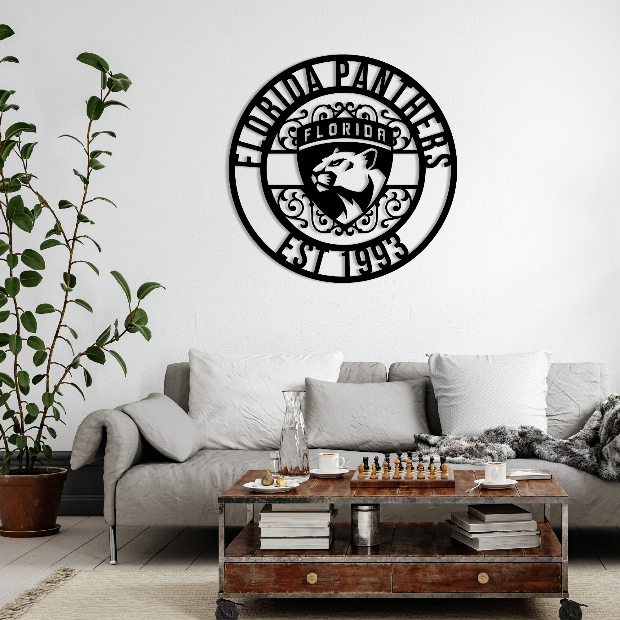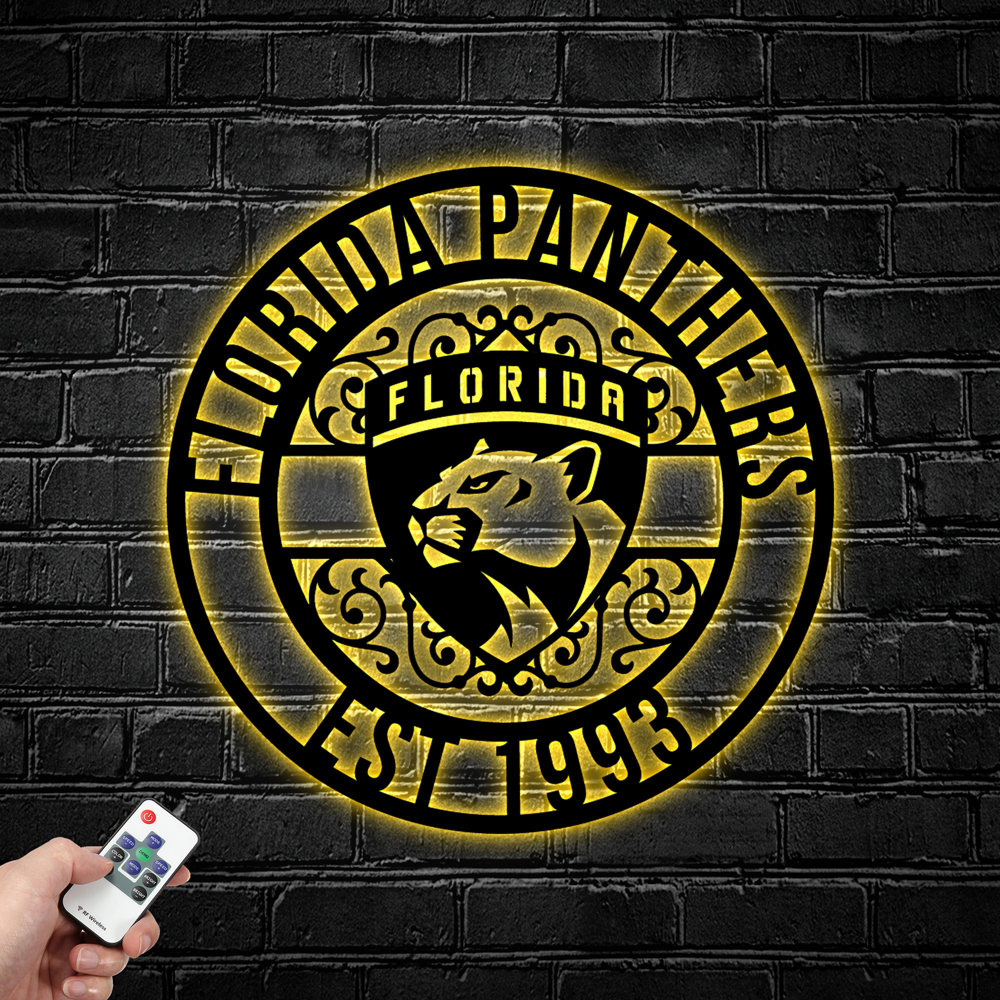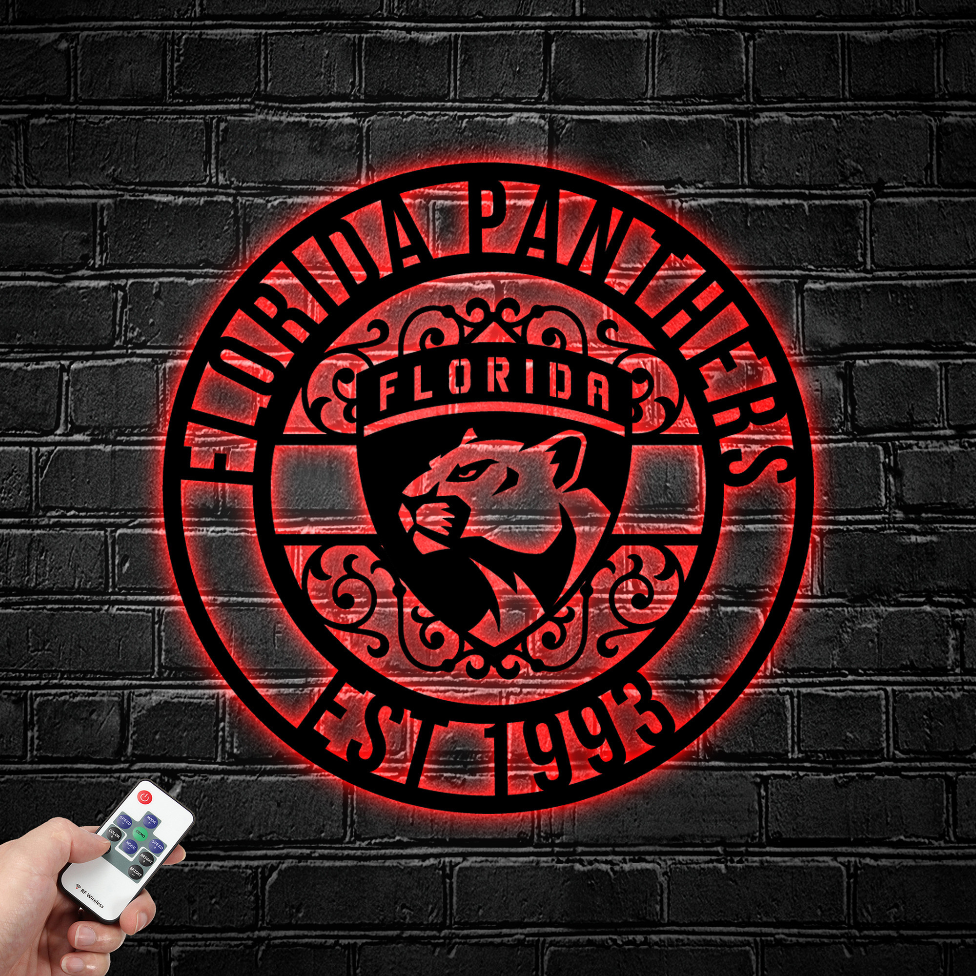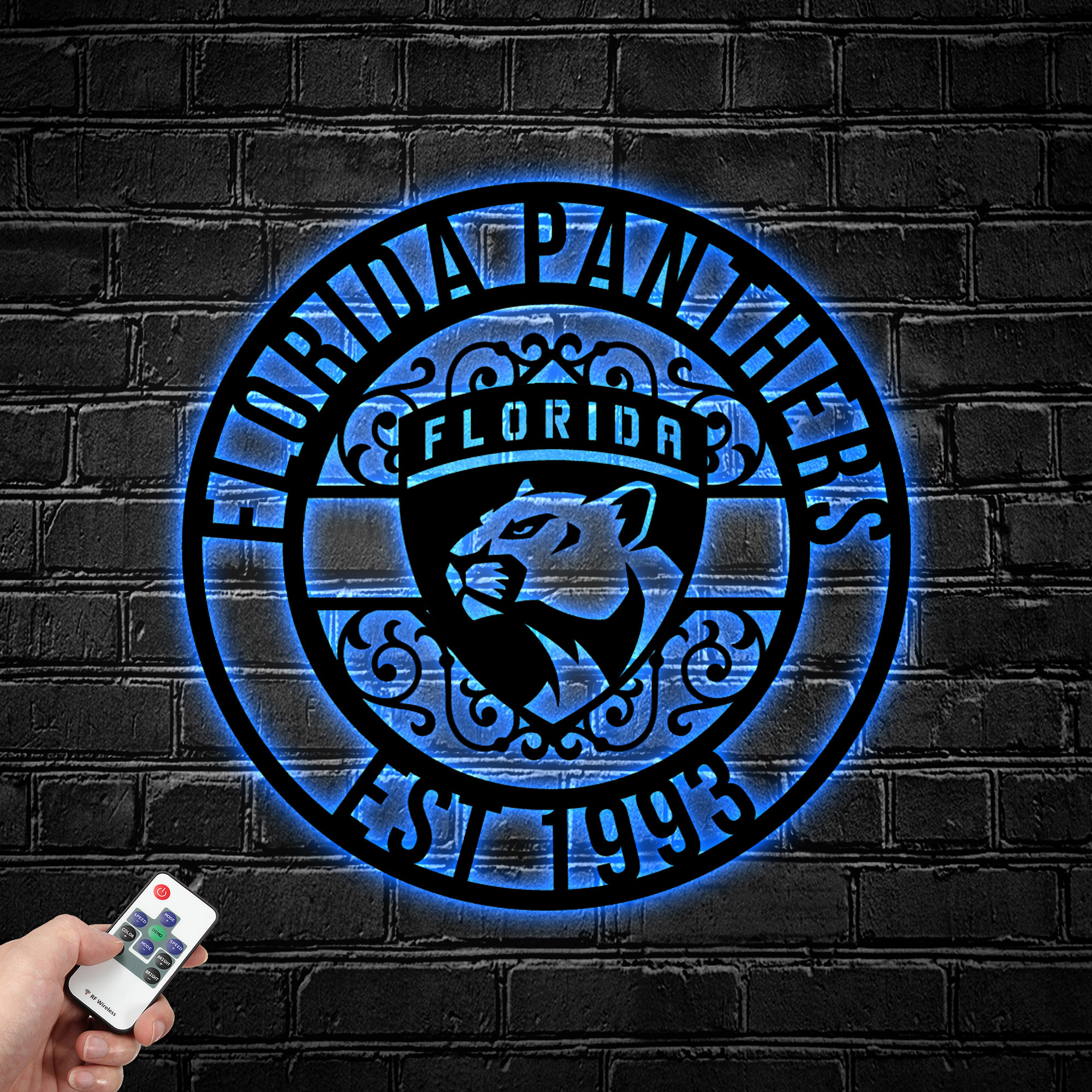 NHL Florida Panthers Metal Sign LED Light Hockey Monogram Wall Art Home Decor