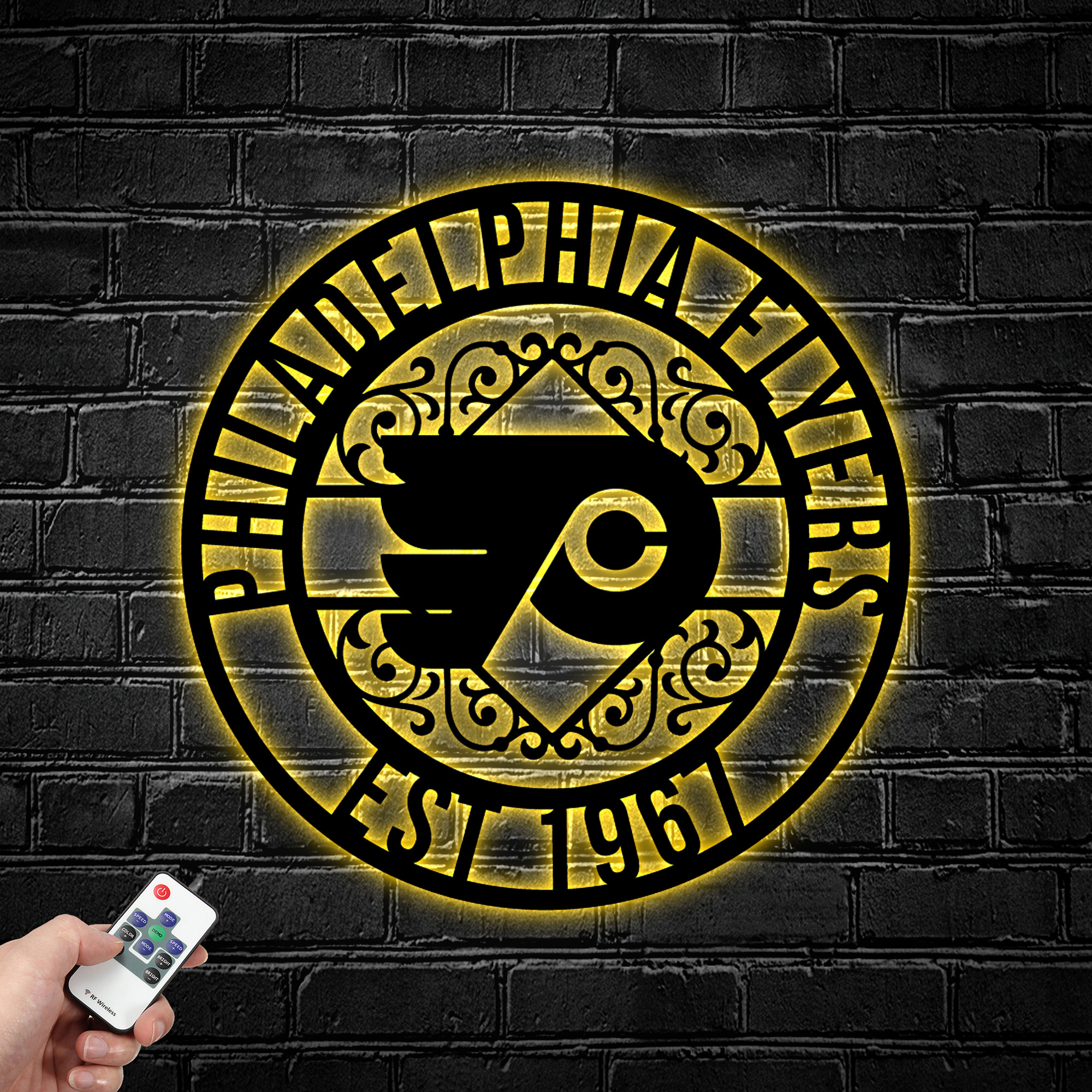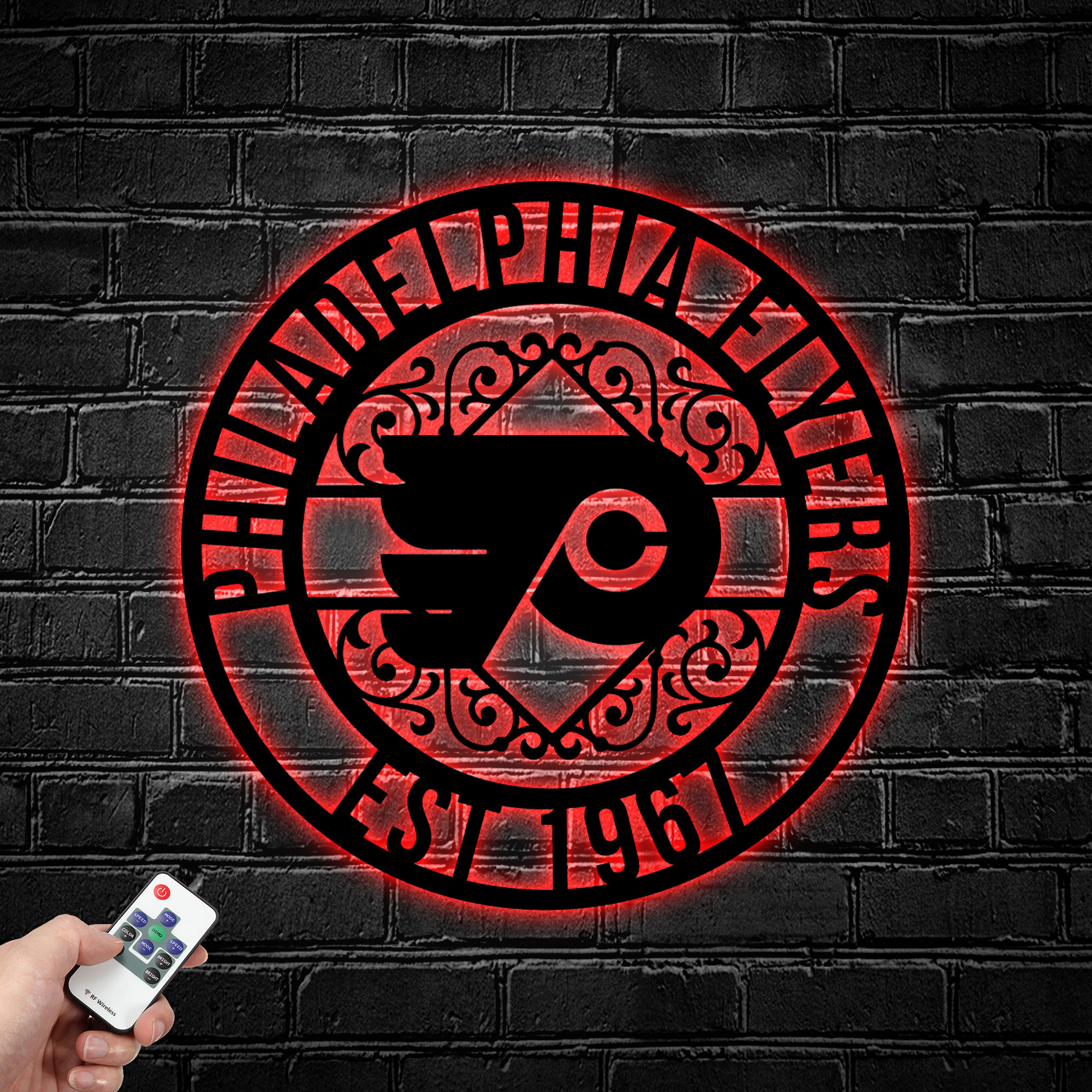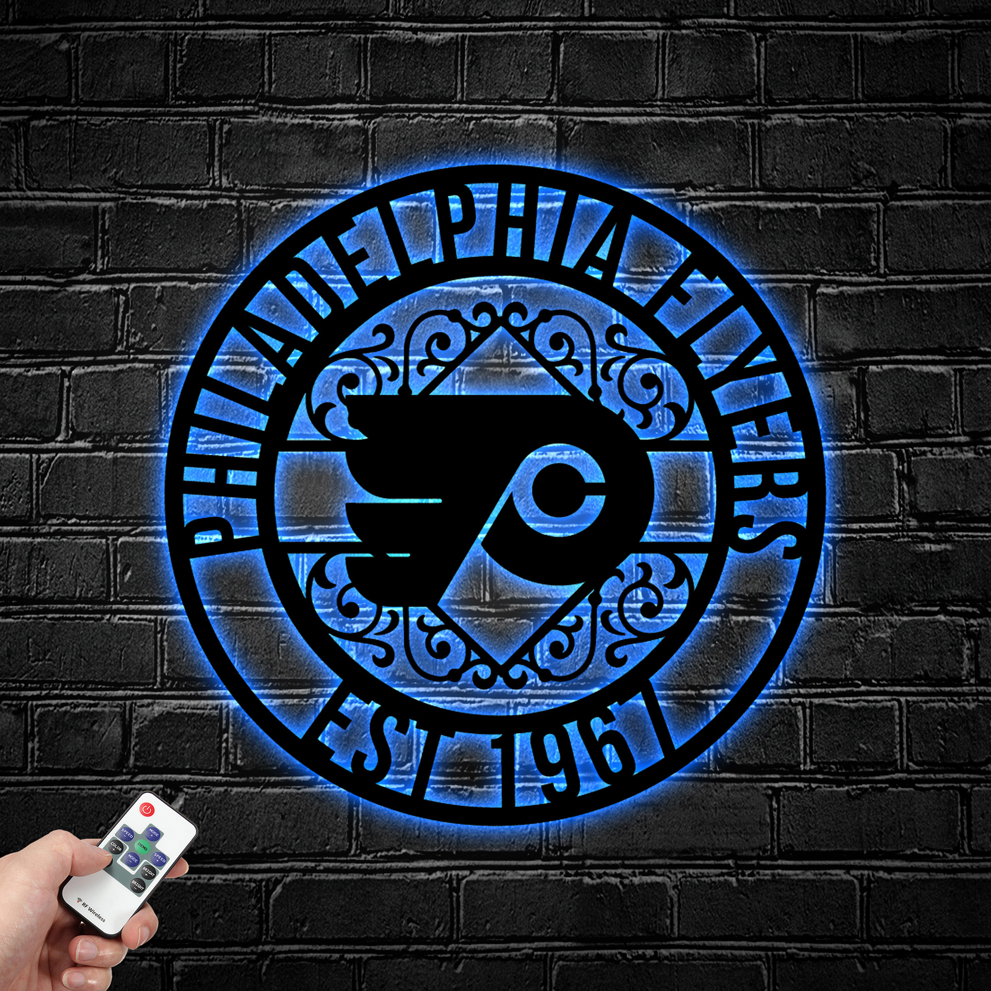 NHL Philadelphia Flyers Metal Sign LED Light Hockey Monogram Wall Art Home Decor