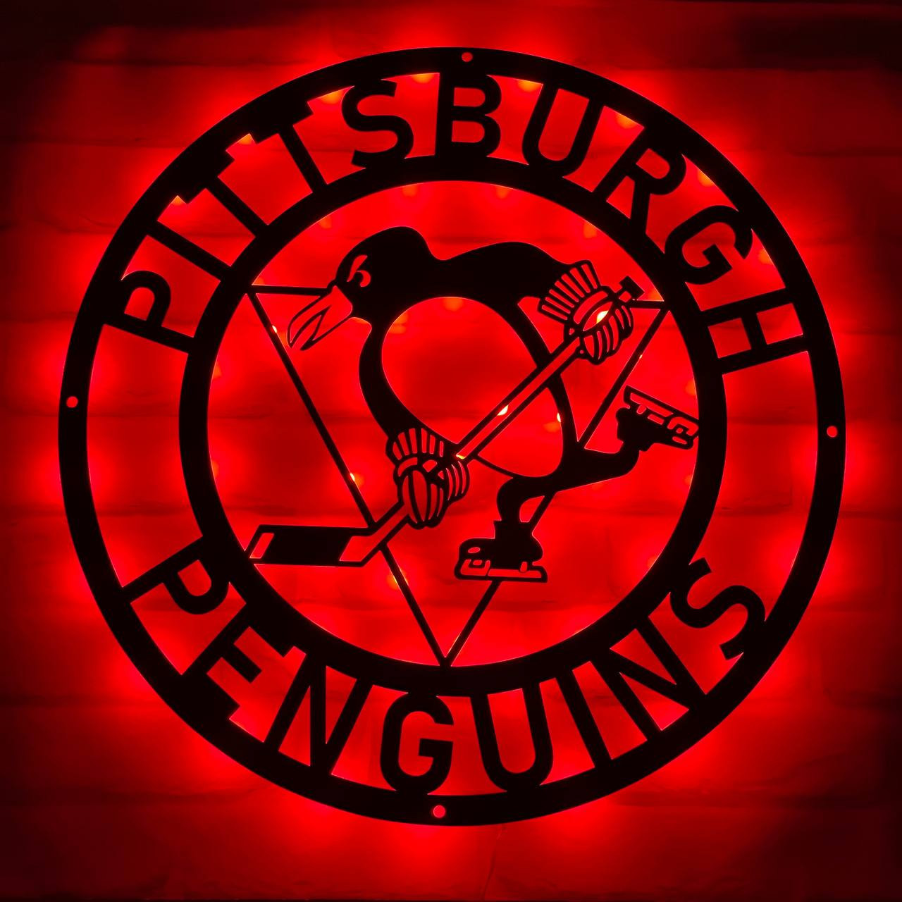 NHL Pittsburgh Penguins Metal Sign LED Light Hockey Wall Art Home Decor