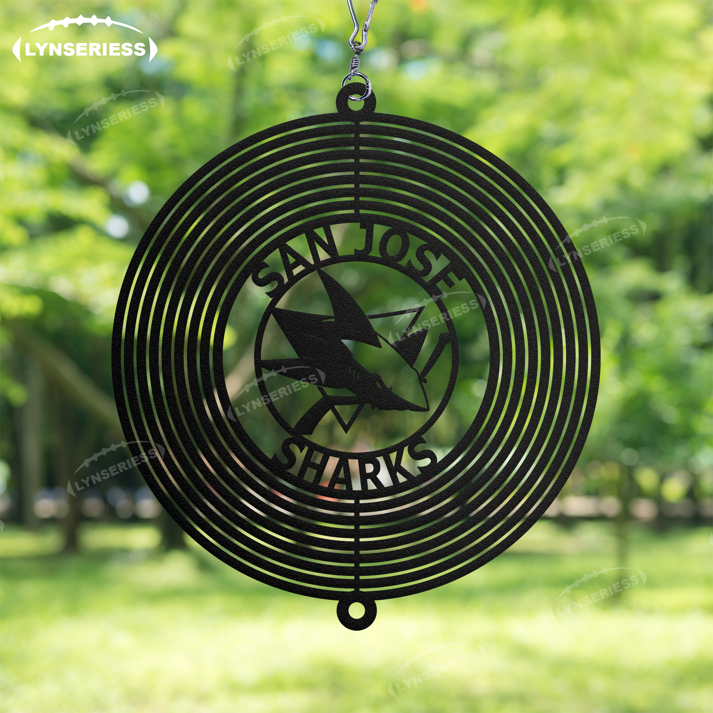 NHL San Jose Sharks Artwork Black Or Natural Rust Wind Spinner Outdoor Decor